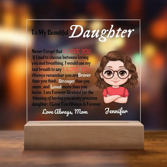 To My Daughter Acrylic Night Light, Birthday or Christmas Gift From Mom or Dad, Never Forget I Love You