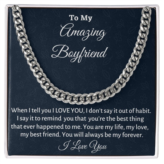 To My Amazing Boyfriend Cuban Link Necklace, Birthday Gift, Christmas Gift, From Loving Girlfriend