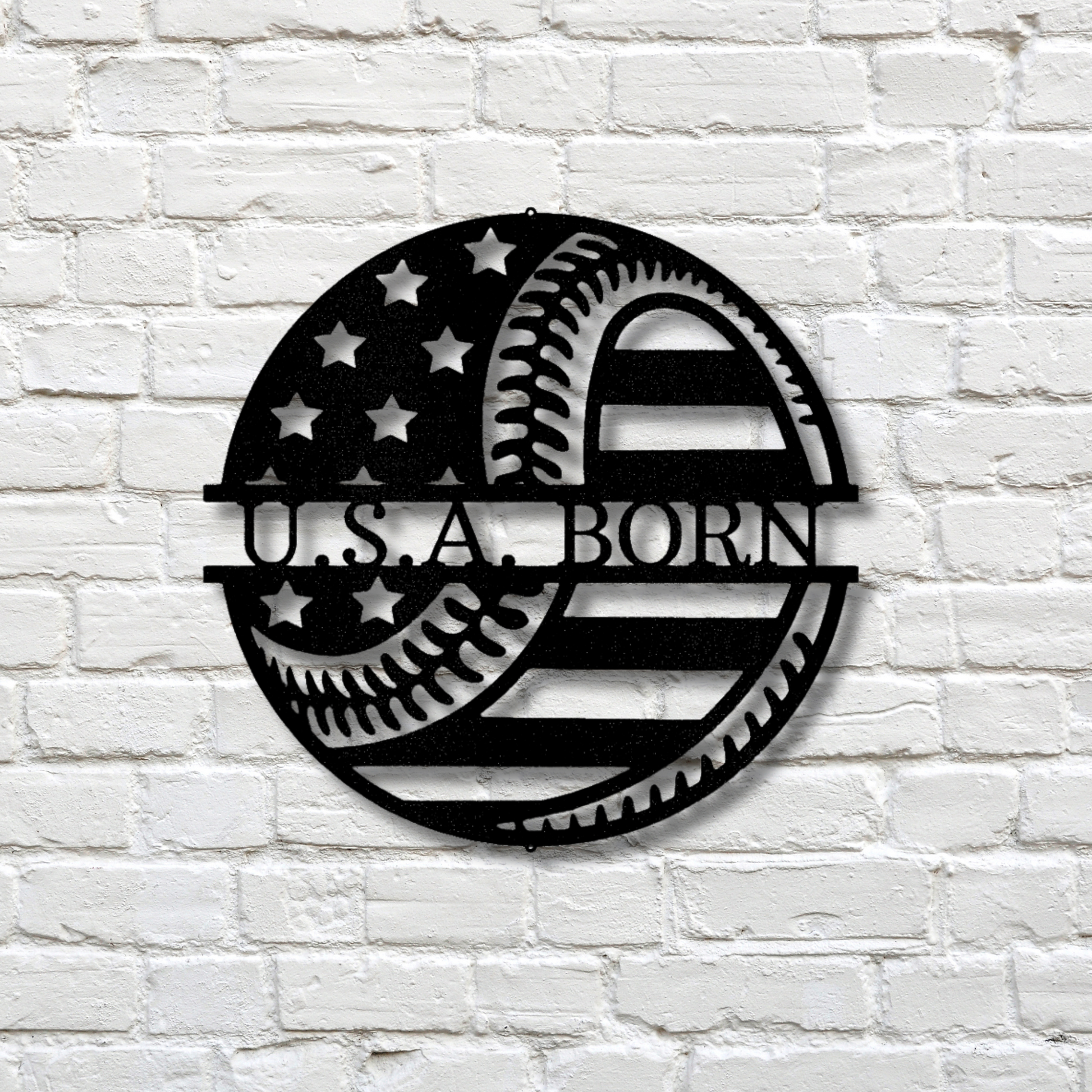 American Flag Baseball Metal Sign, Personalized Baseball Wall Sign, Custom Name Baseball Wall Decor, Husband Gifts