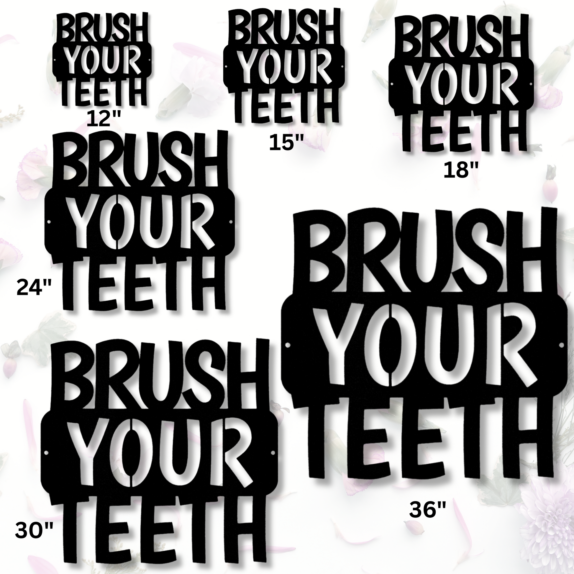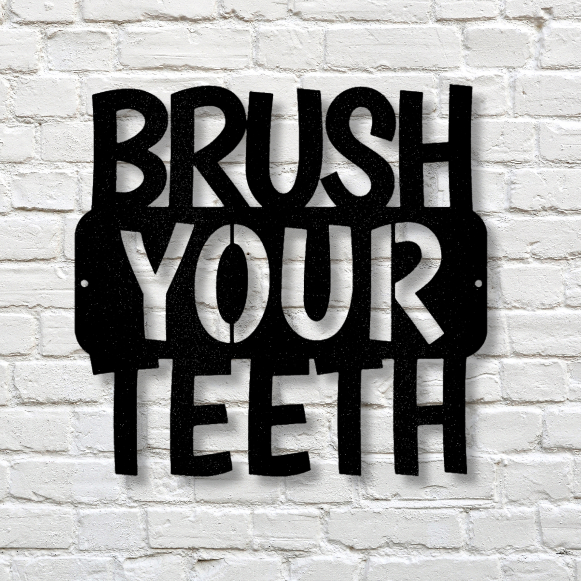 Brush Your Teeth Quote Metal Steel Sign, Bathroom Sign Wall Art Hanging, Dental Hygiene Wall Art Decor, Kids Bathroom Art Sign