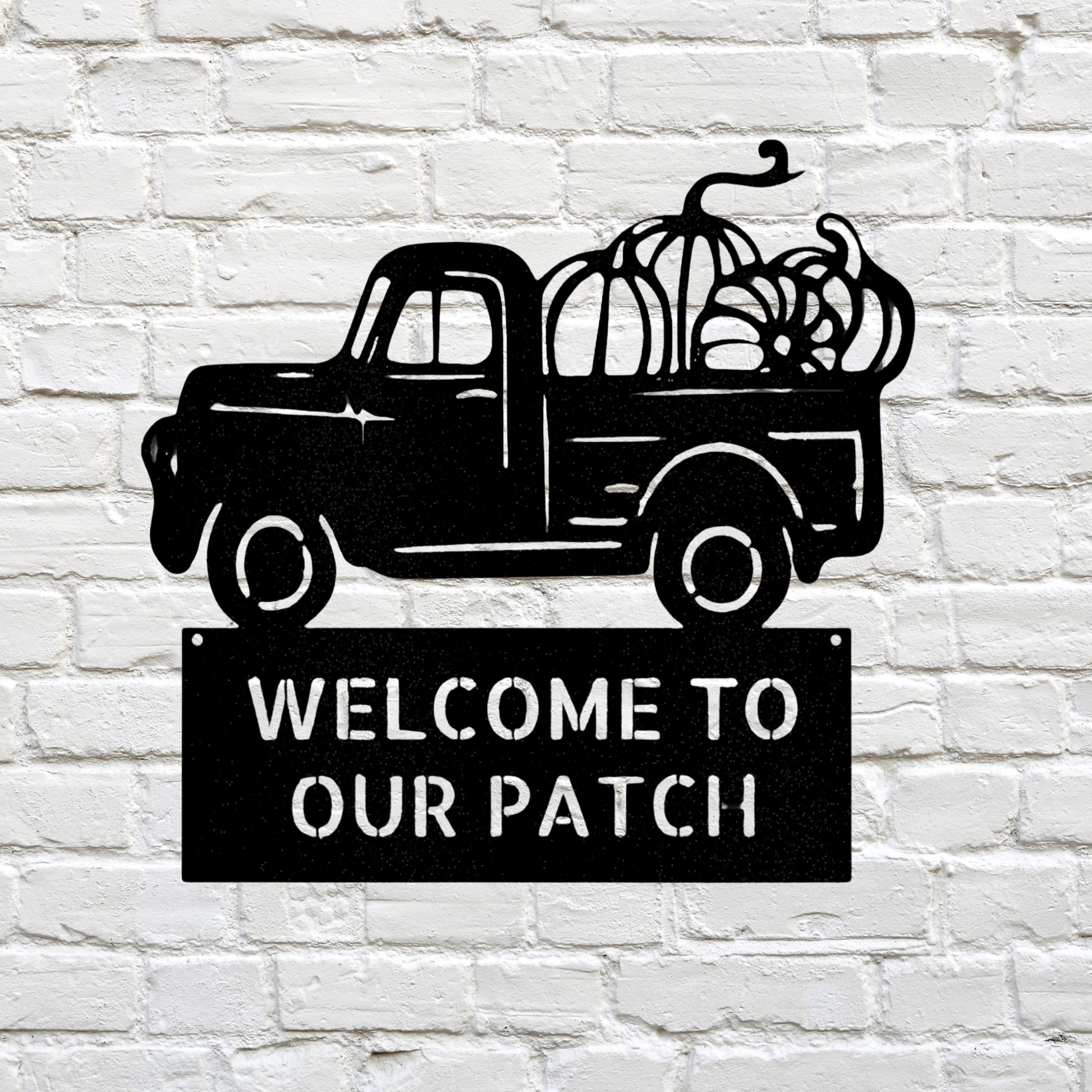 Personalized Pumpkin Truck Metal Sign, Custom Name Gift For Farmer, Indoor Outdoor Hanging, Farm Name or Family Name Metal Sign Address Sign