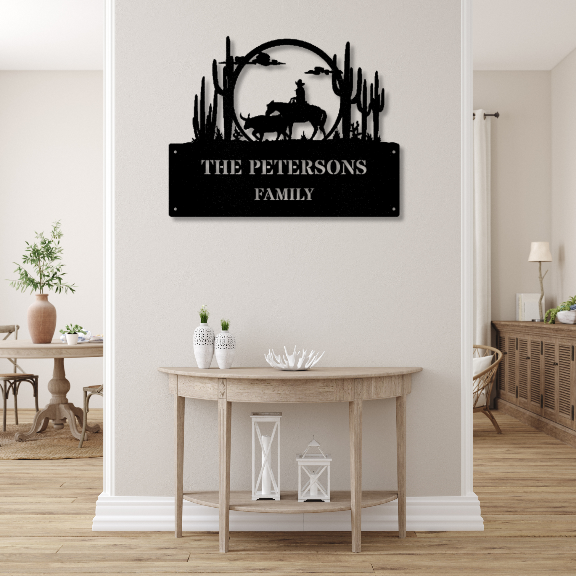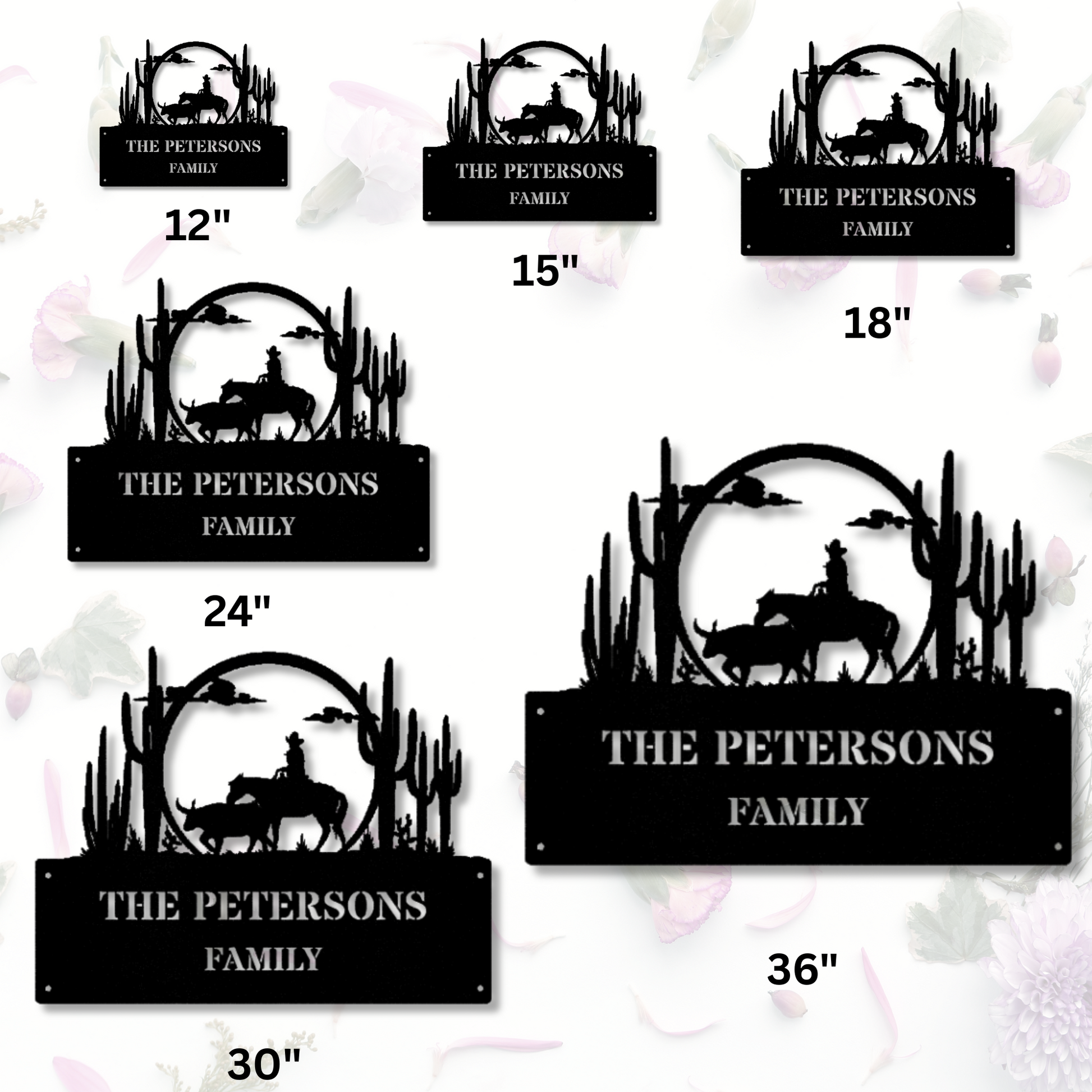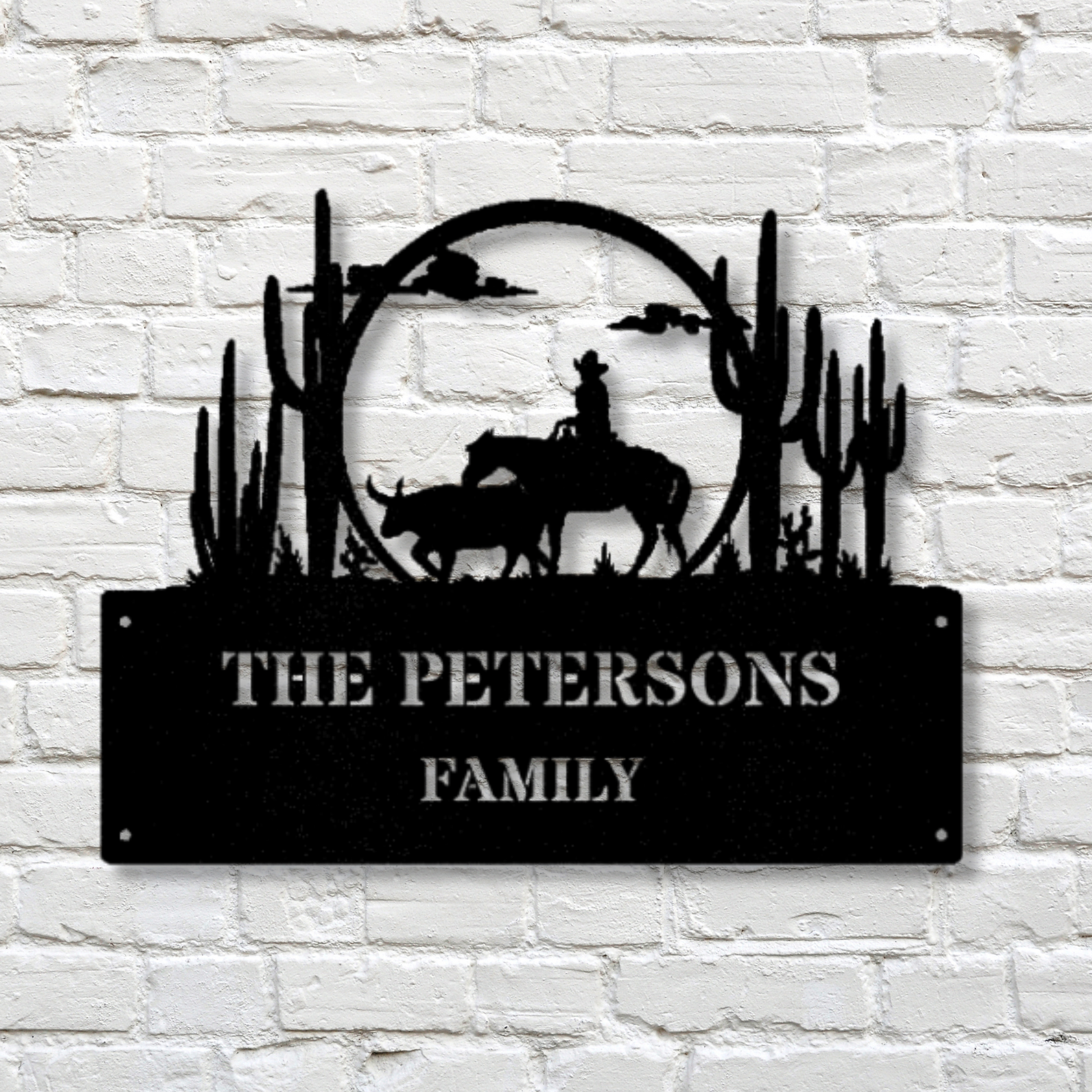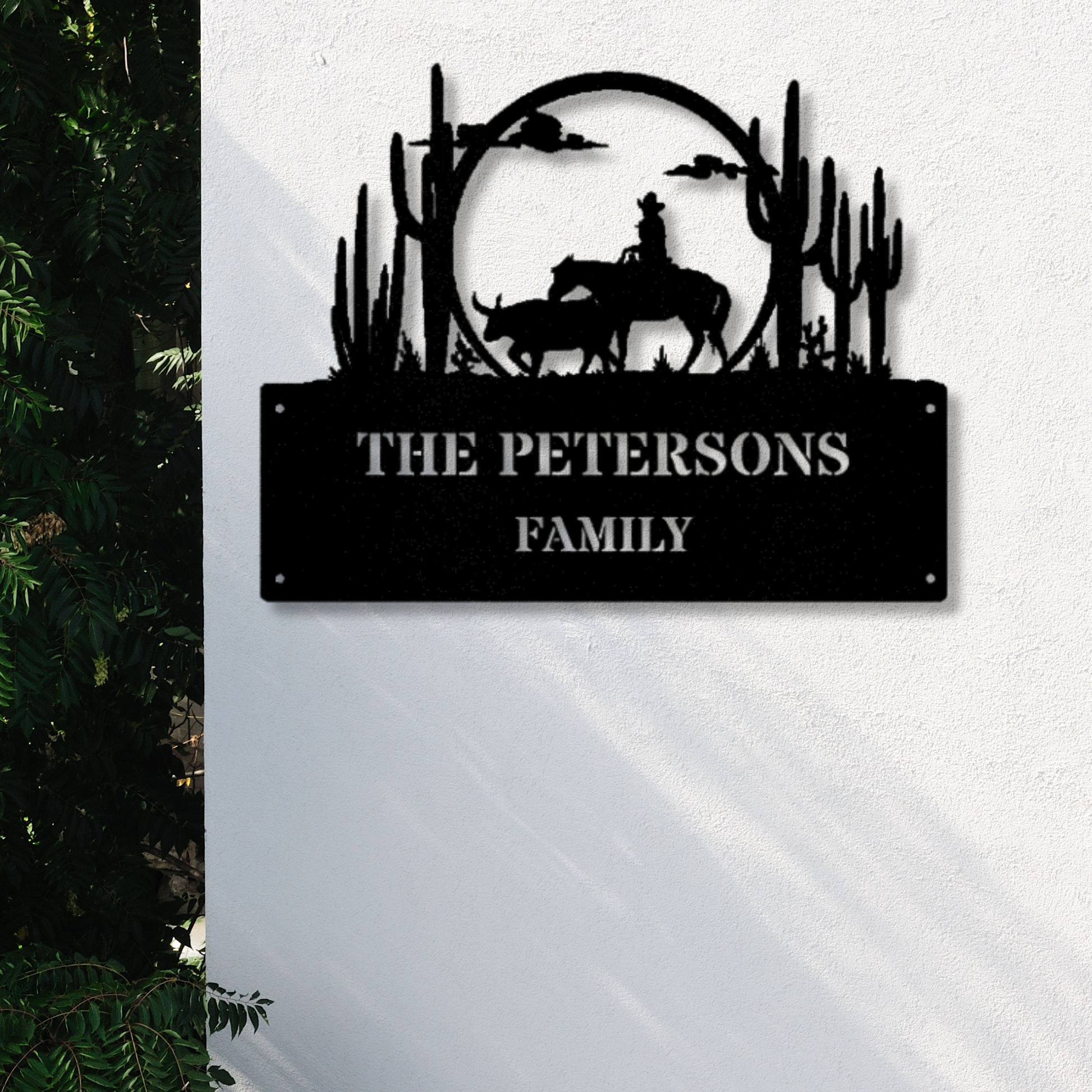 Personalized Cowboy Metal Sign, Custom Name Wall Art, Horse Farm Sign, Ranch Address Metal Sign, Equestrian Wall Art, Wedding Gift, Living Room Decor