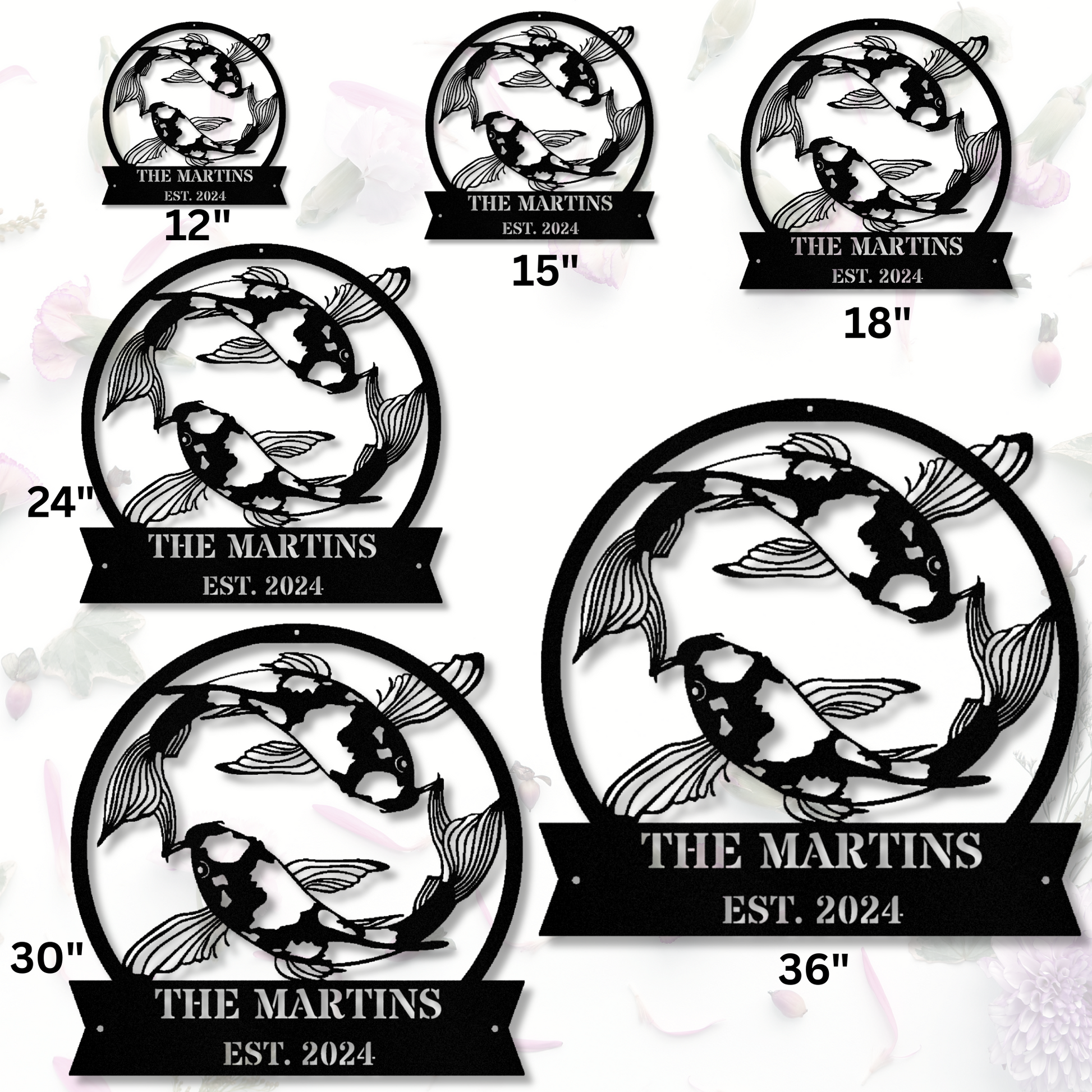 Personalized Koi Fish Metal Sign, Custom Name Metal Sign, Minimalistic Line Art Koi Fish, Last Name Established Metal Sign, Koi Fish Pond Sign
