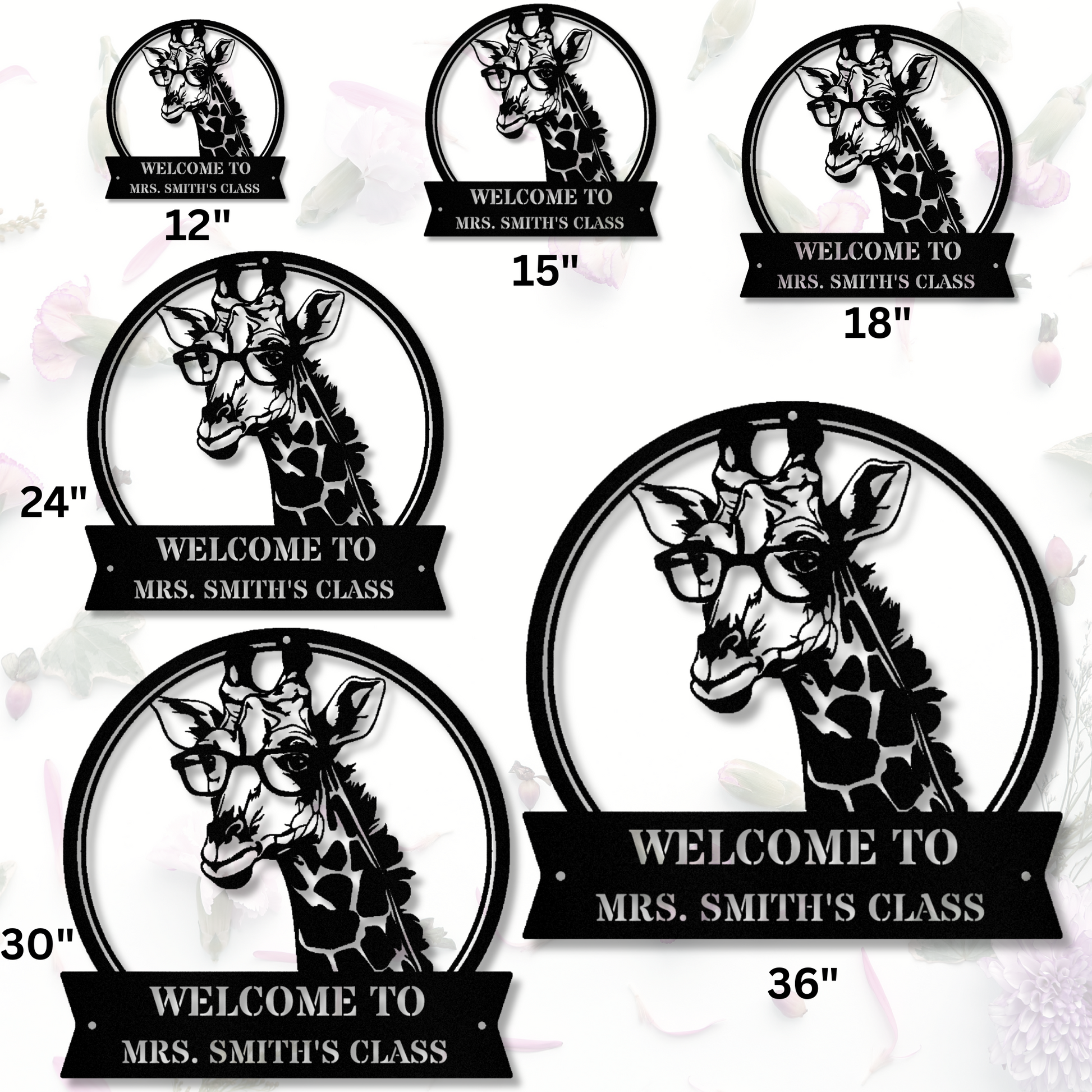 Custom Name Giraffe Metal Sign, Personalized Giraffe Sign, Giraffe Wall Hanging, Living Room Decor, Animal Lover Gift, Custom Metal Sign