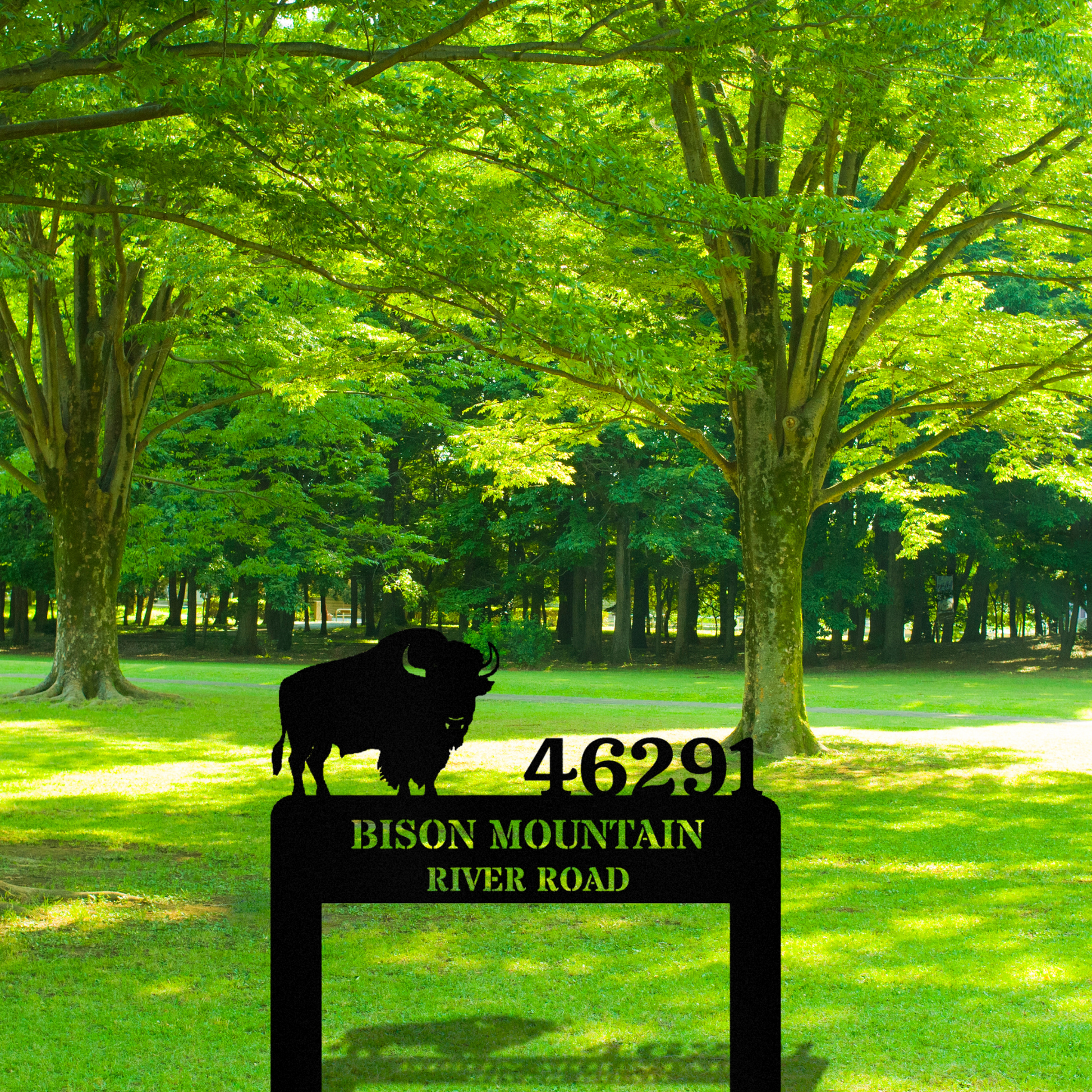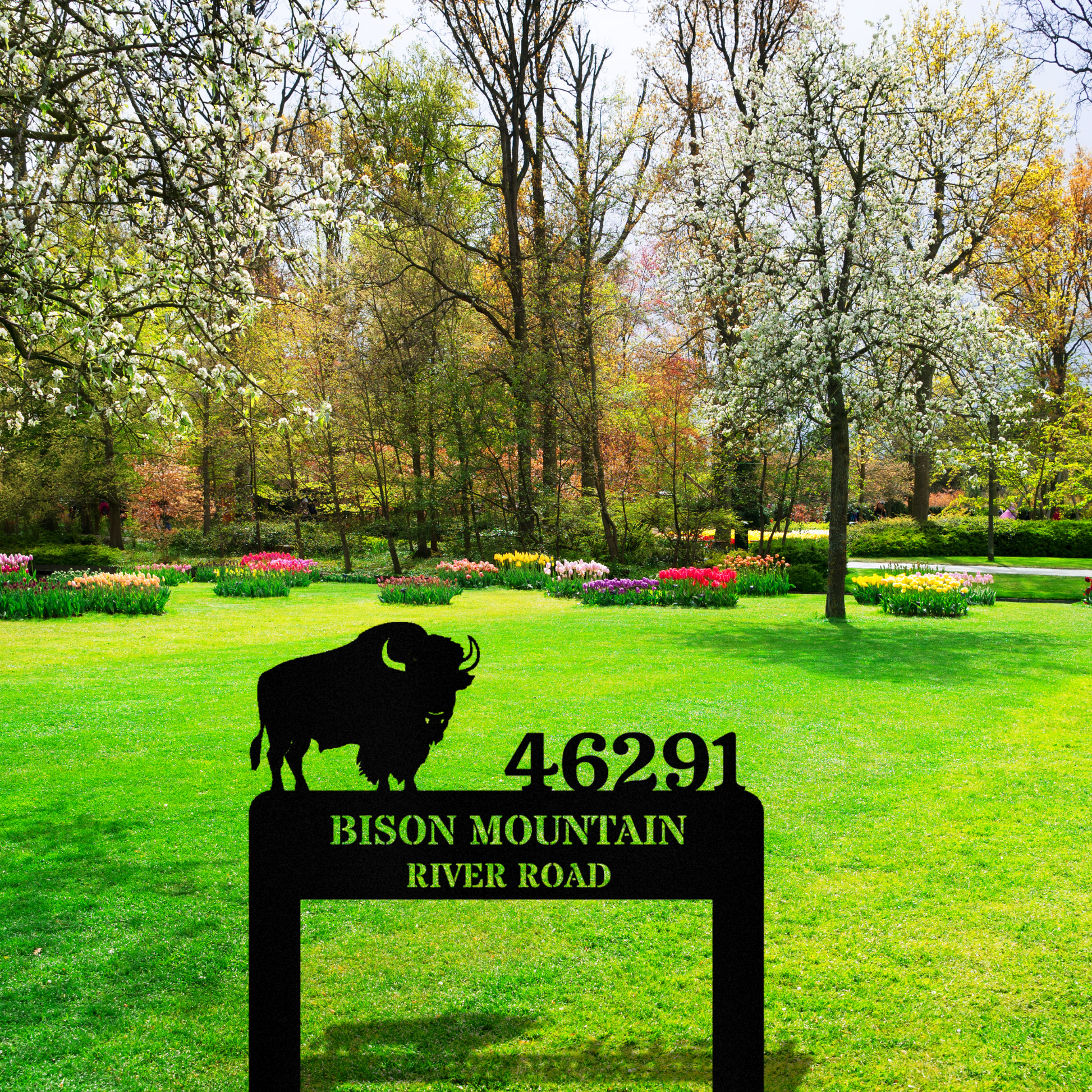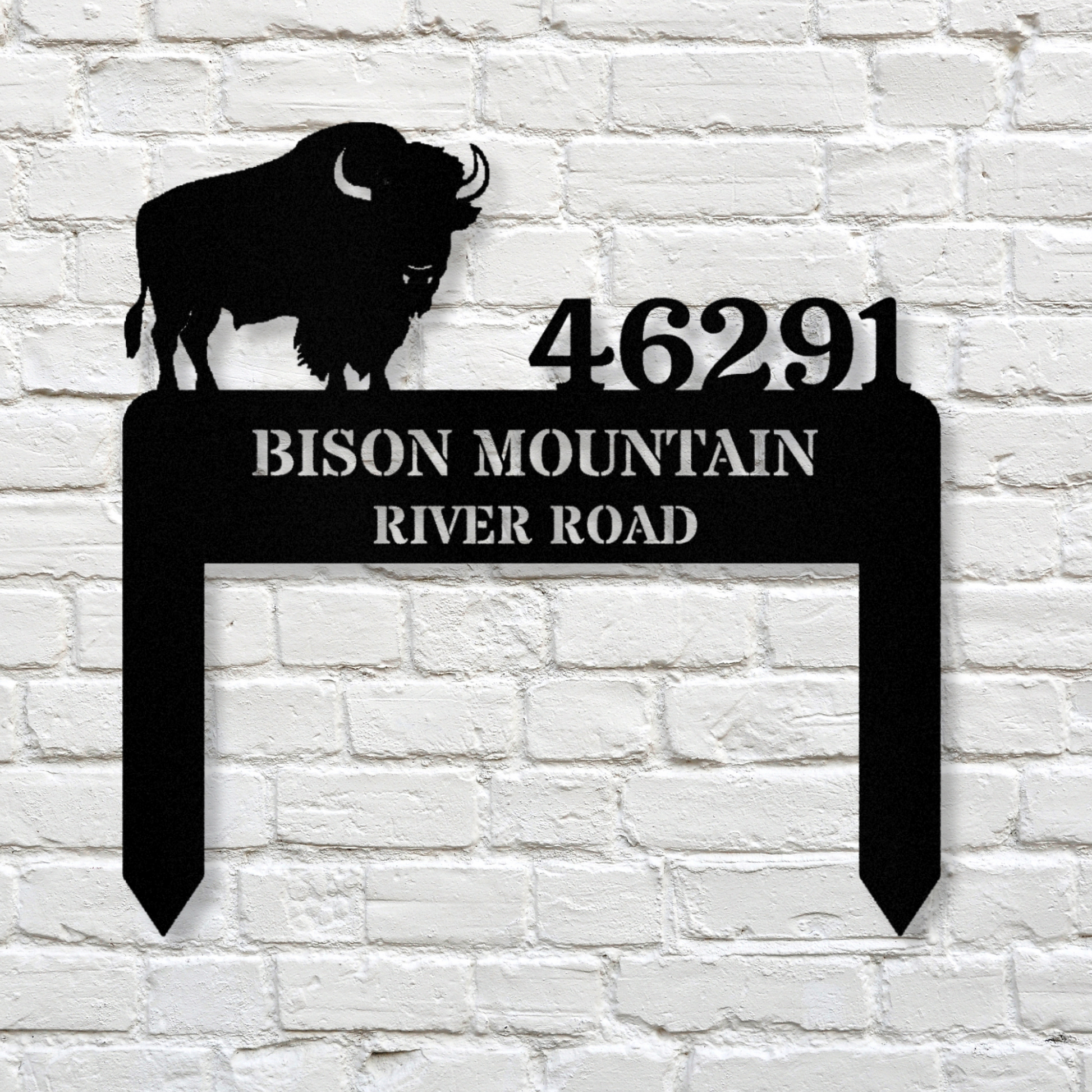 Customized Bison Metal Address Stake Sign, Bison Front Yard Address Sign, Bison Lover Gift, Home Number Address Signage, Residence Address Sign, Wedding Gift