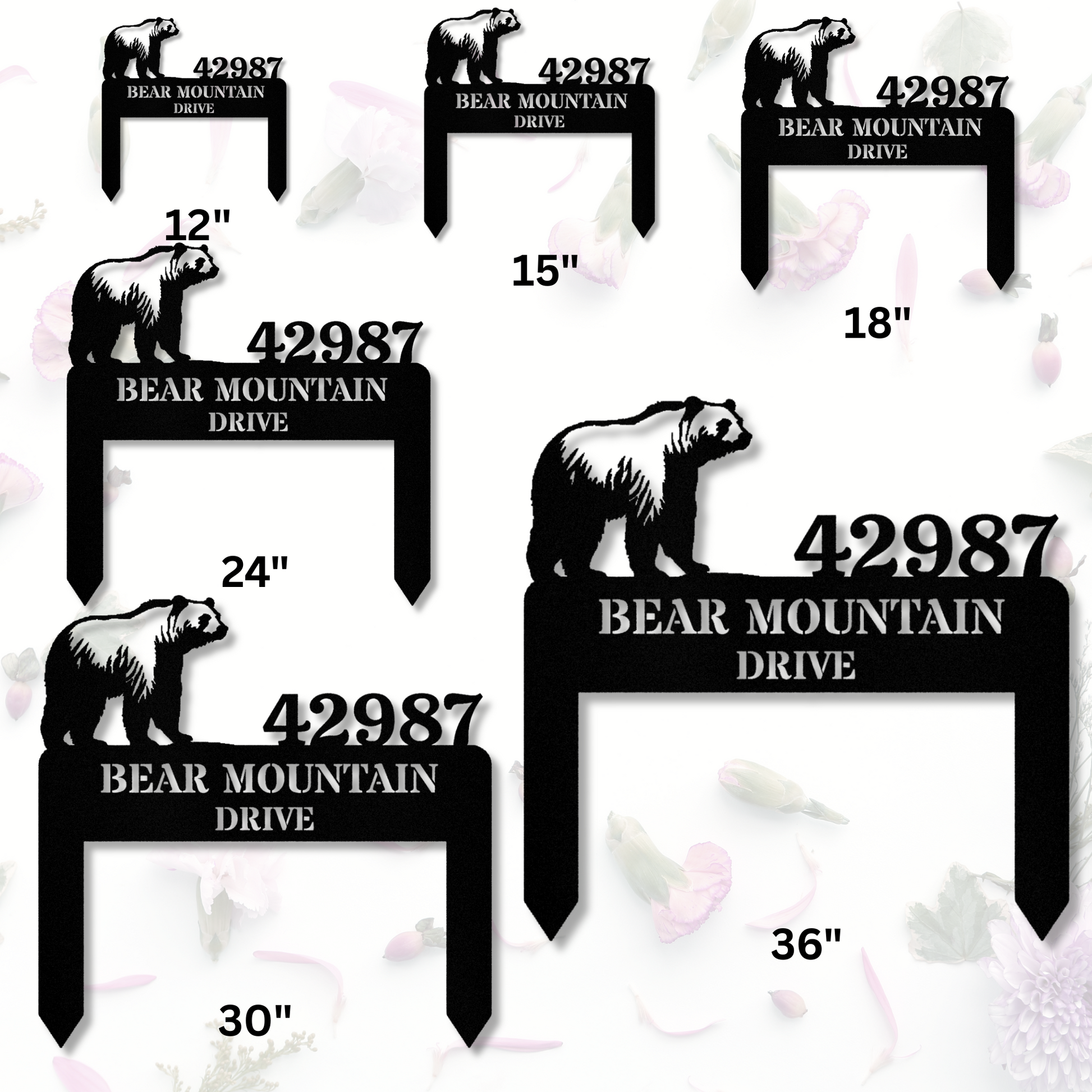 Personalized Bear Address Stake Metal Sign, Horizantal Address Signage, Custom Bear Metal Sign, Home Address Sign, Front Yard Bear Stake Sign