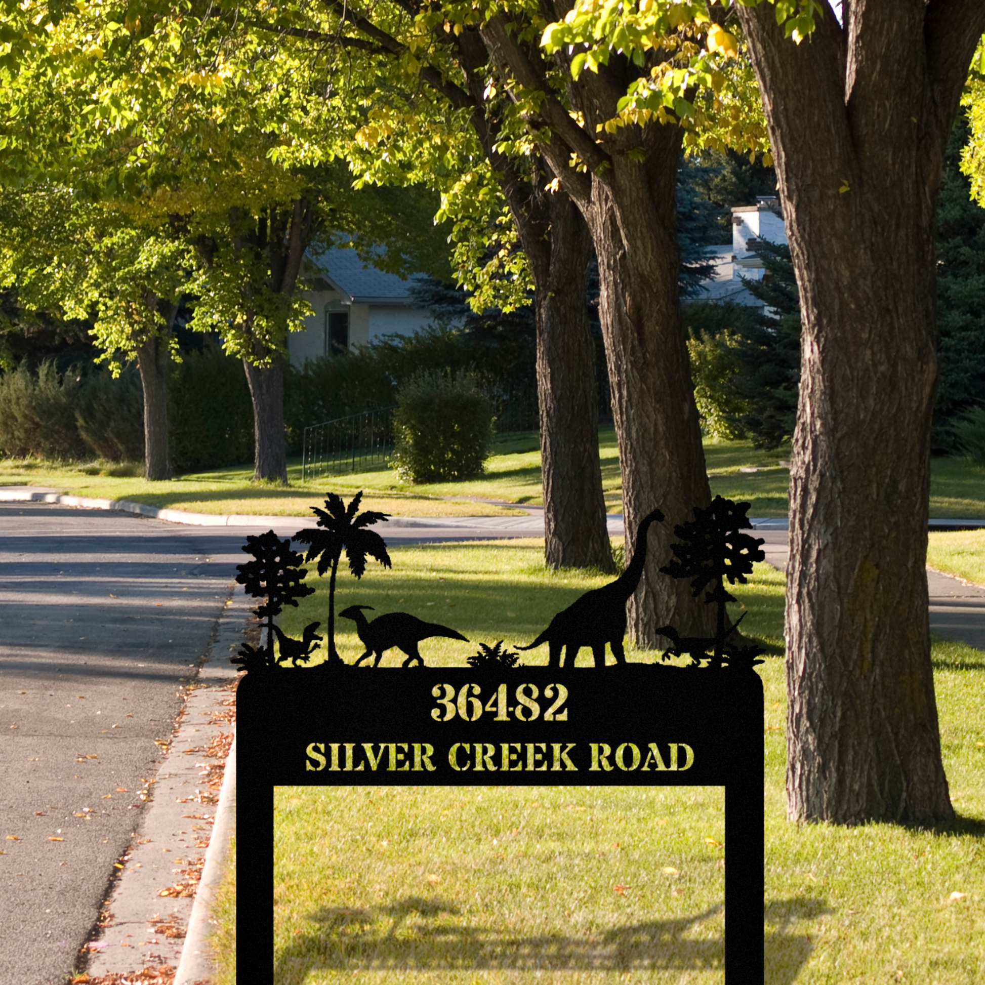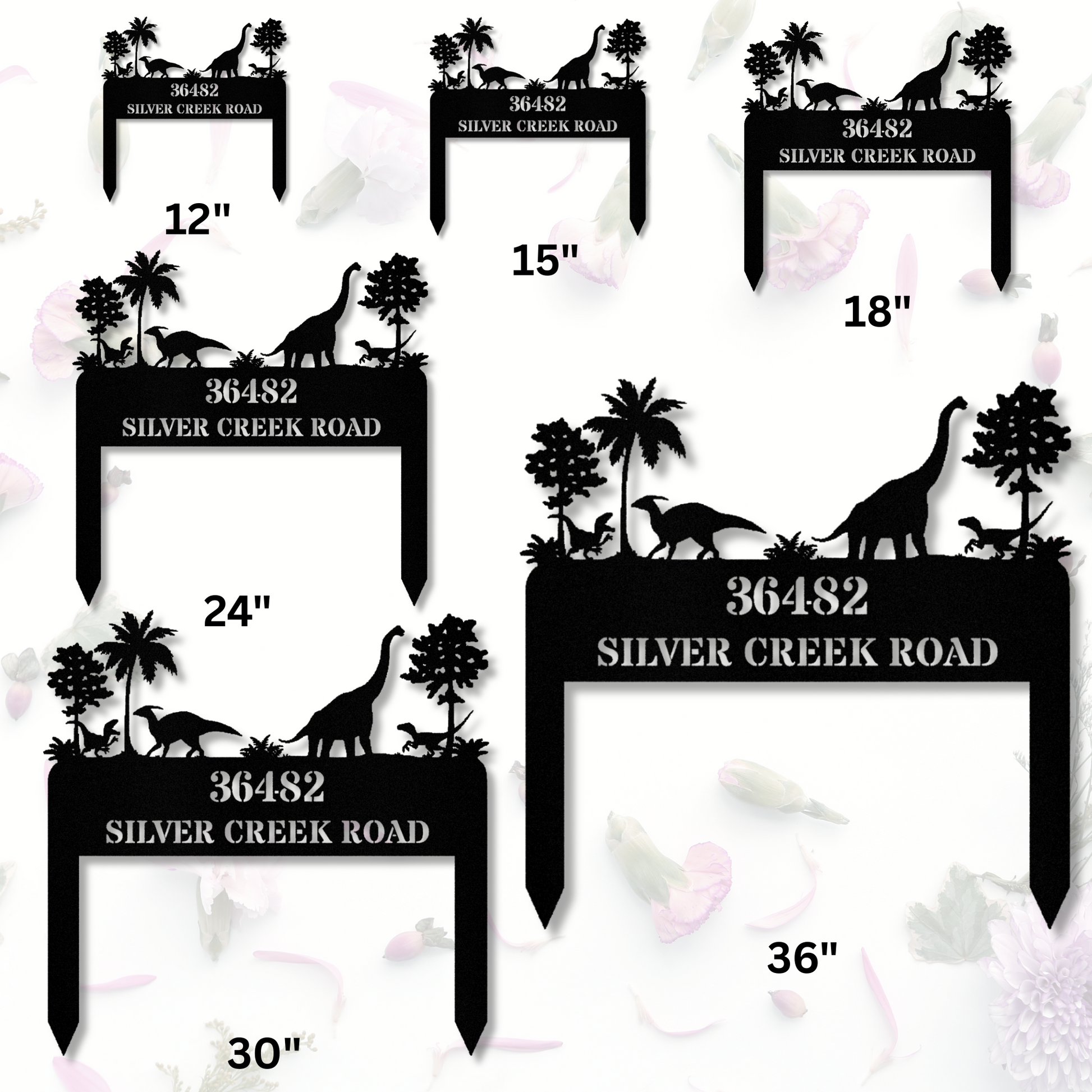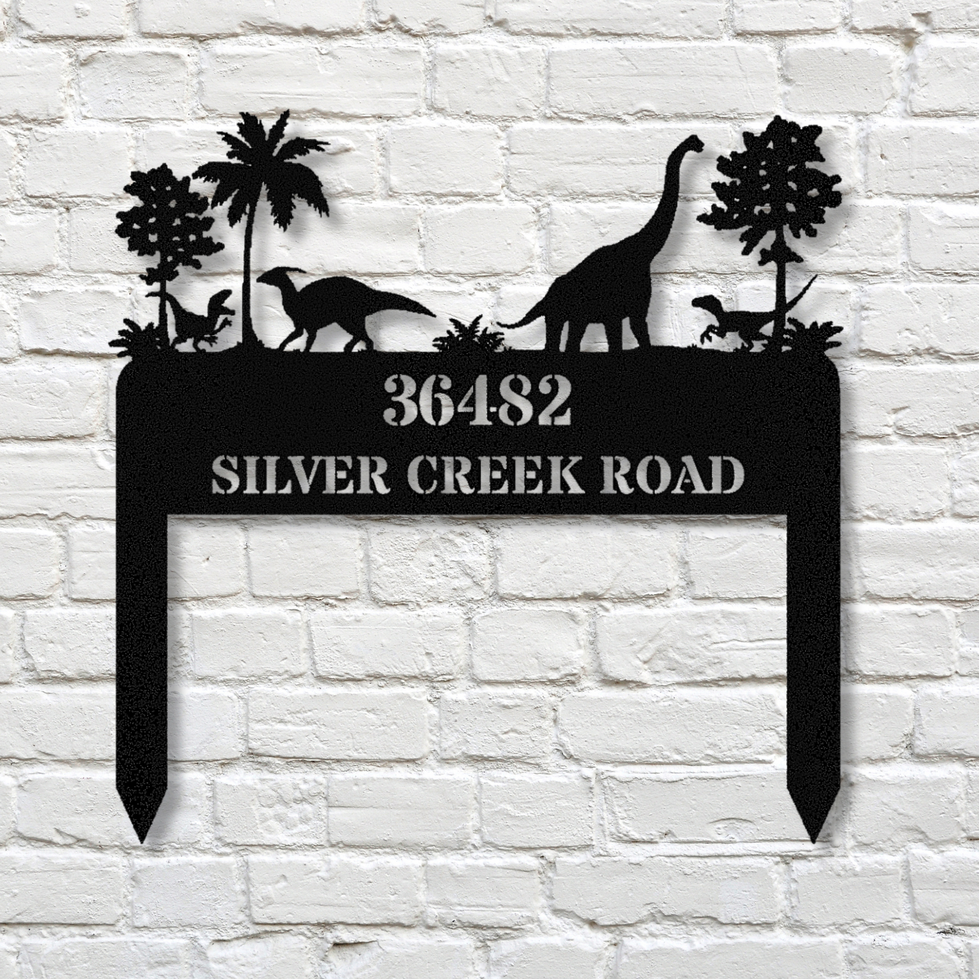 Custom Dinosaur Metal Address Sign, Dino Home Address Sign, Personalized Dinosaur Art Address Stake, New Home Outdoor Decor, Residence Sign
