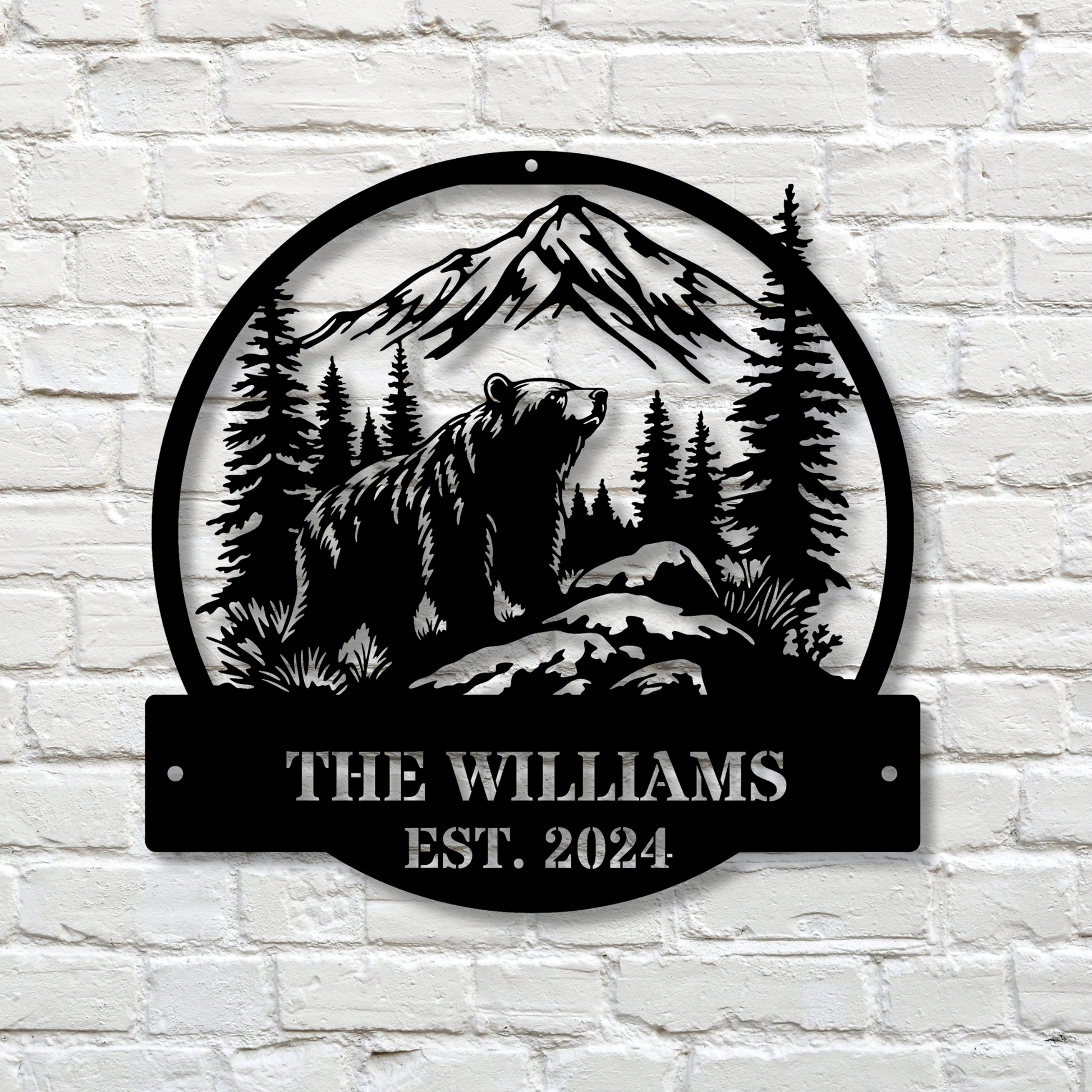 Customized Bear Mountain Wall Metal Sign, Cabin Wall Decor, Christmas Gift for Him, Last Name Personalizaed Metal Sign, Established Metal Art Decor