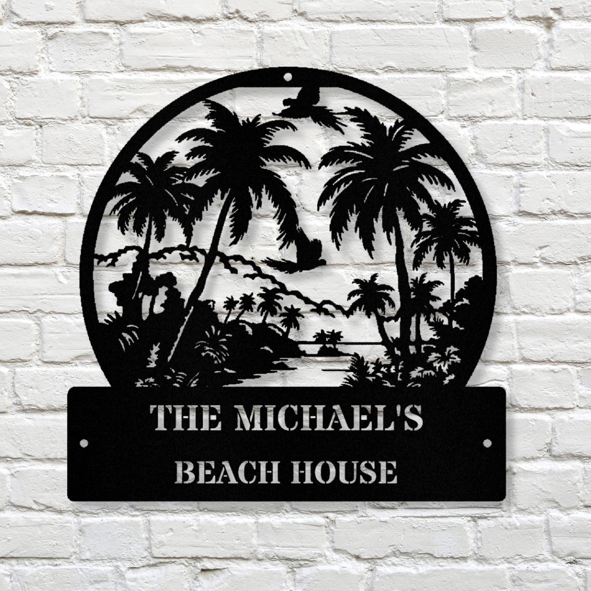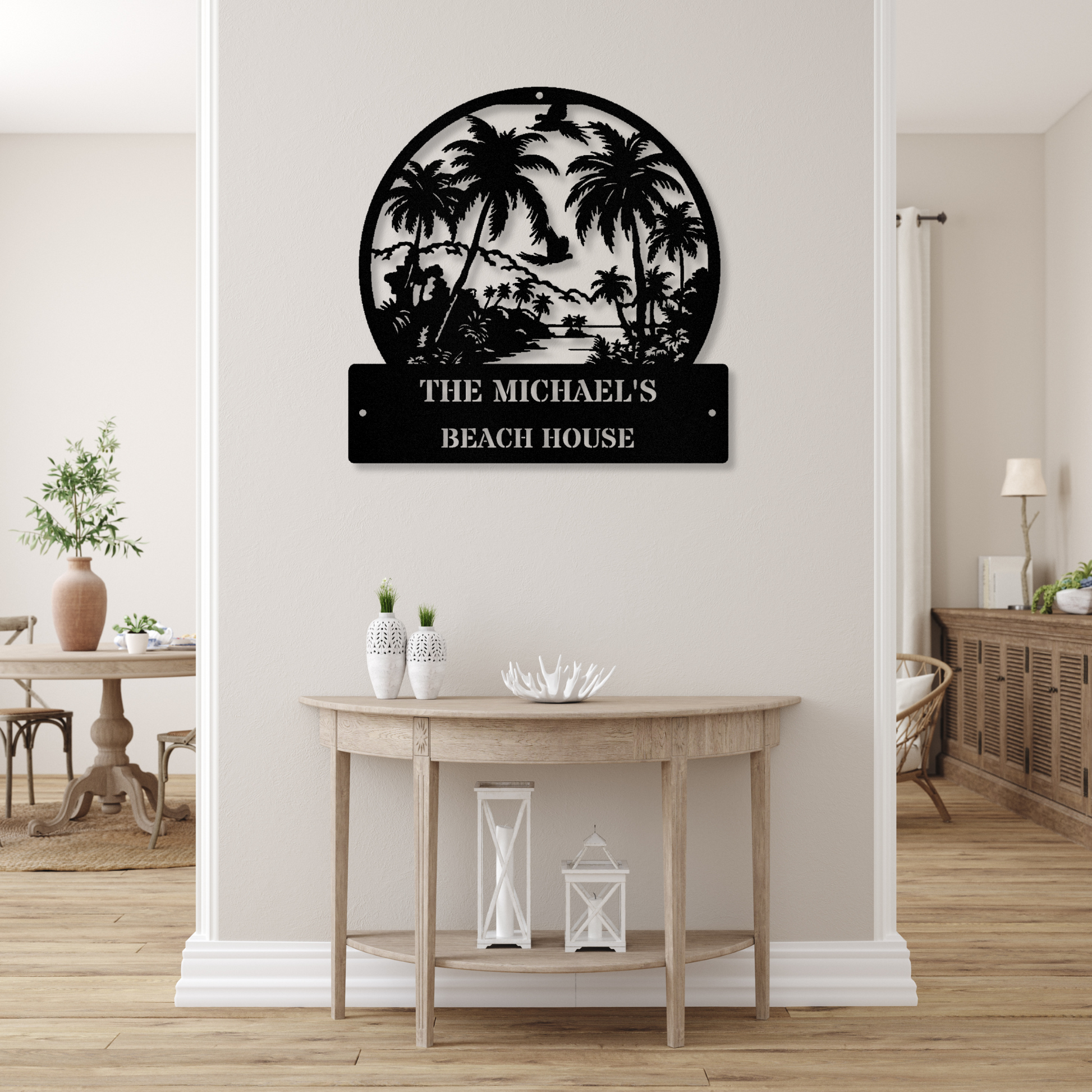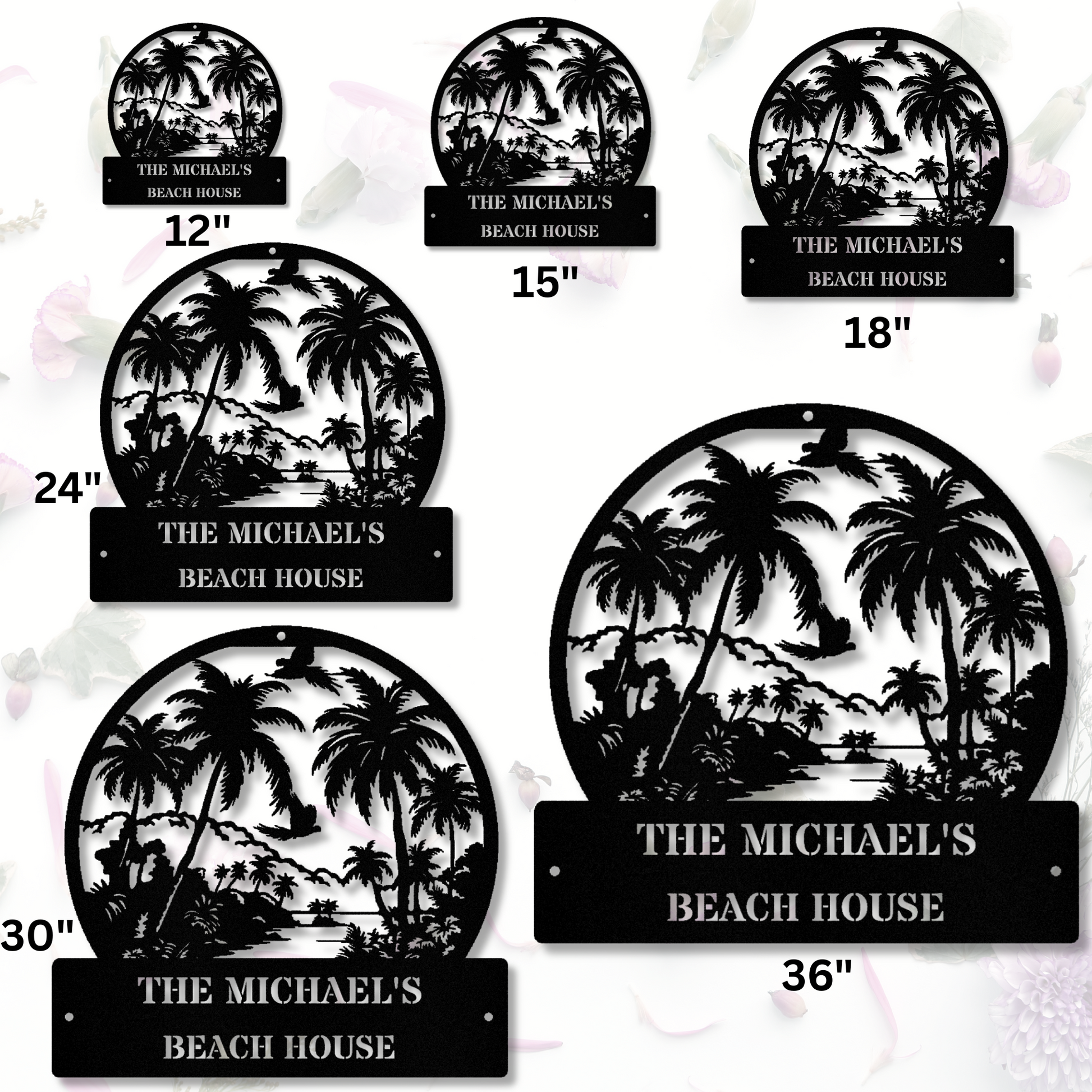 Customized Beach House Sign, Personalized Beach Wall Art, Summer Decor, Beach House Sign, Outdoor Indoor Metal Sign, Lake House Sign