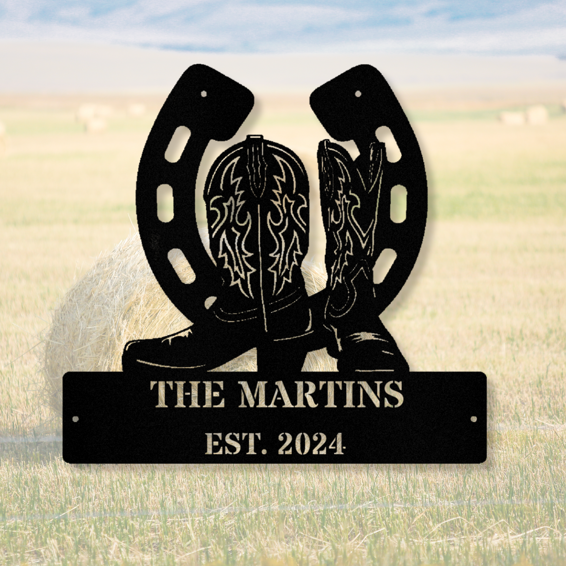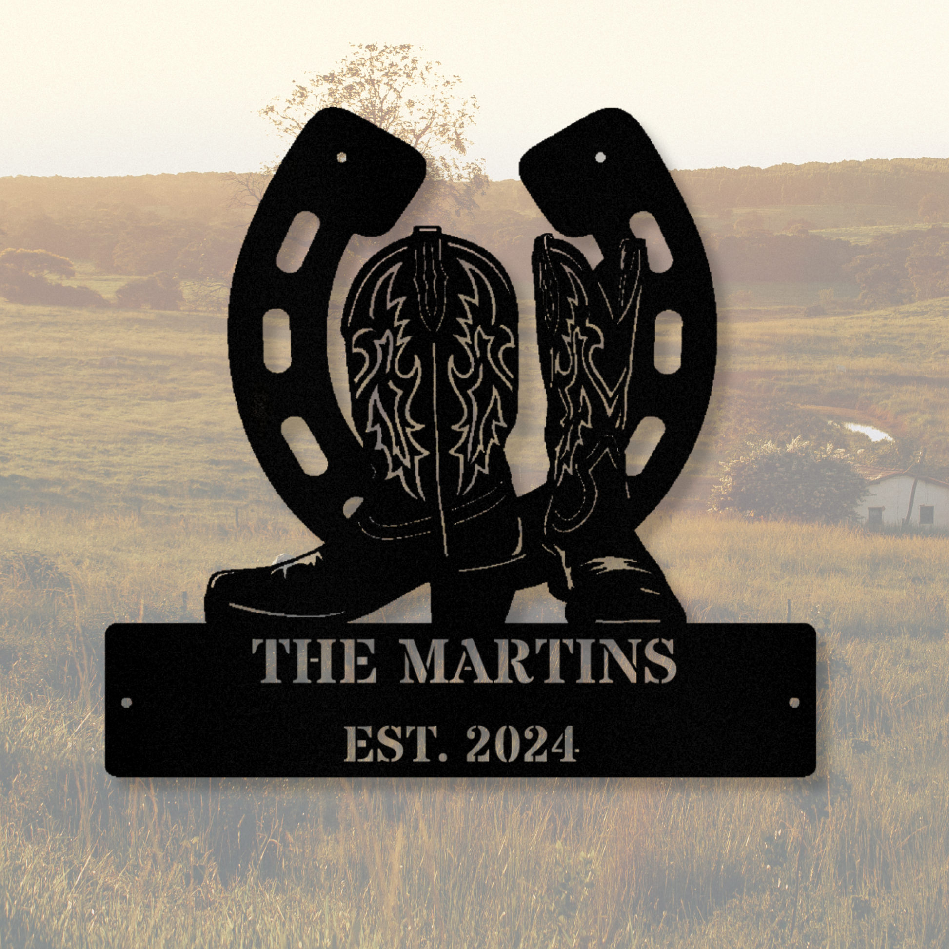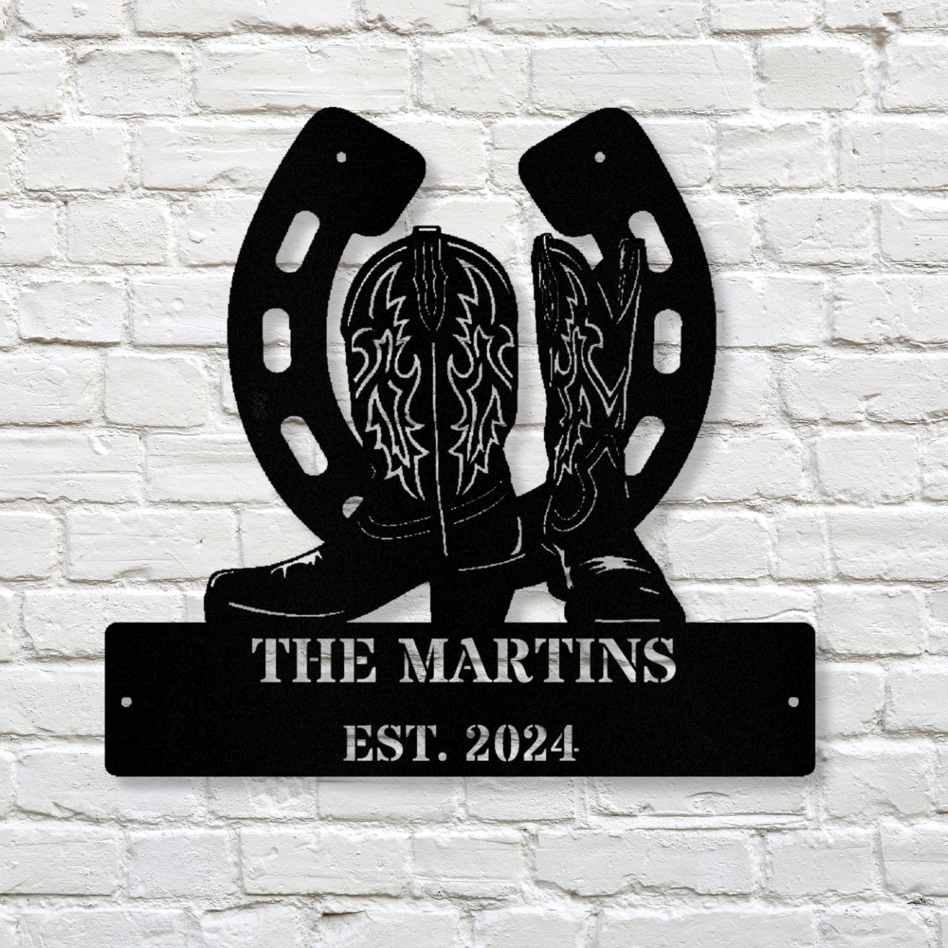 Custom Cowboy Boots Metal Sign, Established Metal Sign, Boots Wall Art Decor, Address Metal Wall Sign, Last Name Metal Sign, Wall Hanging