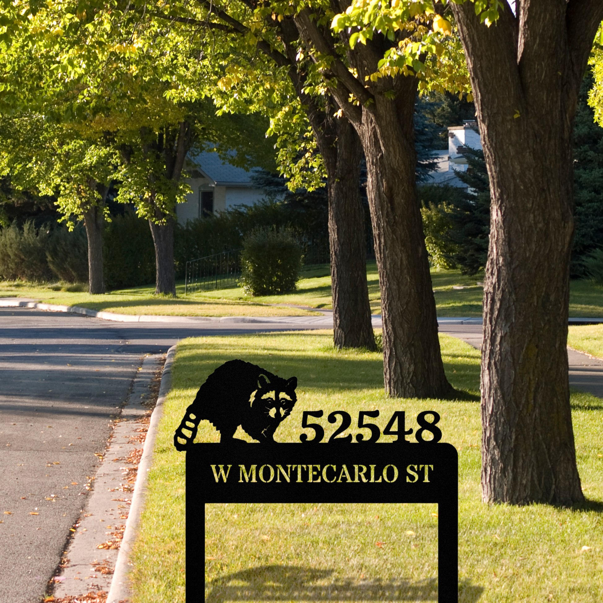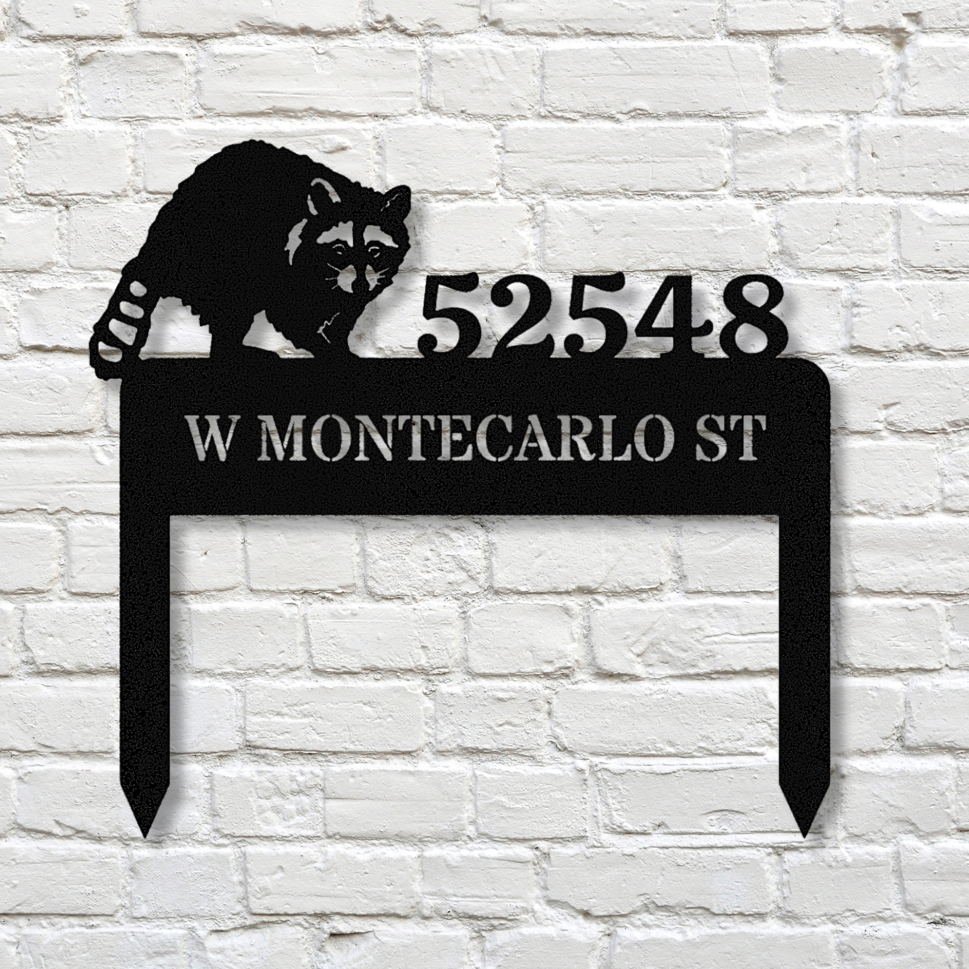 Raccoon Metal Address Stake, Customized Horizontal Address Sign, Personalized Address Signage, House Address, Metal House Number Stake