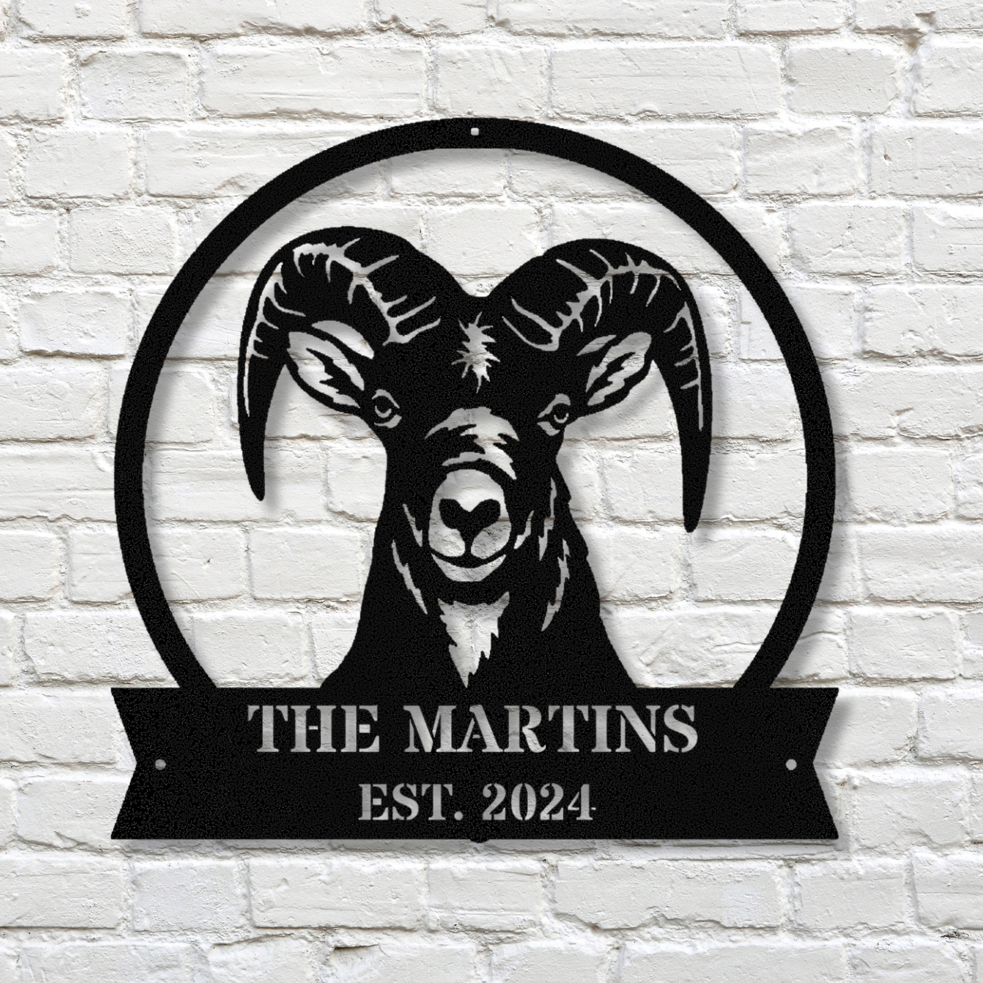 Customized Bighorn Goat Metal Sign, Goat Wall Hanging, Bighorn Wall Art Decor, Large Metal Sign, Last Name Established Metal Sign, Goat Lover Farm Sign