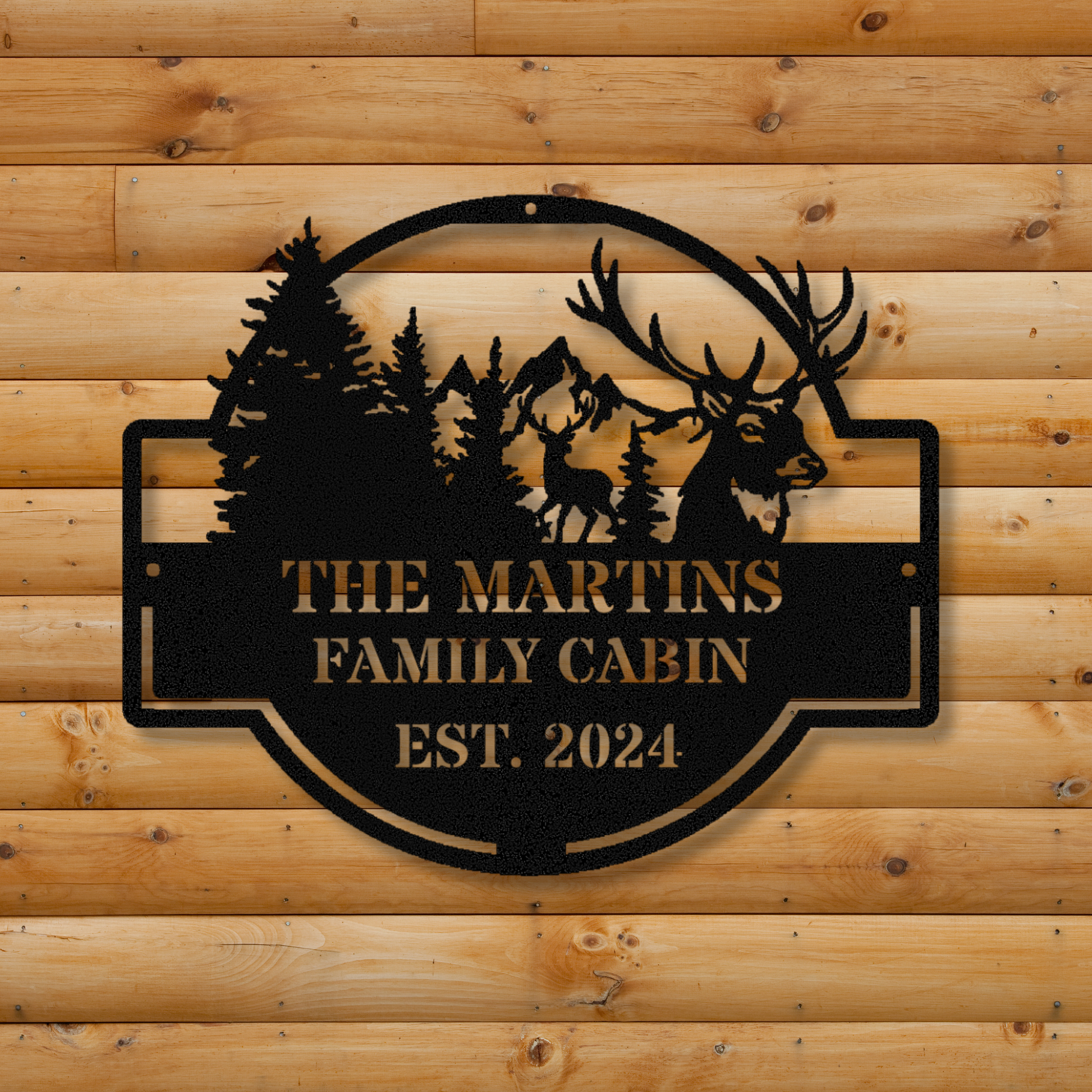 Personalized Cabin Metal Sign, Custom Name Metal Sign, Wall Art Decor, Deer Hunter Gift, Deer Metal Sign, Last Name Metal Sign, Cabin Wall Hanging