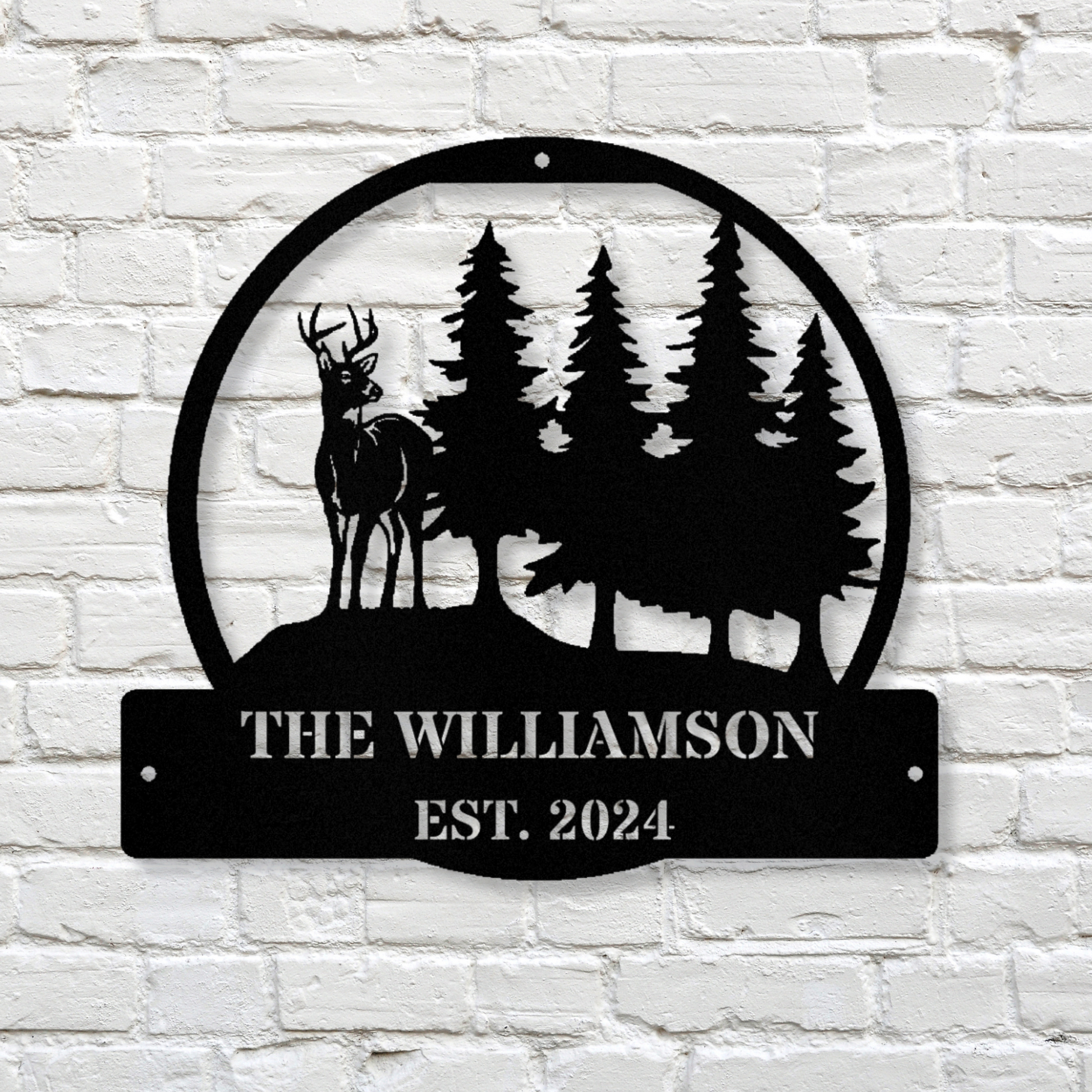 Custom Deer Metal Sign, Cabin Wall Metal Decor, Deer Hunter Gift, Deer Woods Metal Art, Housewarming Gift, Wedding Gift, EST. Name Sign
