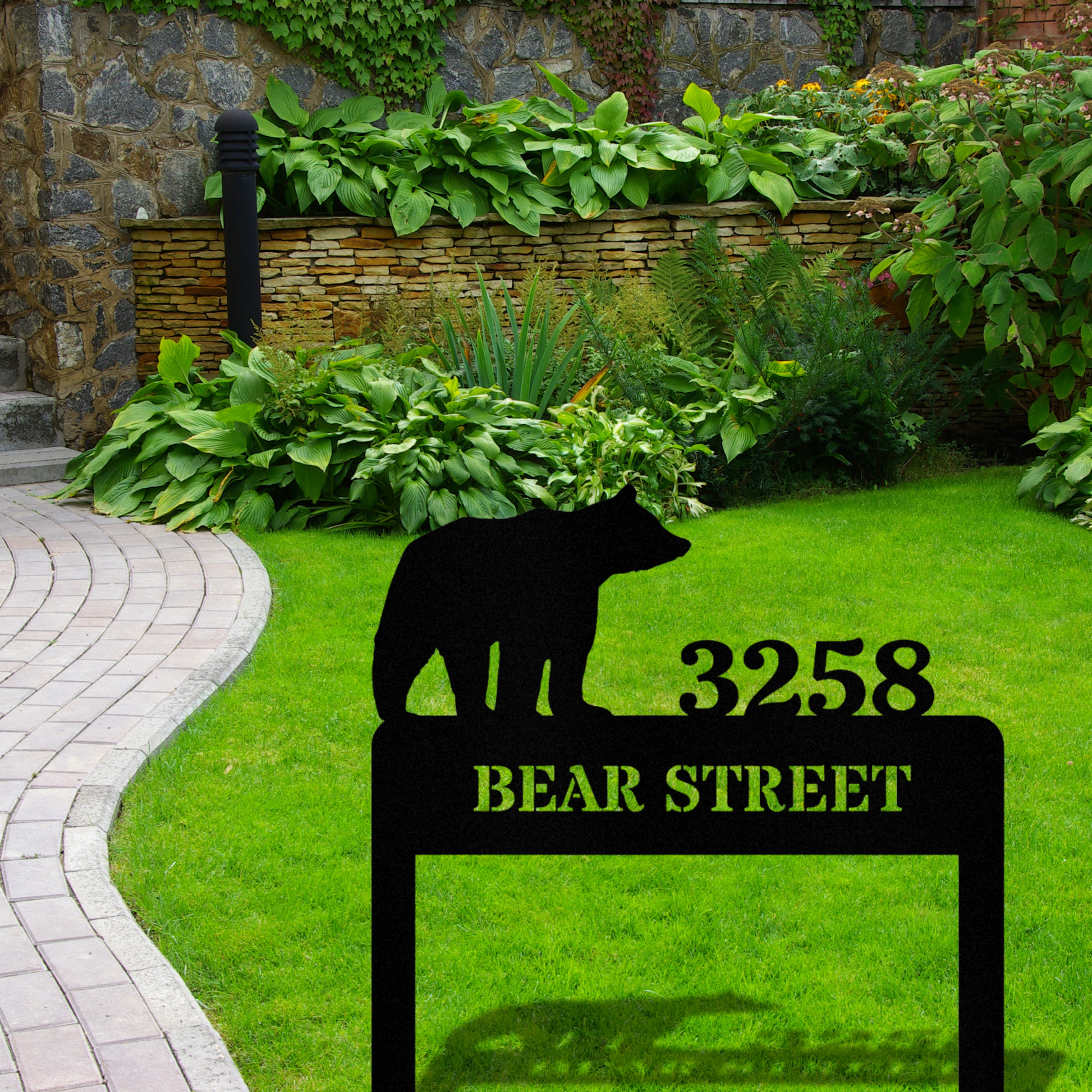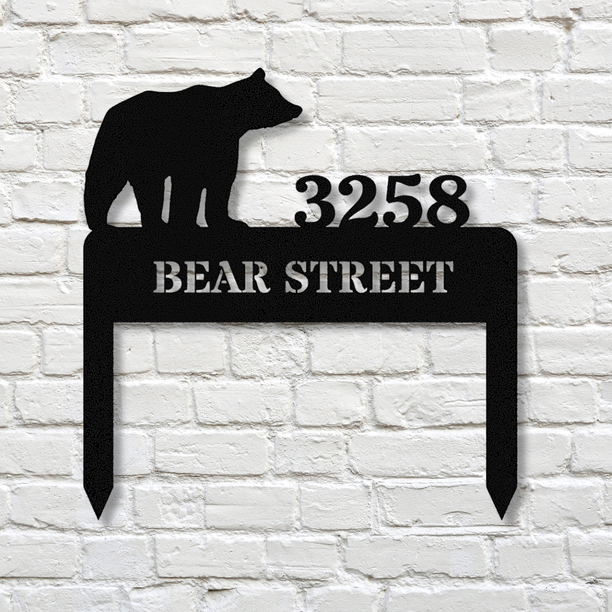 Personalized Bear Address Stake, Customized Metal Address, Horizontal Address Sign, Address Signage, House Address, Metal House Number Stake