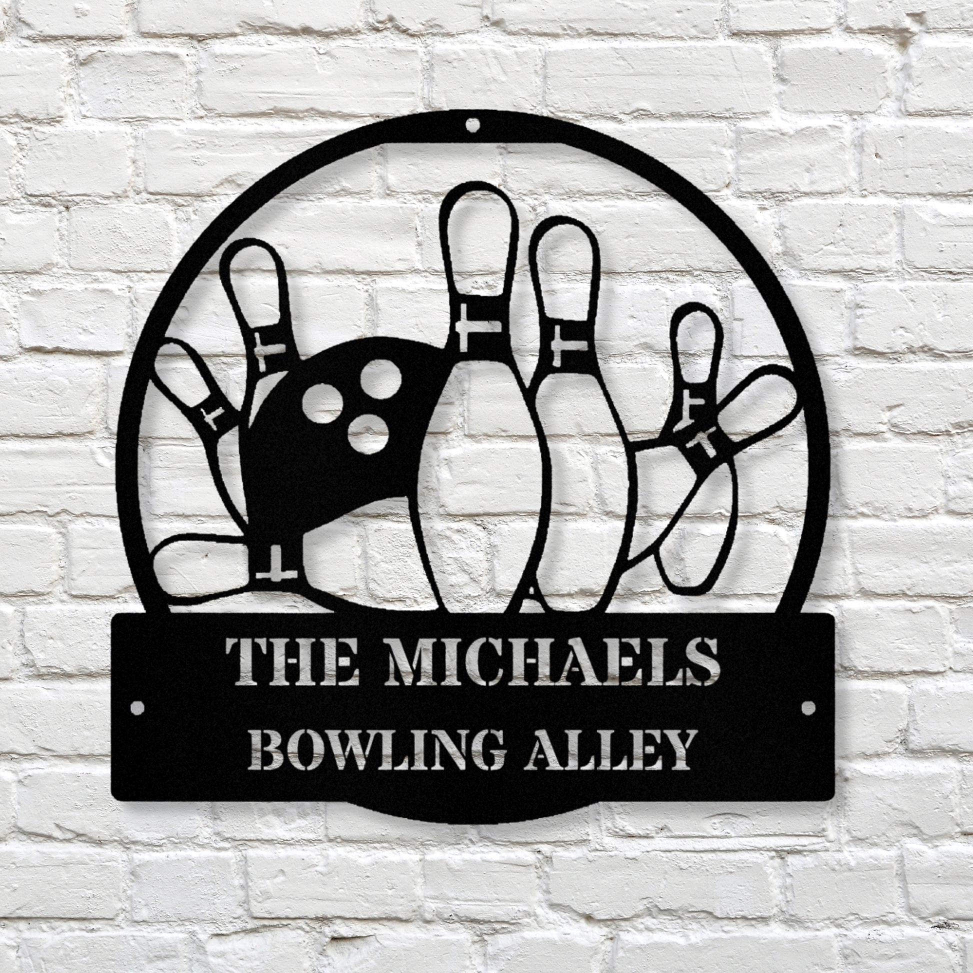 Custom Bowling Metal Wall Sign, Last Name Metal Wall Decor, Bowling Themed Metal Art Decor, Large Wall Metal Sign, Bowling Alley Sign