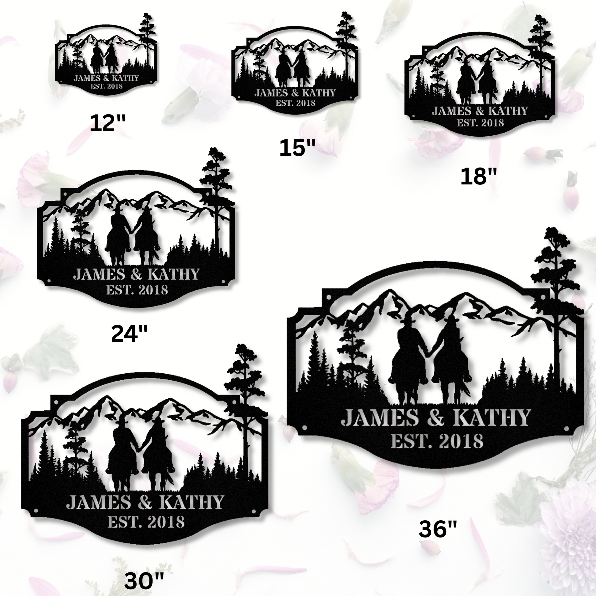 Custom Couple Horse Riding Metal Sign, Equestrian Wall Art, Anniversary Gift, Wedding Gift for Couple, Cabin Wall Decor, Horse Lover Gift