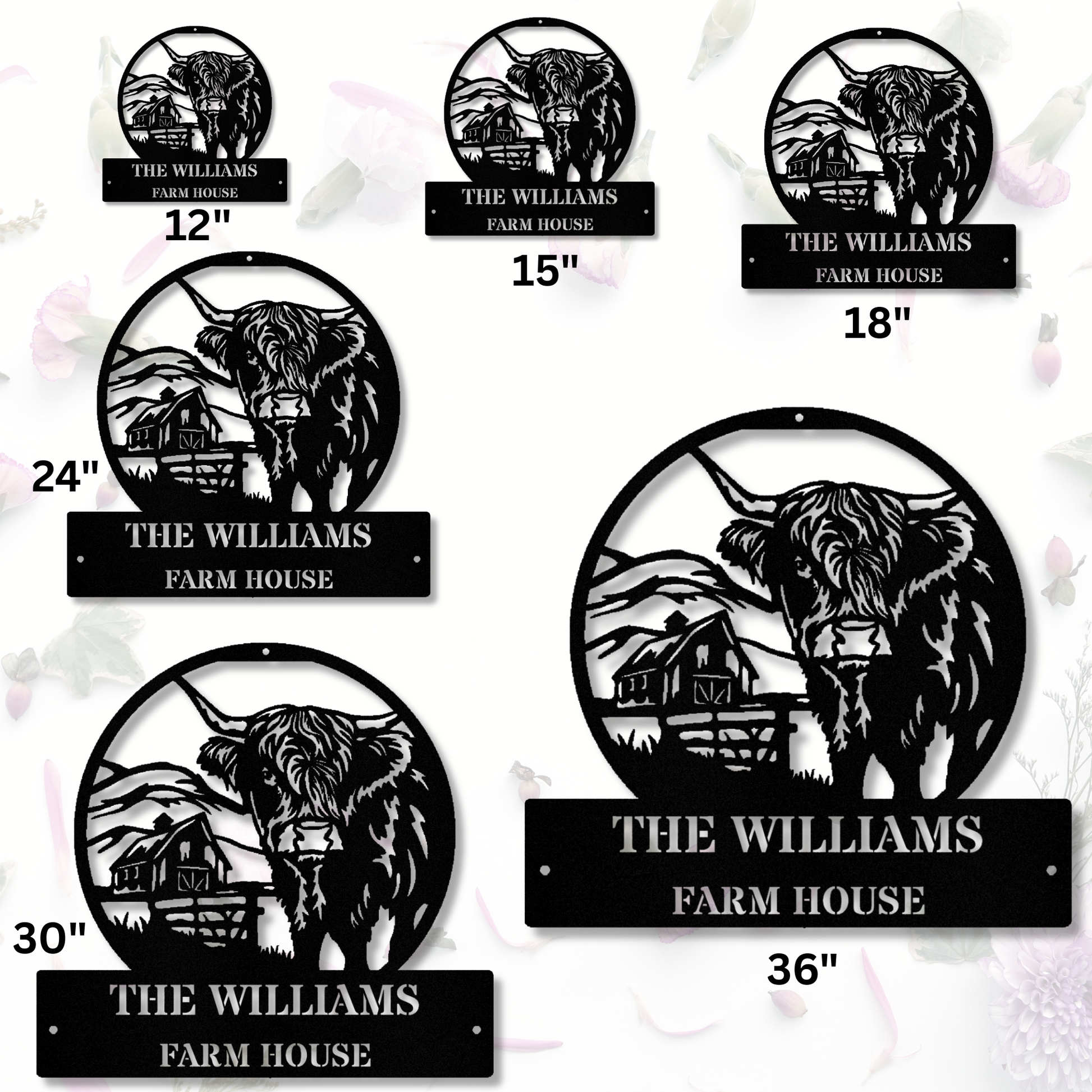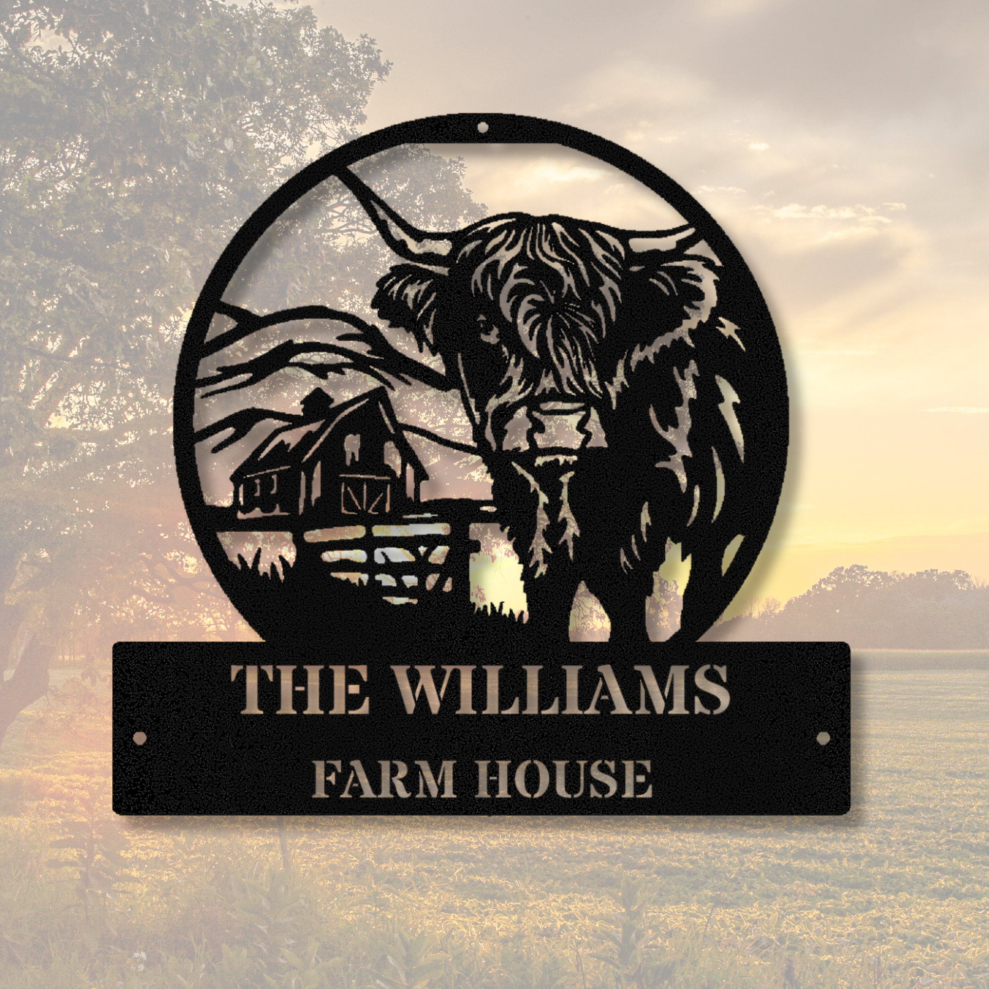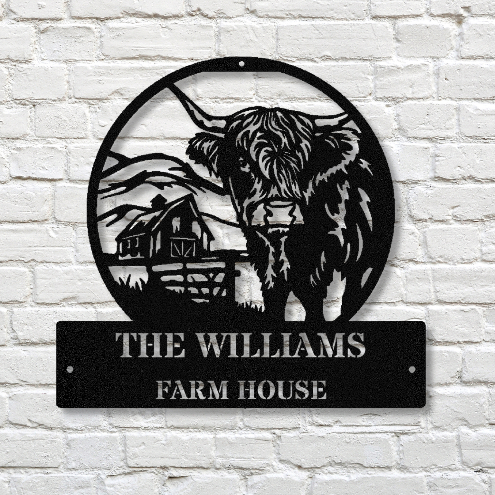Custom Highland Cow Sign, Farmhouse Decor, Rustic Wall Art, Metal Cattle Sign, Highland Cow Decor, Animal Wall Art