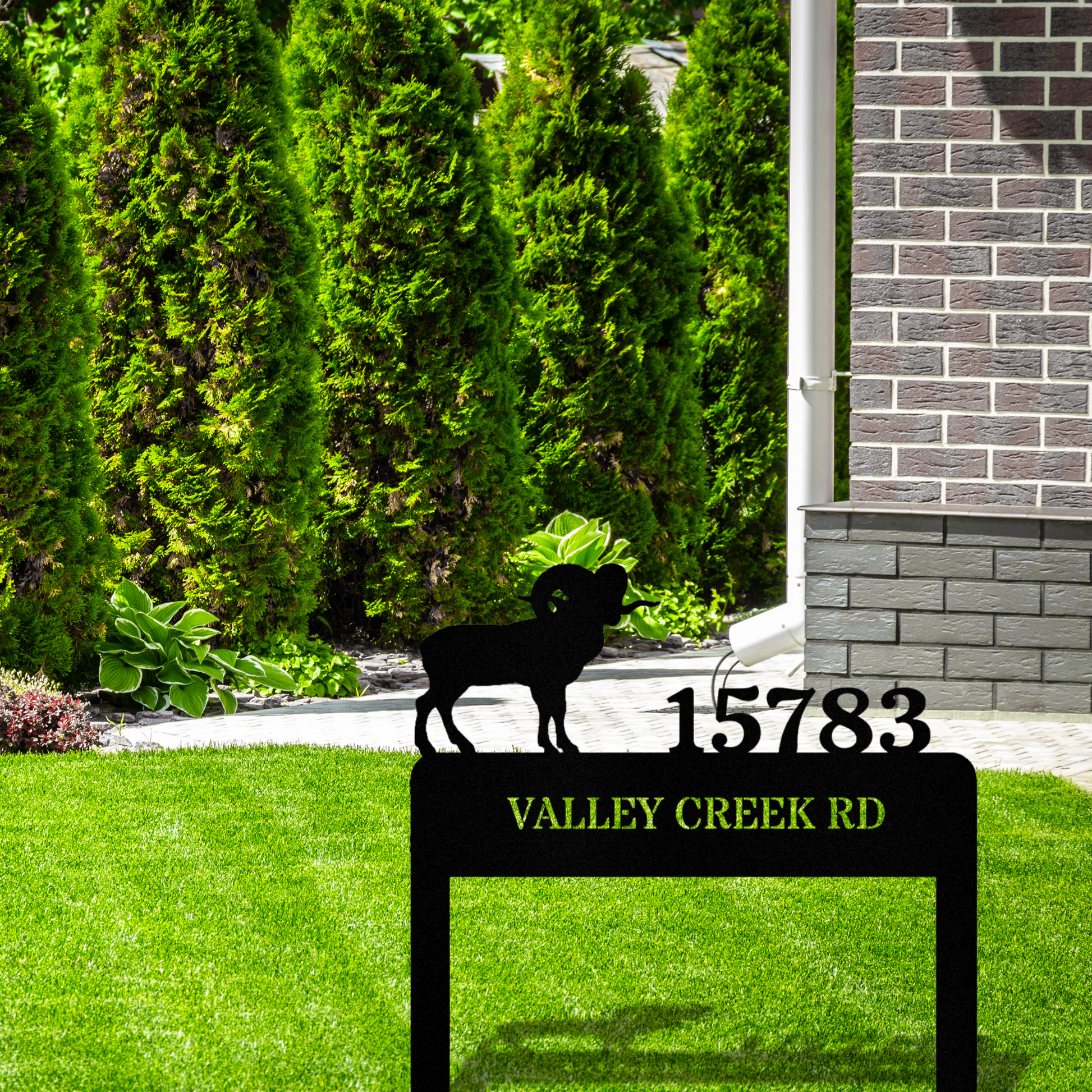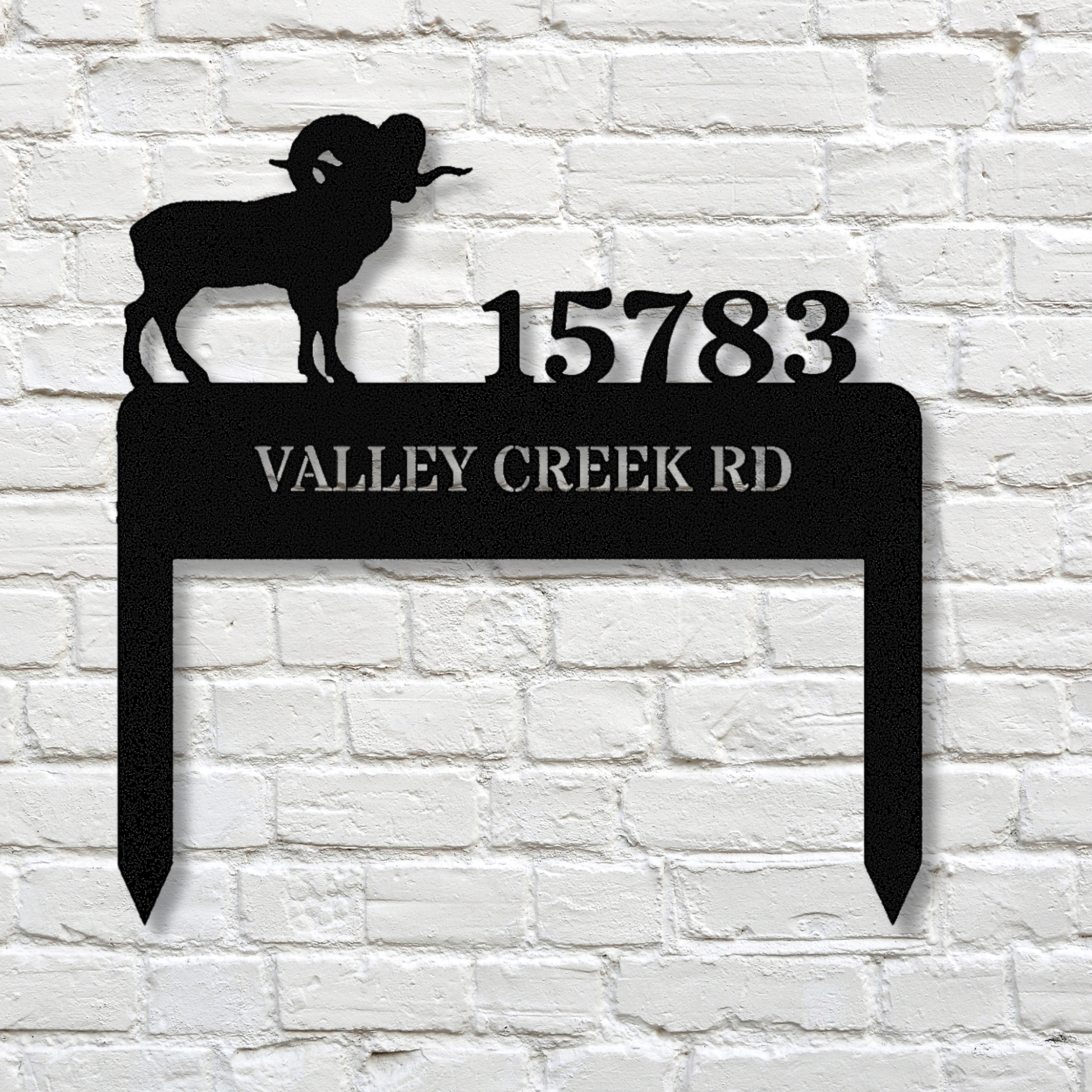 Customized Bighorn Goat Address Stake, Metal Sign, Wilderness address Sign, Housewarming Gift, Horizontal Address Plaque, Address Signage