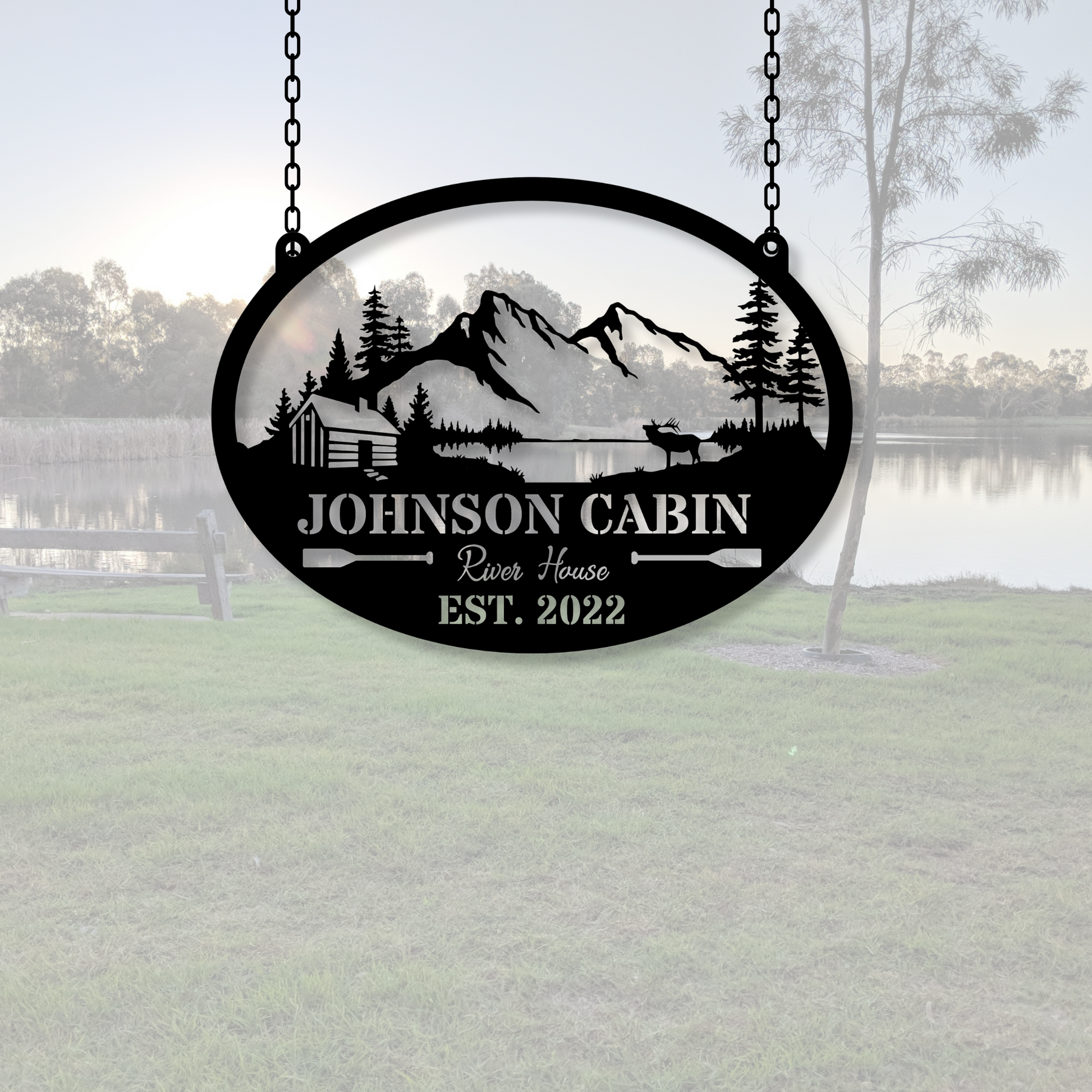Personalized Metal Cabin Name Sign, Pine Tree Custom Metal Sign, Personalized Gift, Farmhouse Gift, Mountain House Sign, Family Name Sign