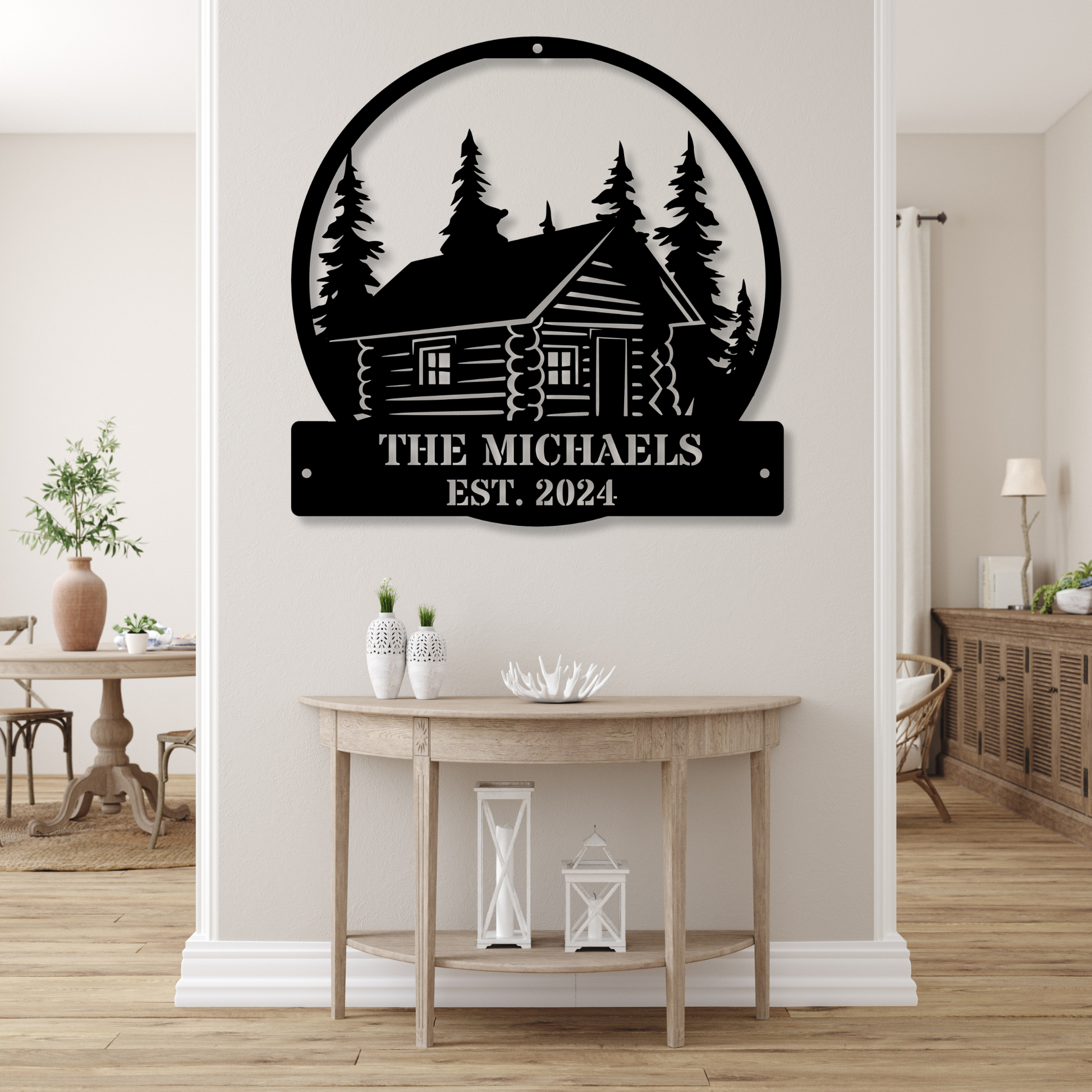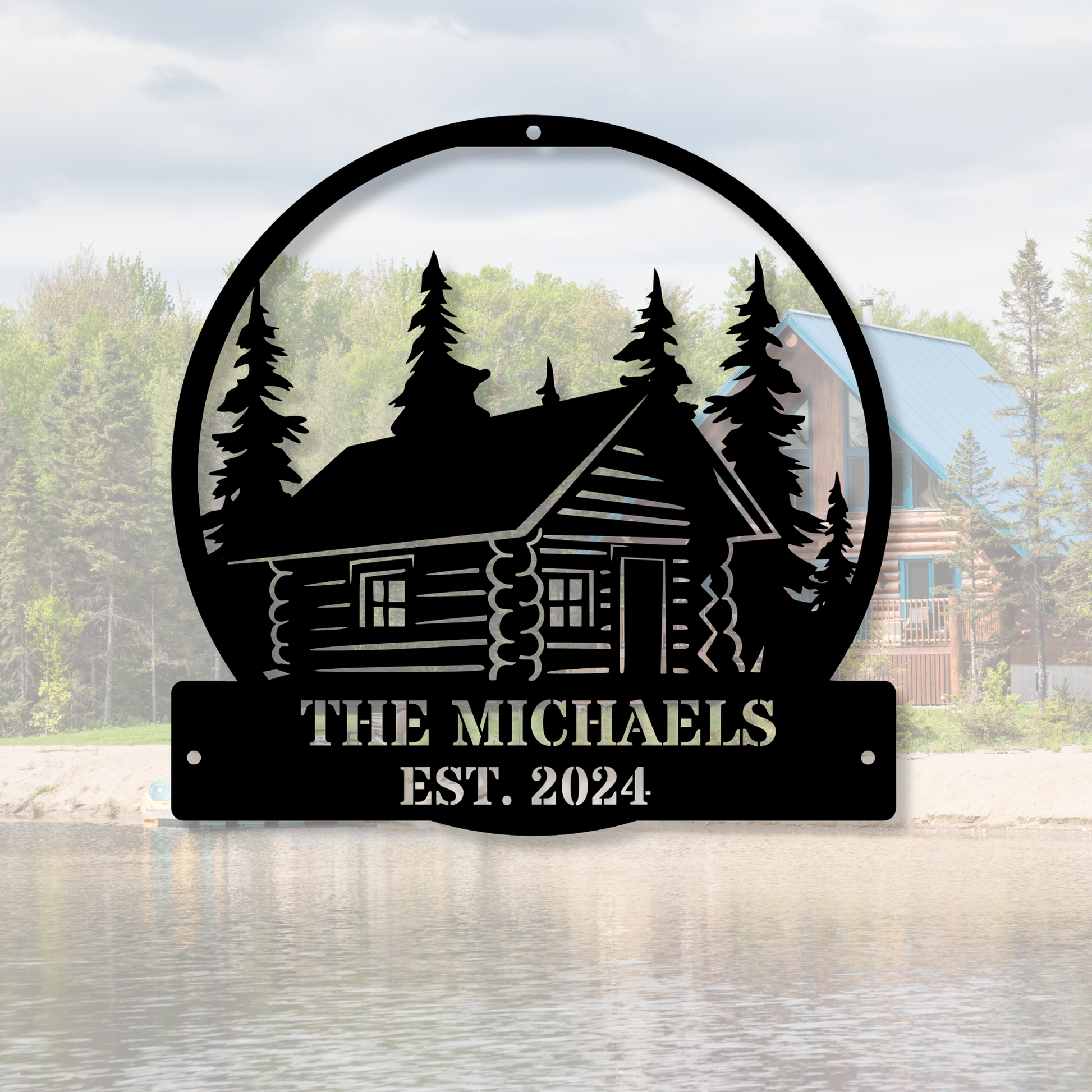 Personalized Metal Cabin Name Sign, Pine Tree Custom Metal Sign, Personalized Gift, Farmhouse Gift, Mountain House Sign, Family Name Sign