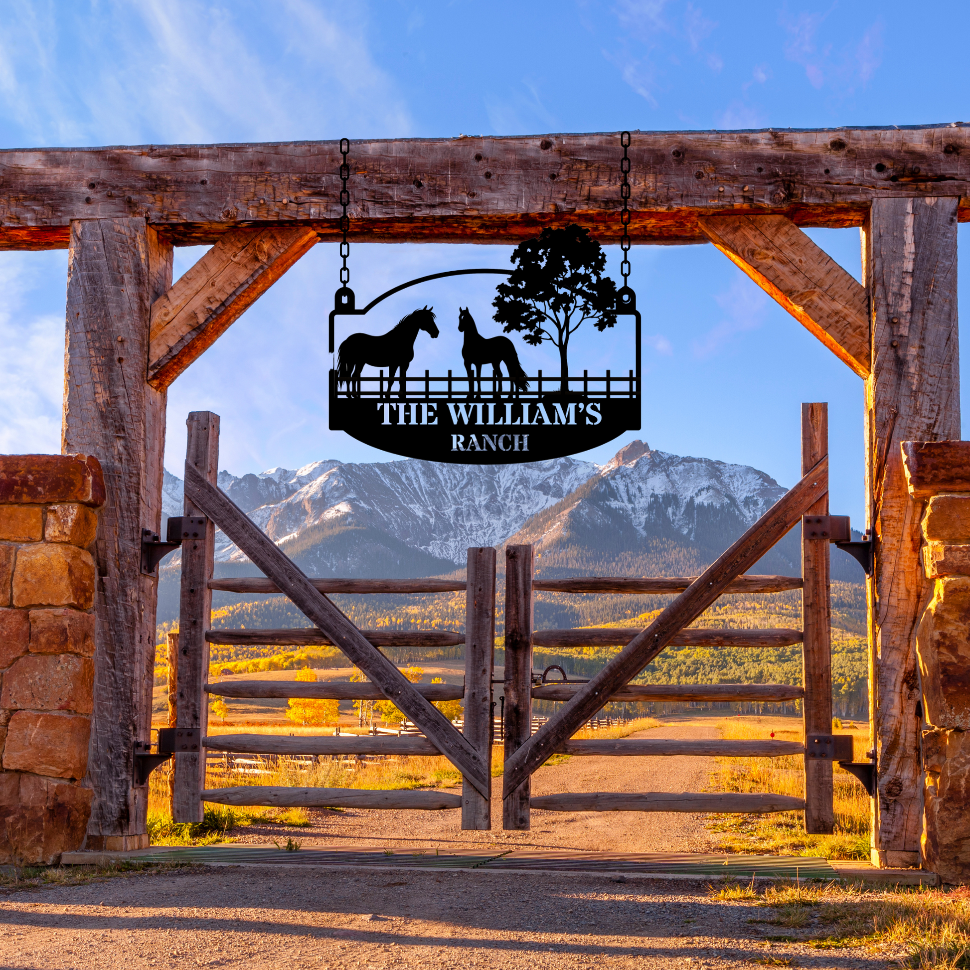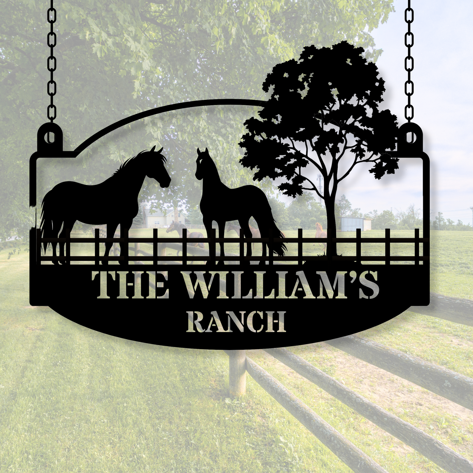 Custom Horse Ranch Hanging Metal Sign, Horse Stable Decor, Personalized Ranch Sign, Equestrian Cowboy Decor, Western Metal Art, Horse Farm
