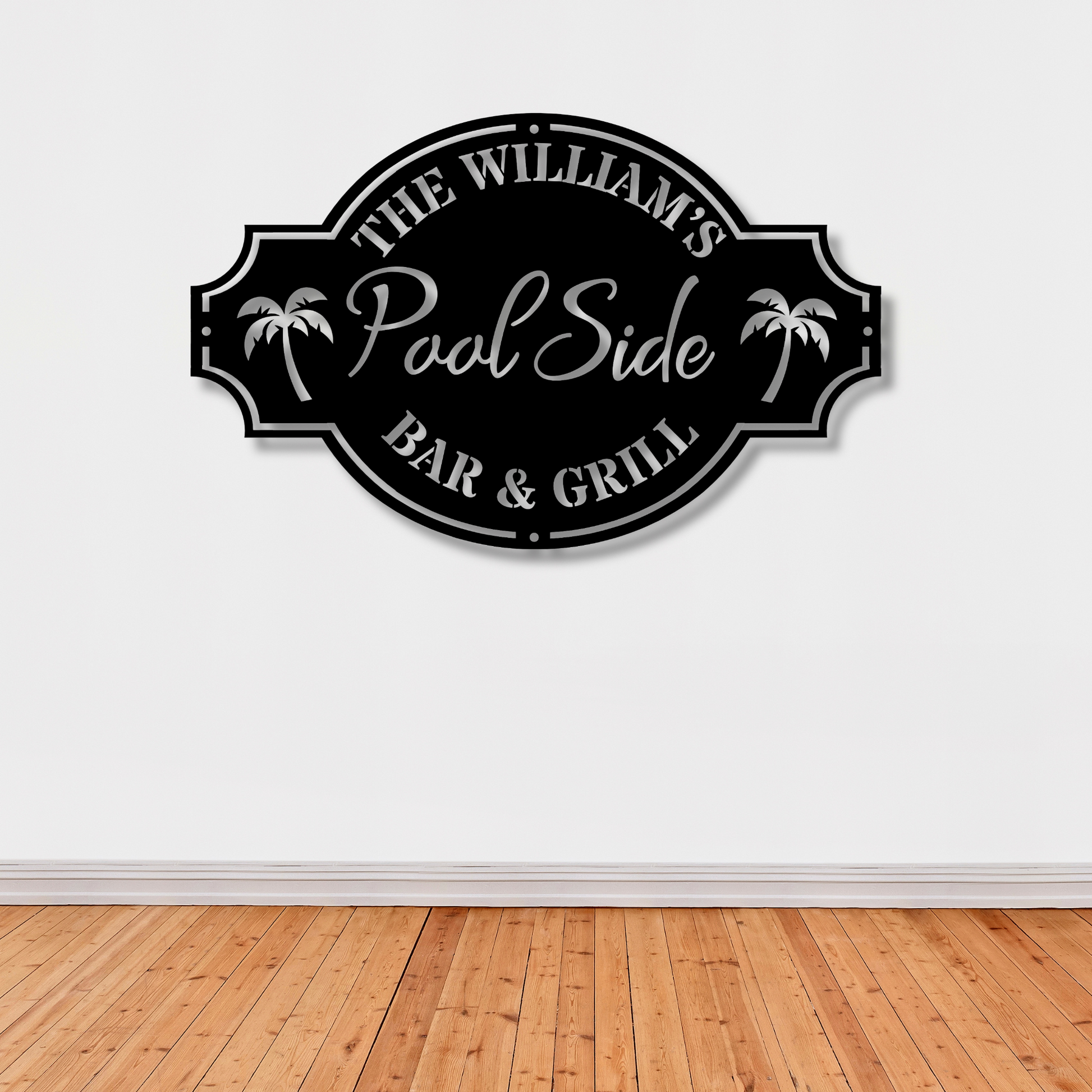 Custom Palm Tree Pool Sign Metal Wall Art, Custom Metal Sign, Bar & Grill Sign, Bar Sign, Backyard Sign, Kitchen Decor, Personalised Gifts