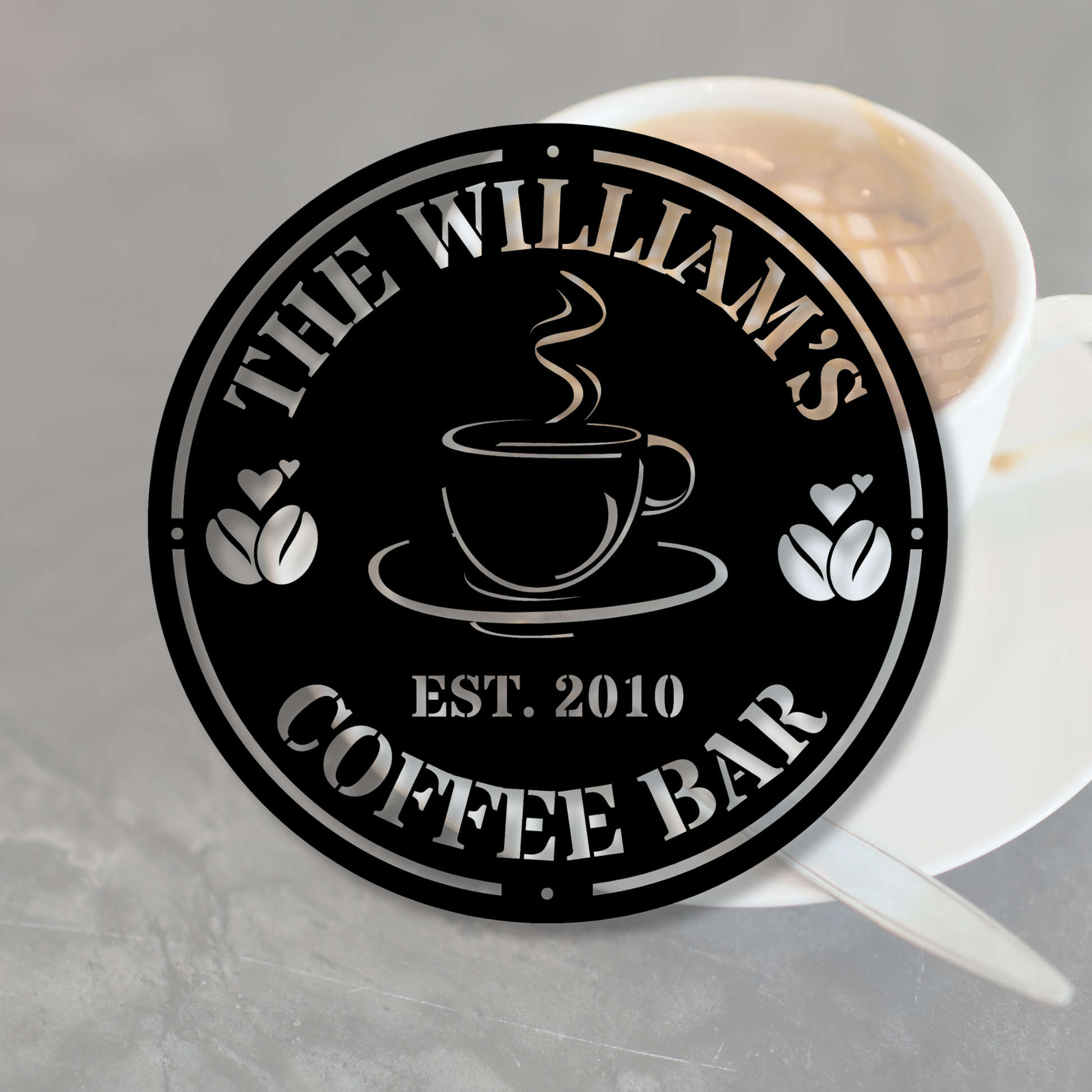 Custom Coffee Bar Metal Sign, Personalized Name Sign, Coffee Shop Decor, Kitchen Wall Art, Coffee Lover Gift, Custom Coffee Decor