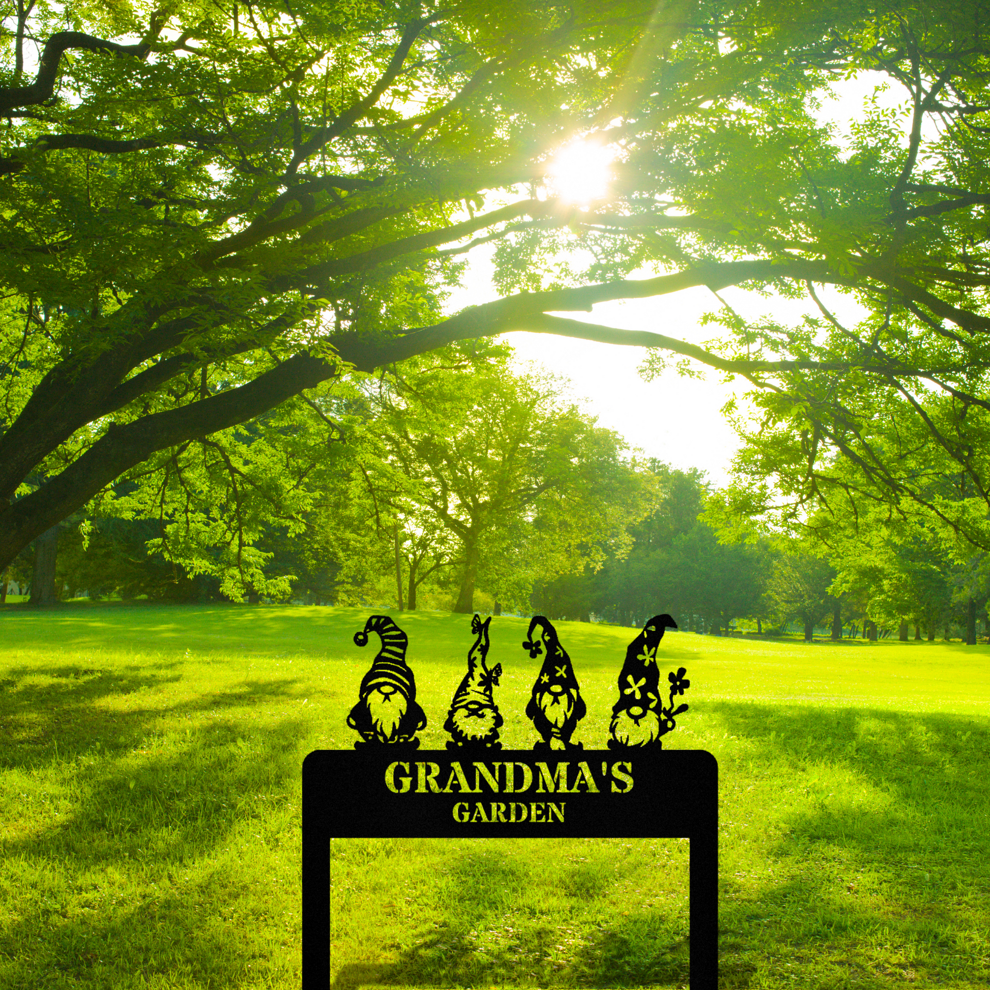 Gnome Metal Garden Stake, Garden Box Stake, Gnome Outdoor Decor, Grandma Gifts, Garden Lover Gift, Garden Metal Deor, Last Name Metal Stake