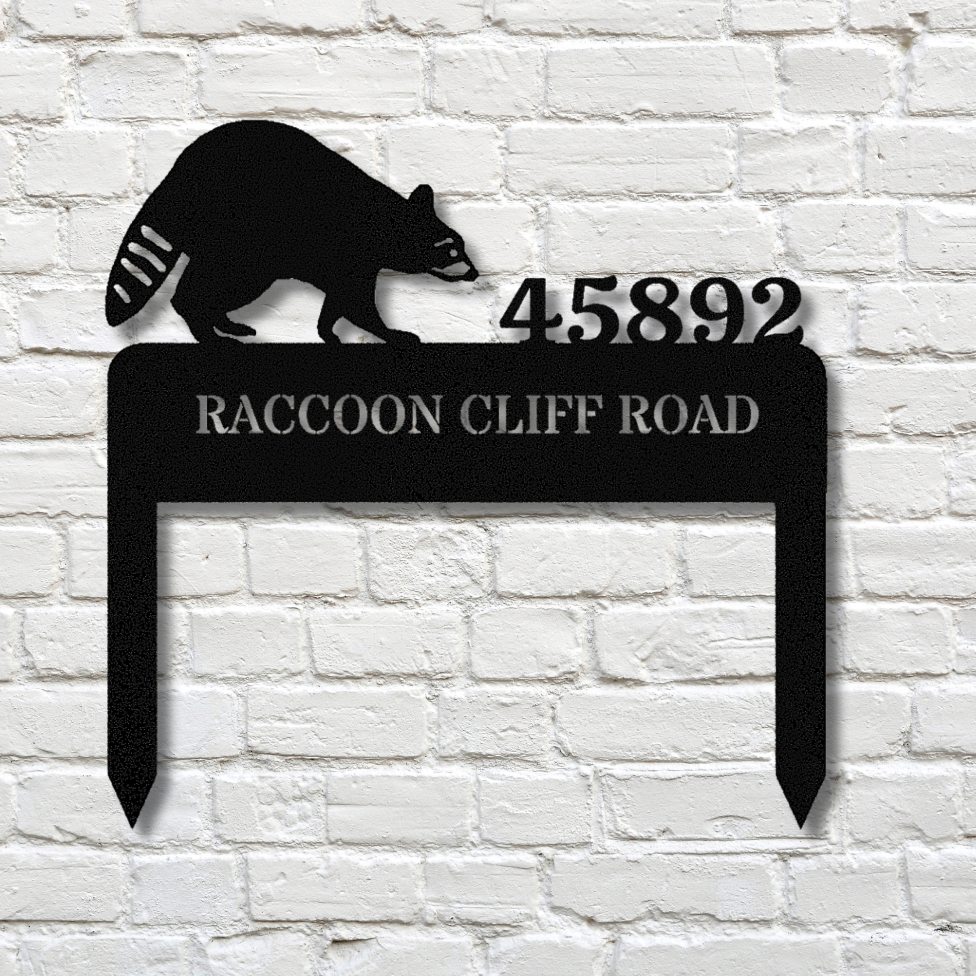 Raccoon Address Metal Stake, Address Plaque, Wildlife Address Stake, Housewarming Gift, House Closing Gift, Raccoon Lover Gift, Address Sign