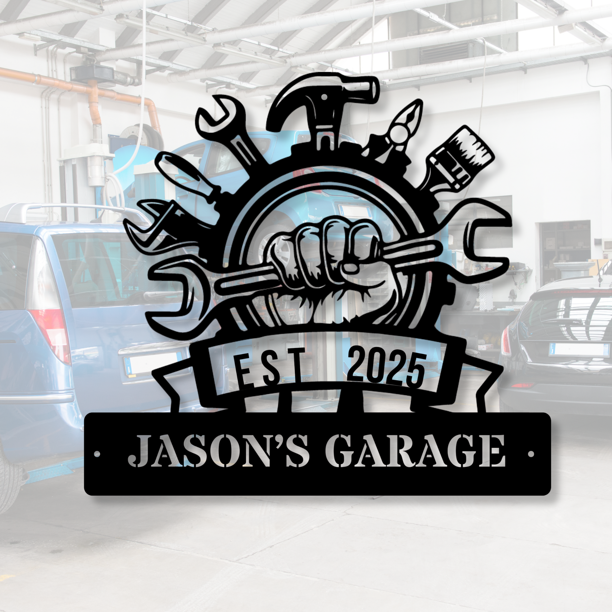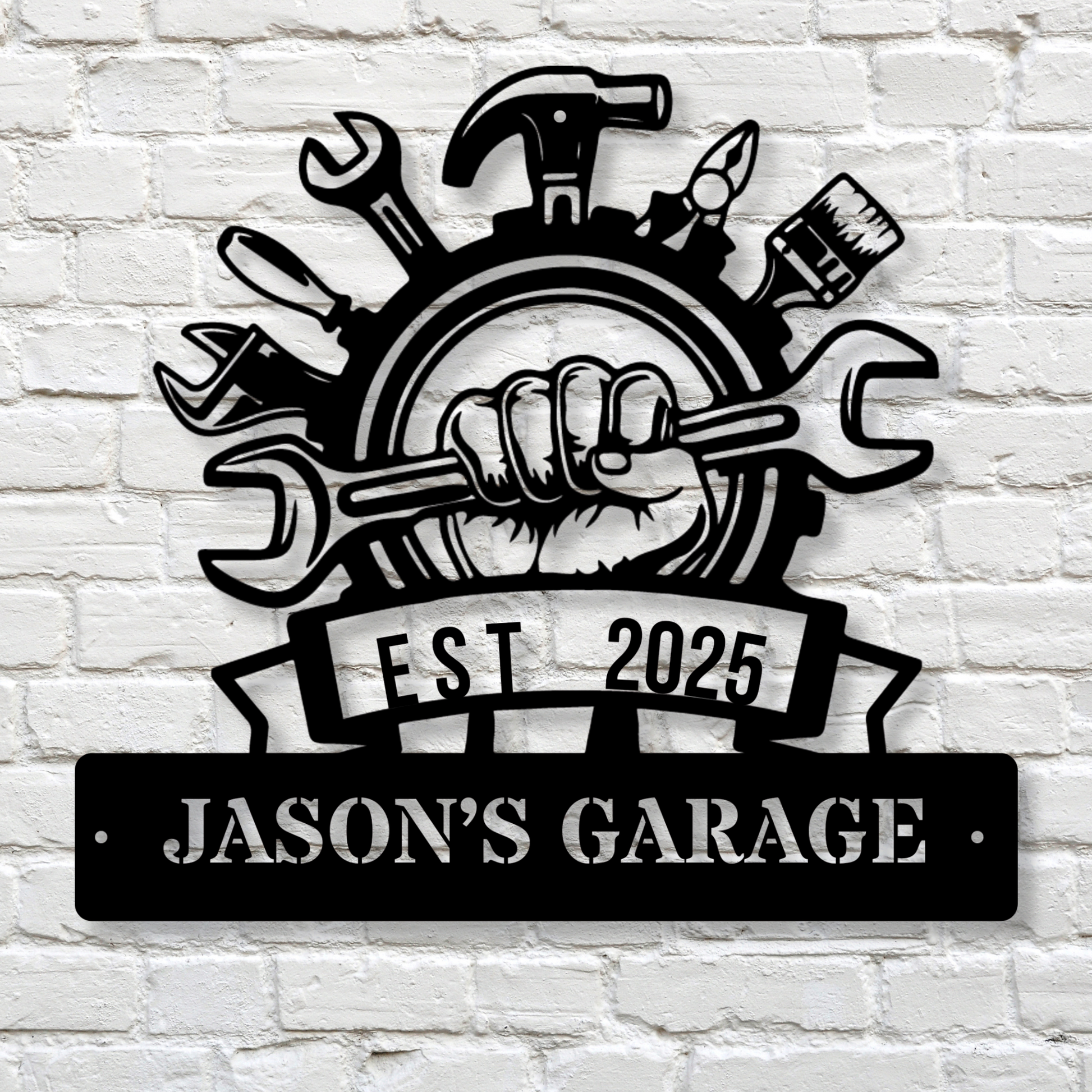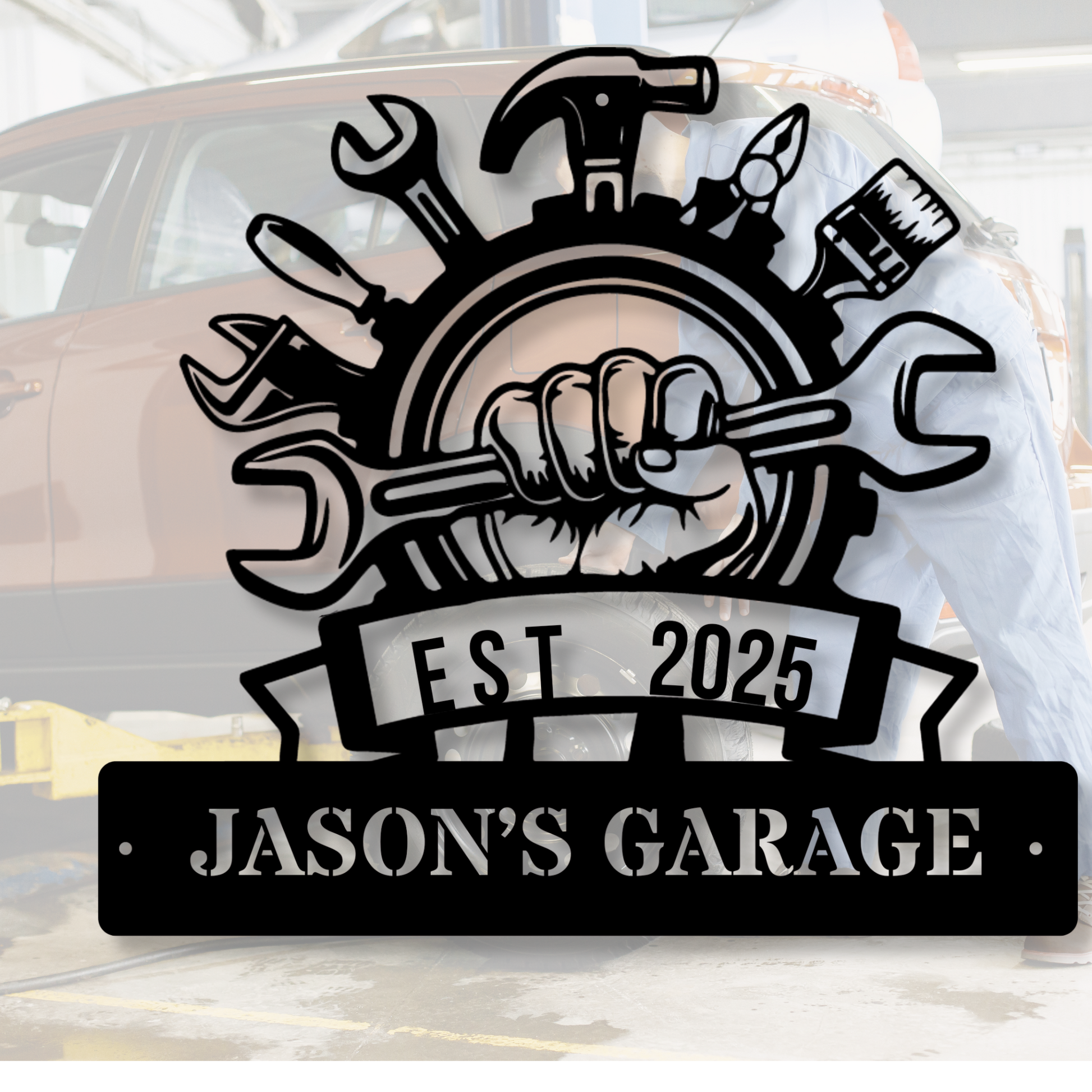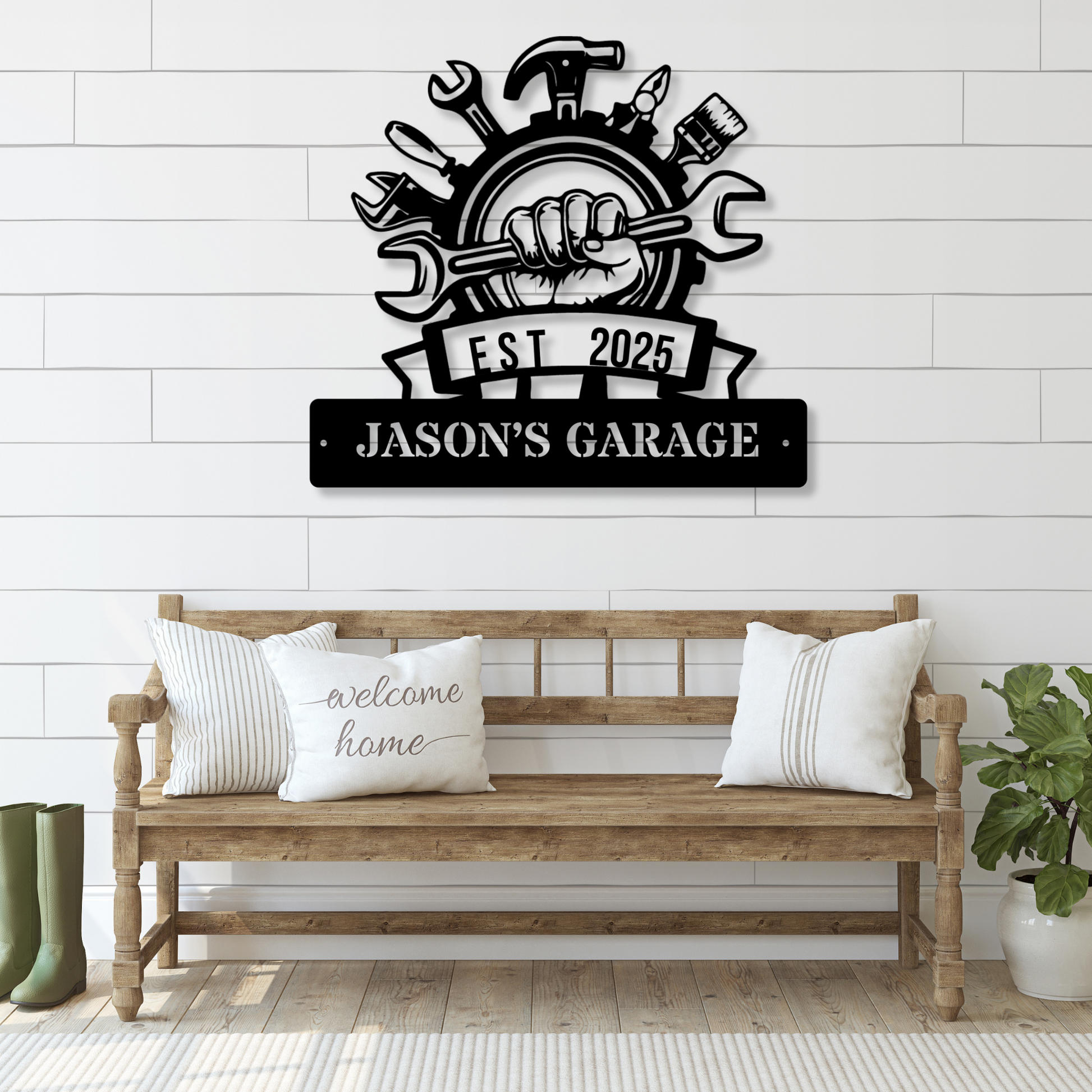 Custom Metal GARAGE Sign, Personalized Garage Decor, Workshop Wall Art, Man Cave Sign, Home Workshop Accessory