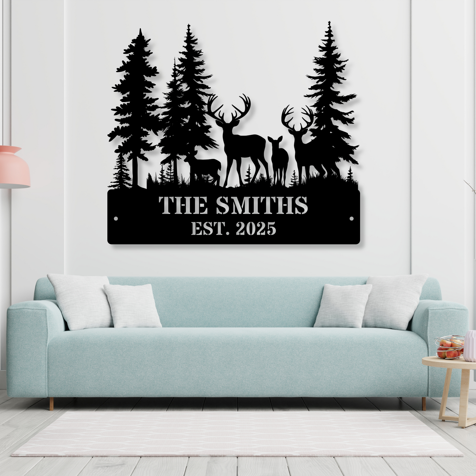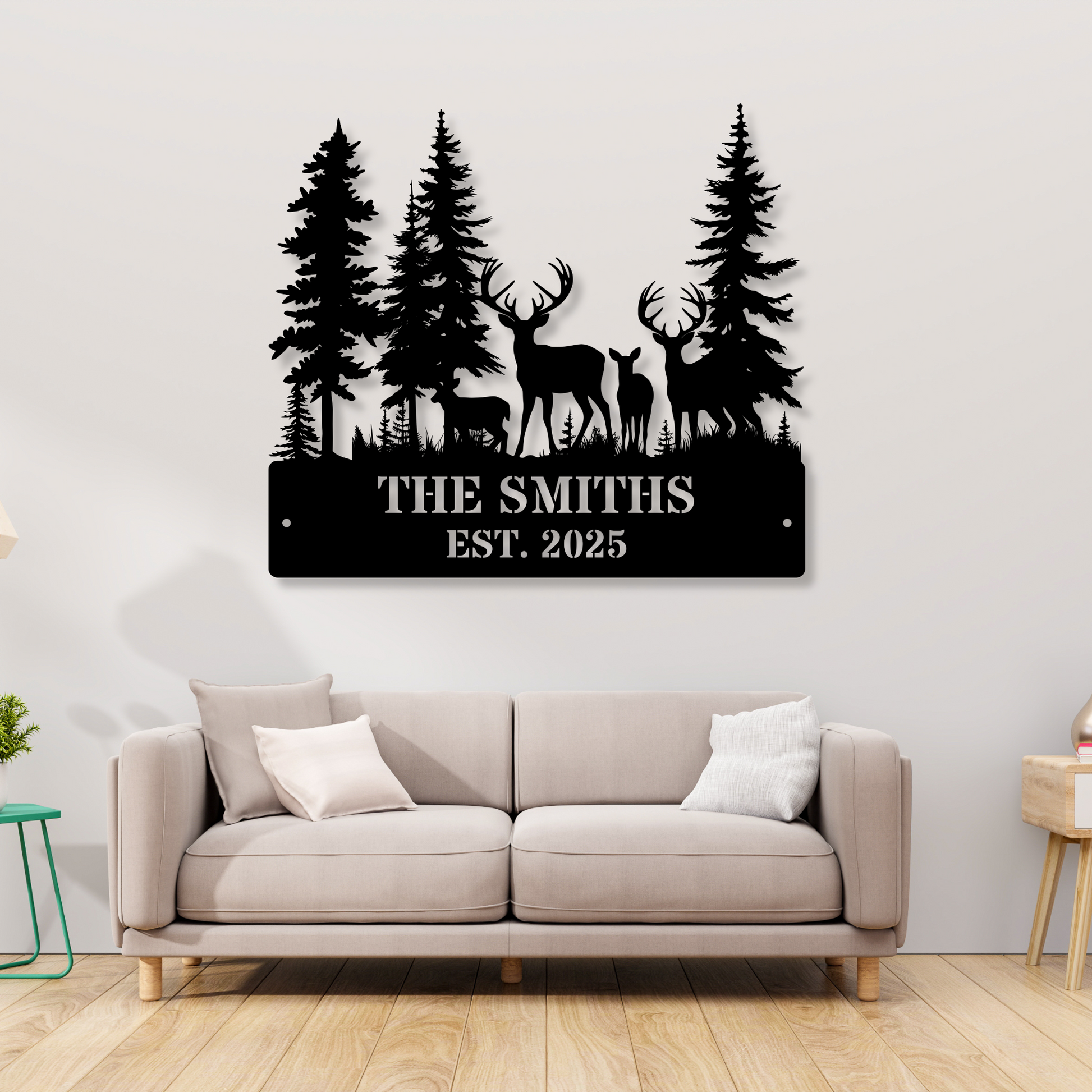 Custom Deer Forest Metal Sign, Personalized Deer Family Name Sign, Farmhouse Decor, Hunting Lodge Decor, Rustic Wildlife Art
