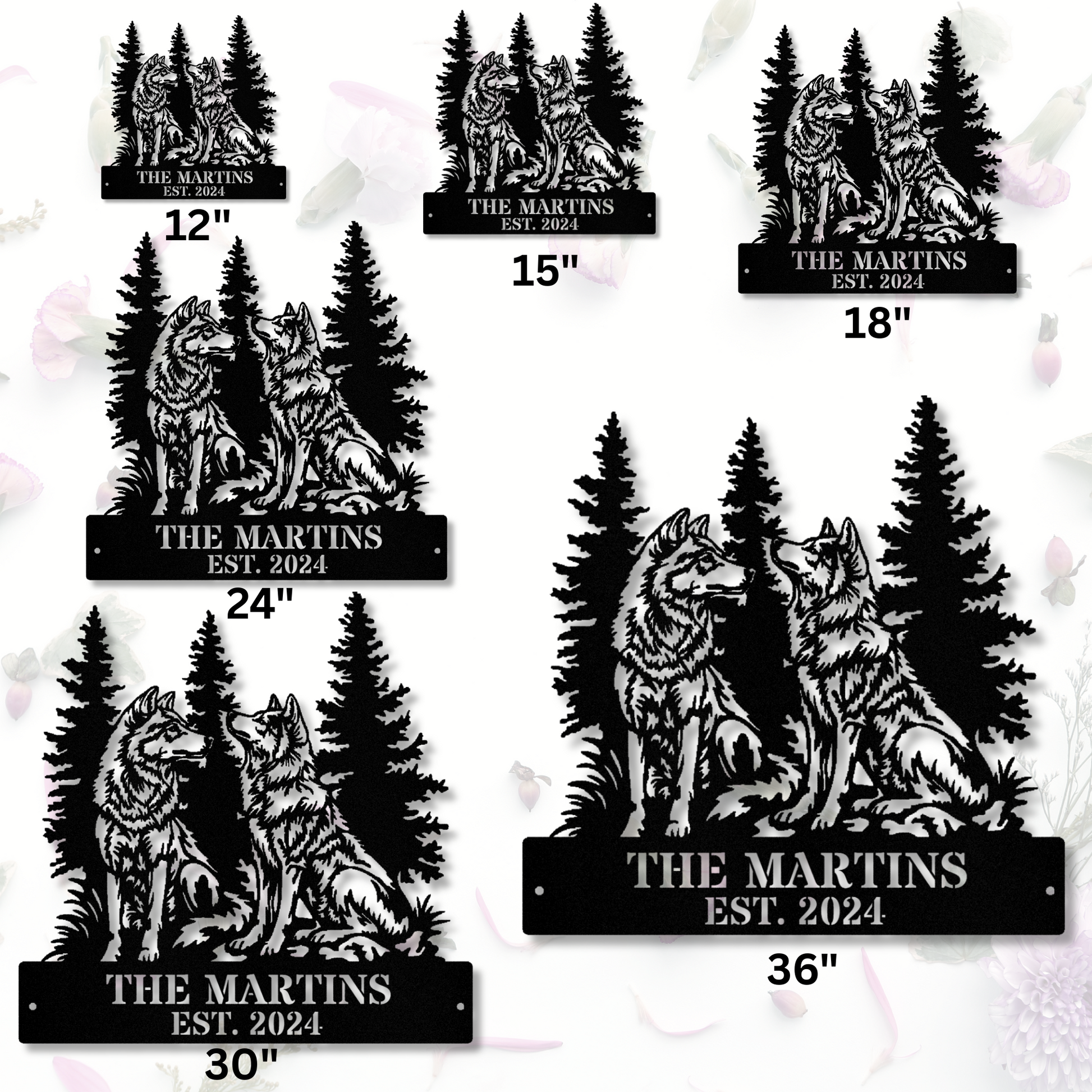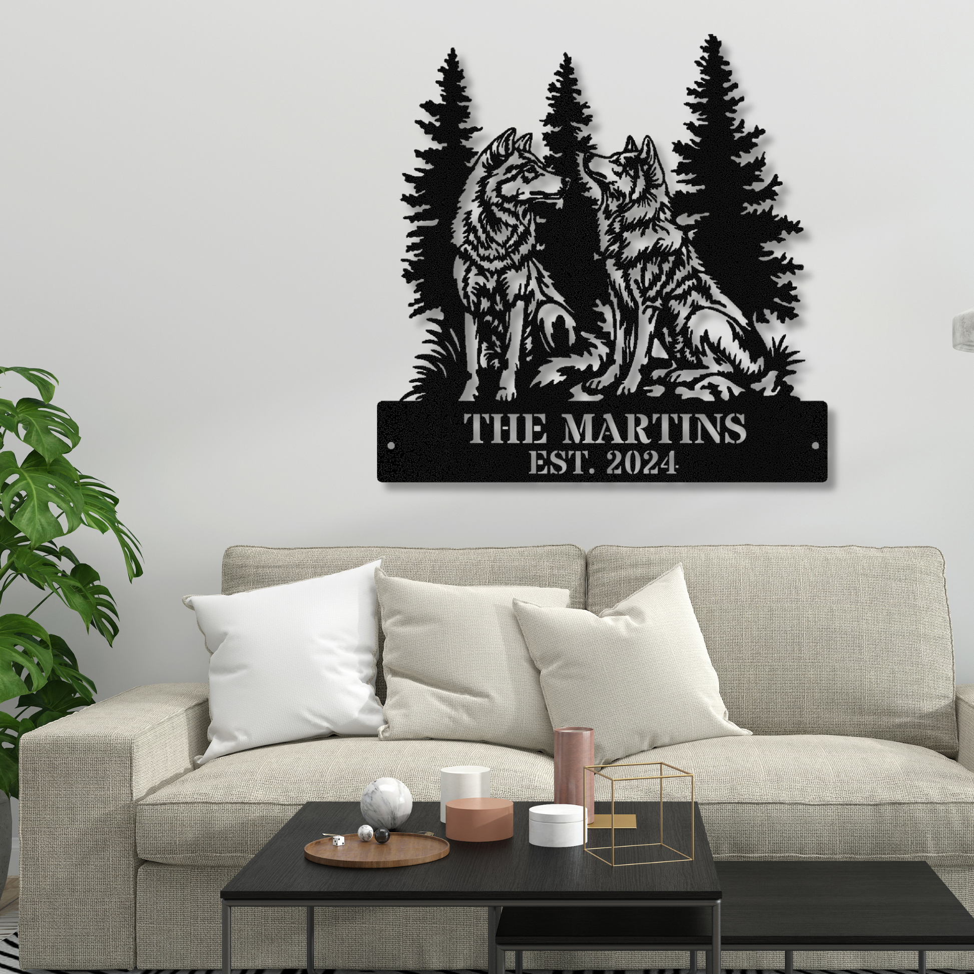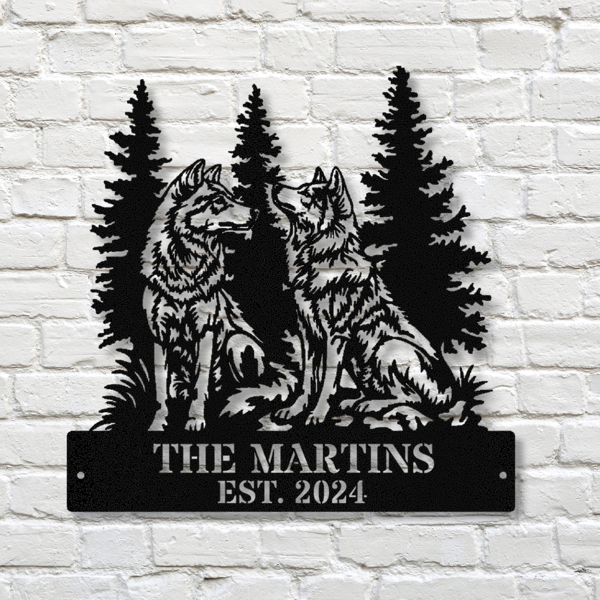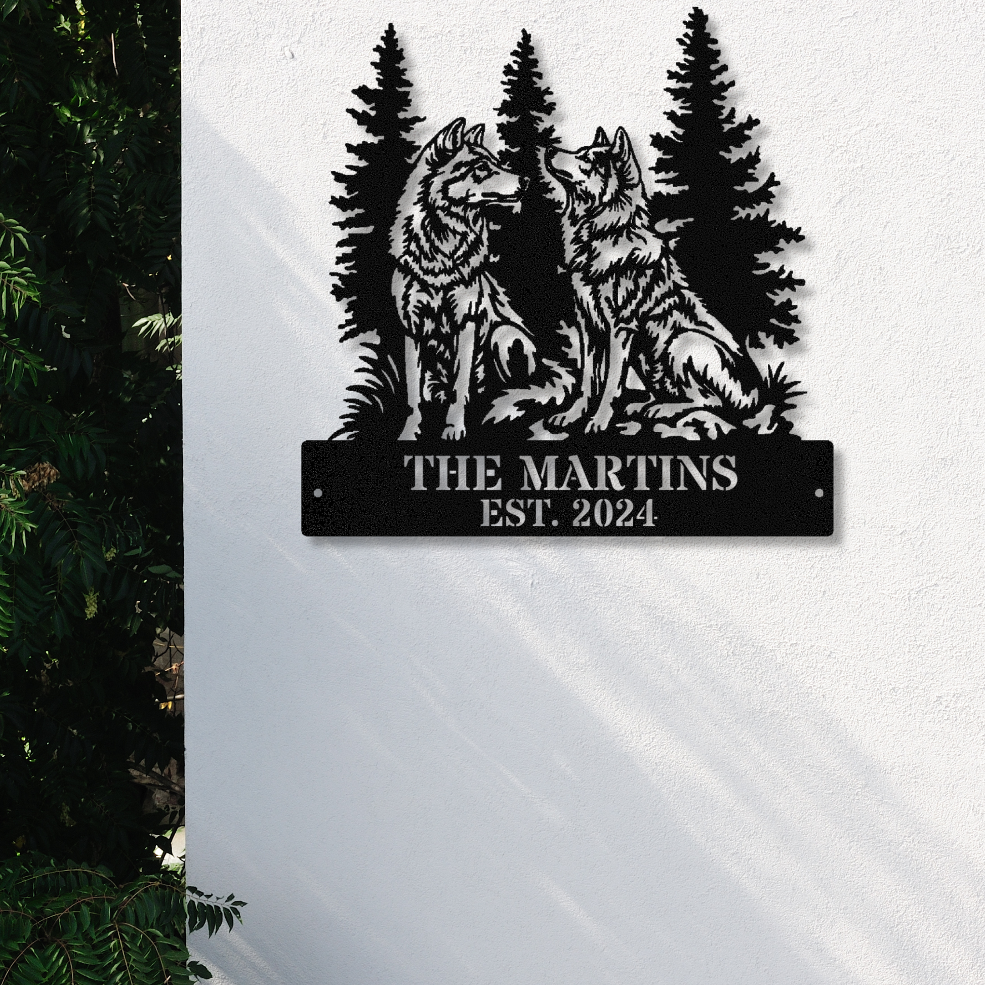 Wolf Howling Metal Ranch Sign, Wolf In Woods Cabin Sign,Family Name Black Wolf Sign,Metal Wolf Sign Dad Gift,