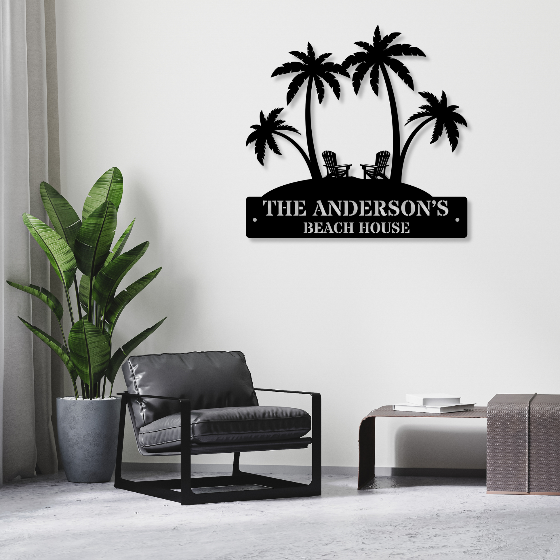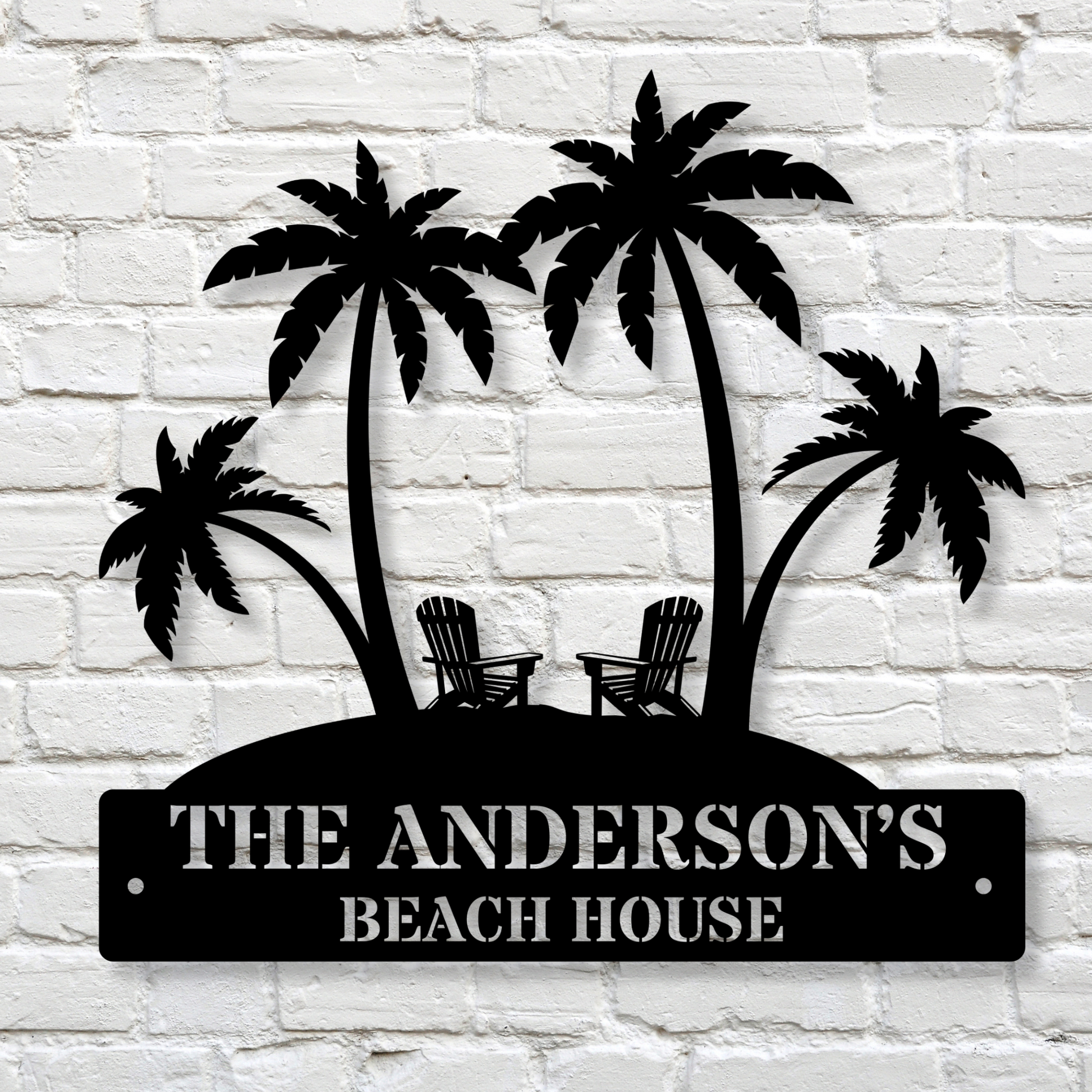 Custom Beach Palm Tree Sign,Metal Beach House Sign,Personalized Name Beach Sign