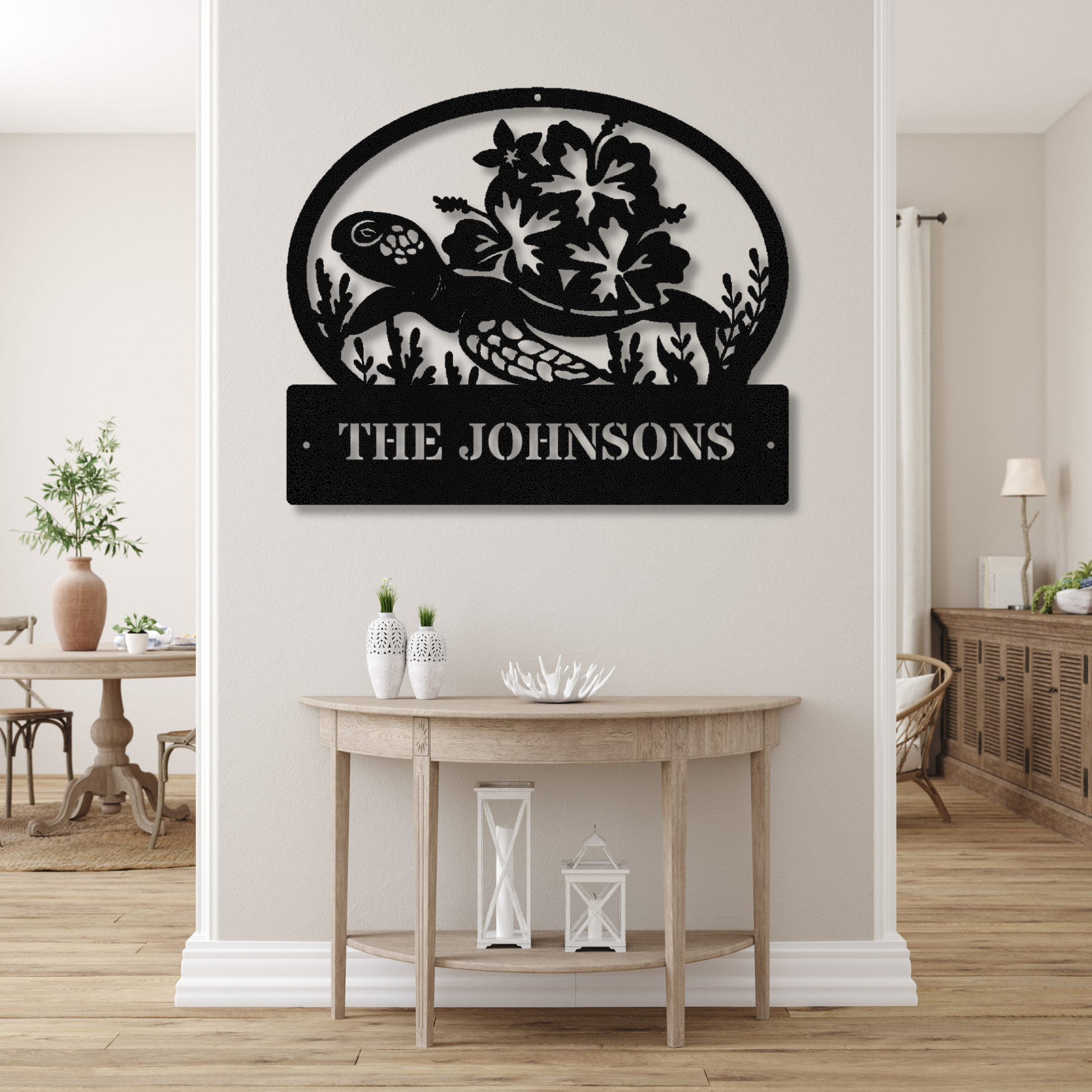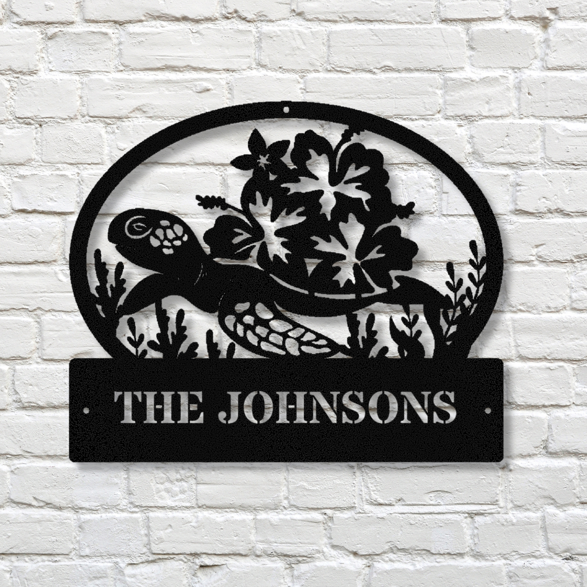 Customized Turtle Metal Wall Decor, Pool Metal Sign, Aloha Wall Art, Beach House Decor, Last Name Family Name Wall Sign, Lake House Sign