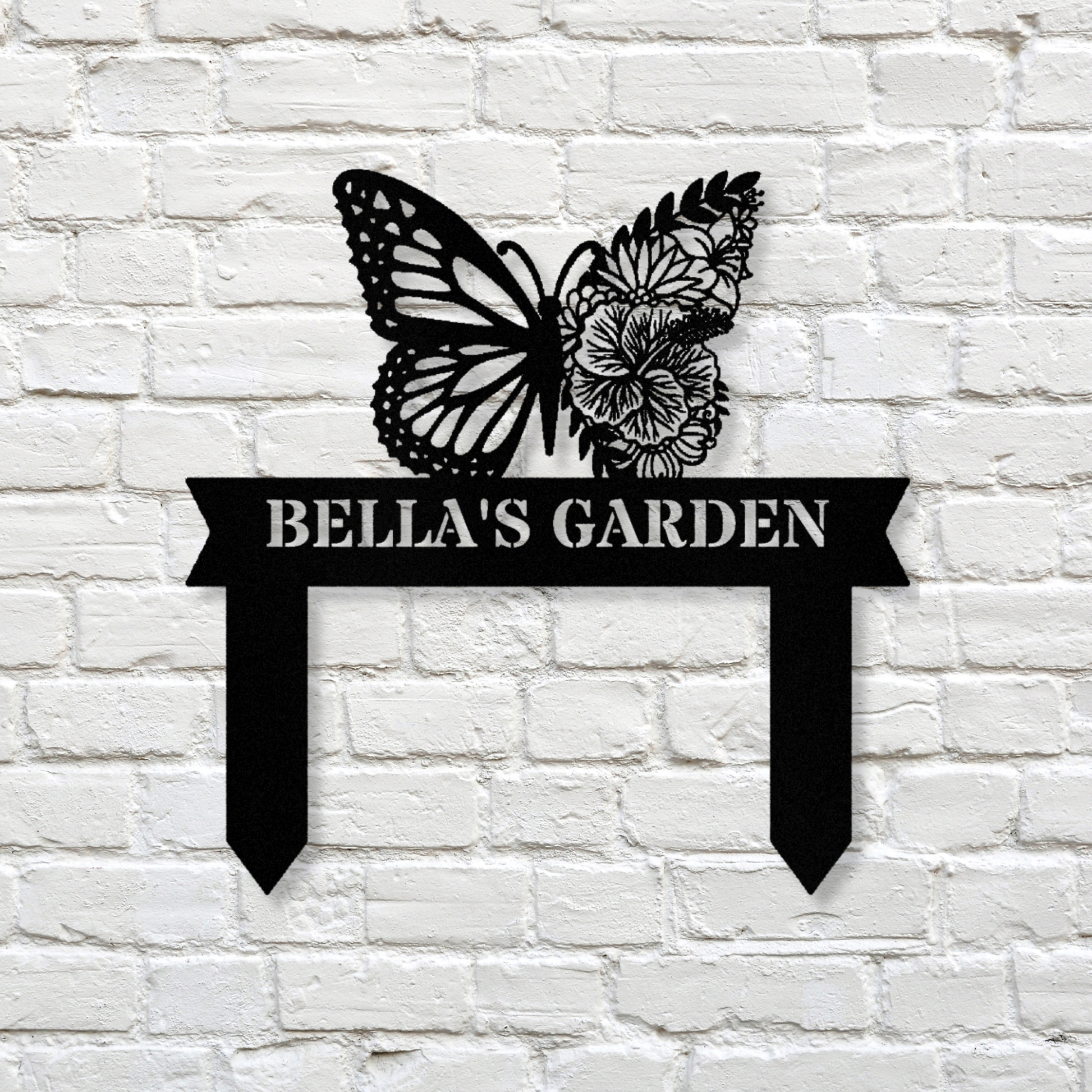 Butterfly Flower Garden Metal Stake Sign, Large Garden Stake Sign, Garden Decor Stake Sign