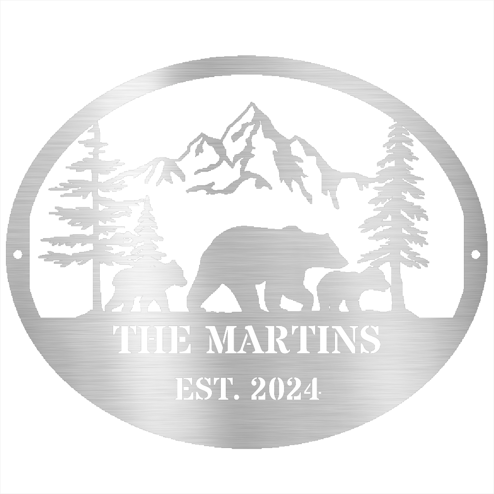 Customized Bear Cubs Mountain Sign, Cabin Wall Decor, Bear Lover Sign, Established Metal Sign, Family Name Sign