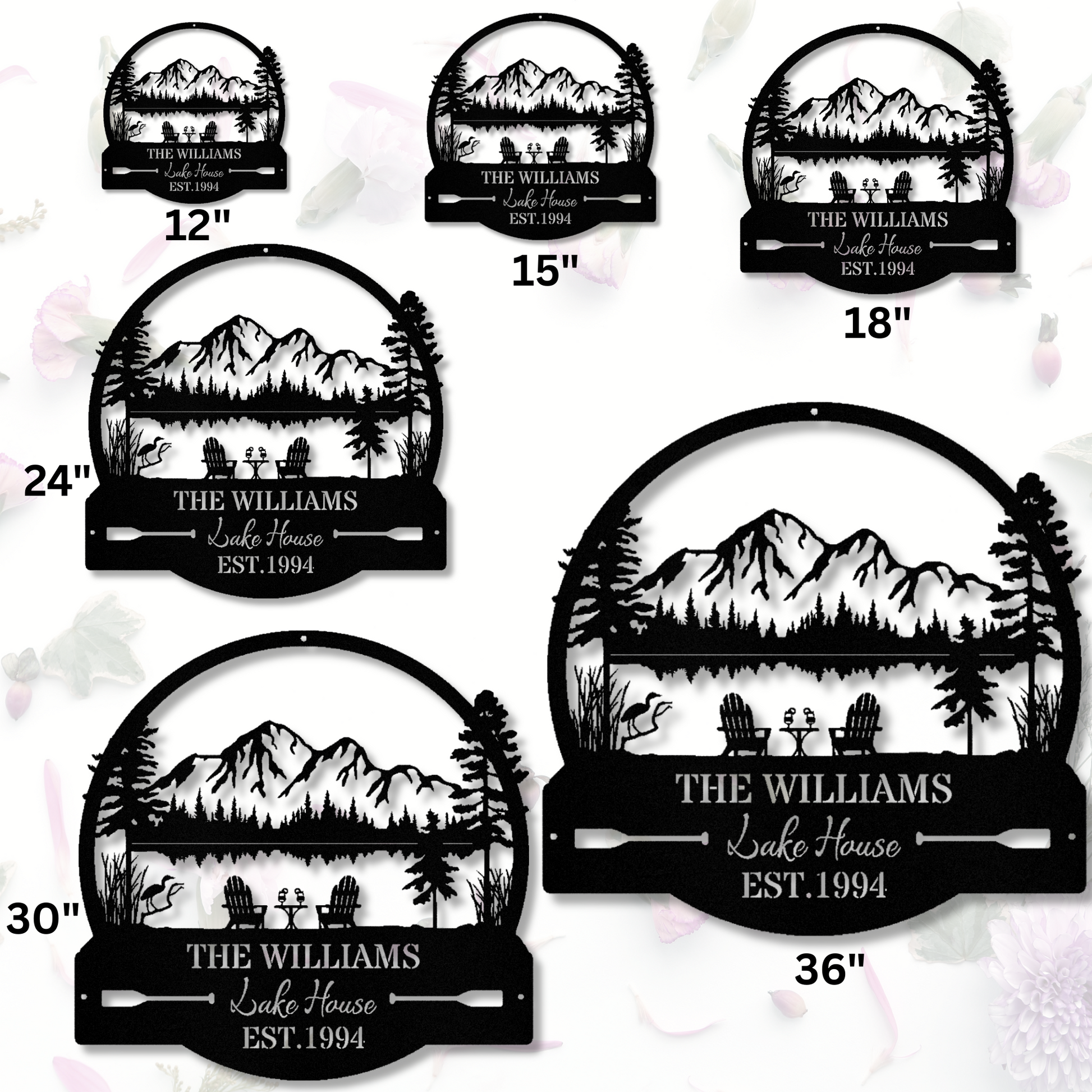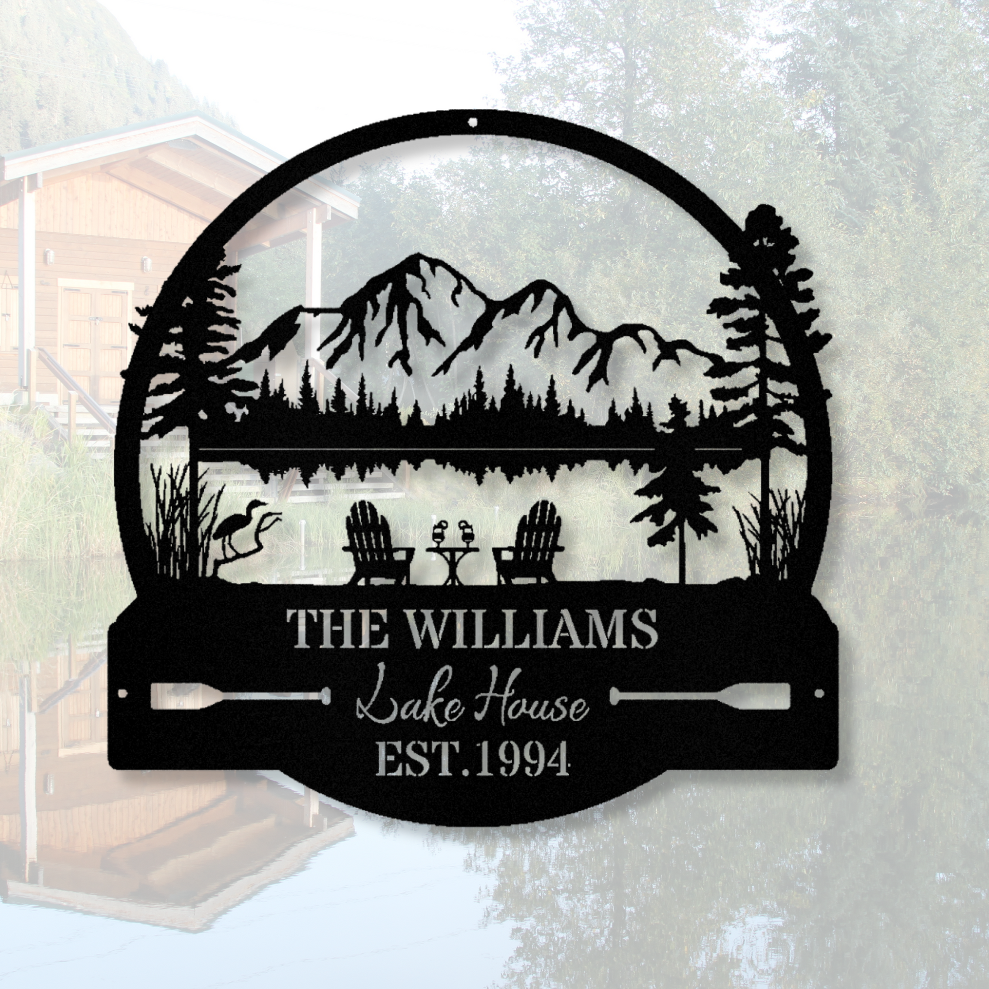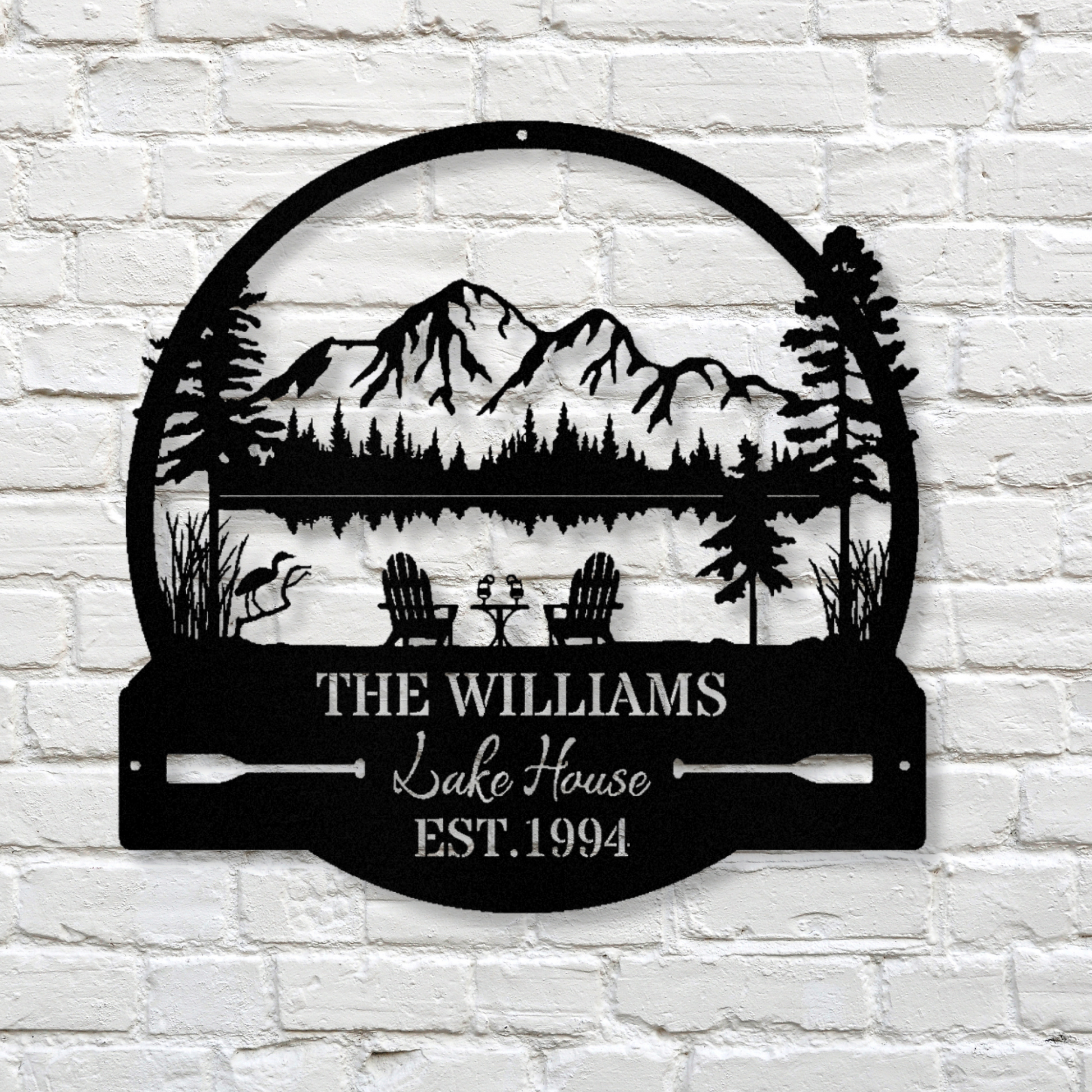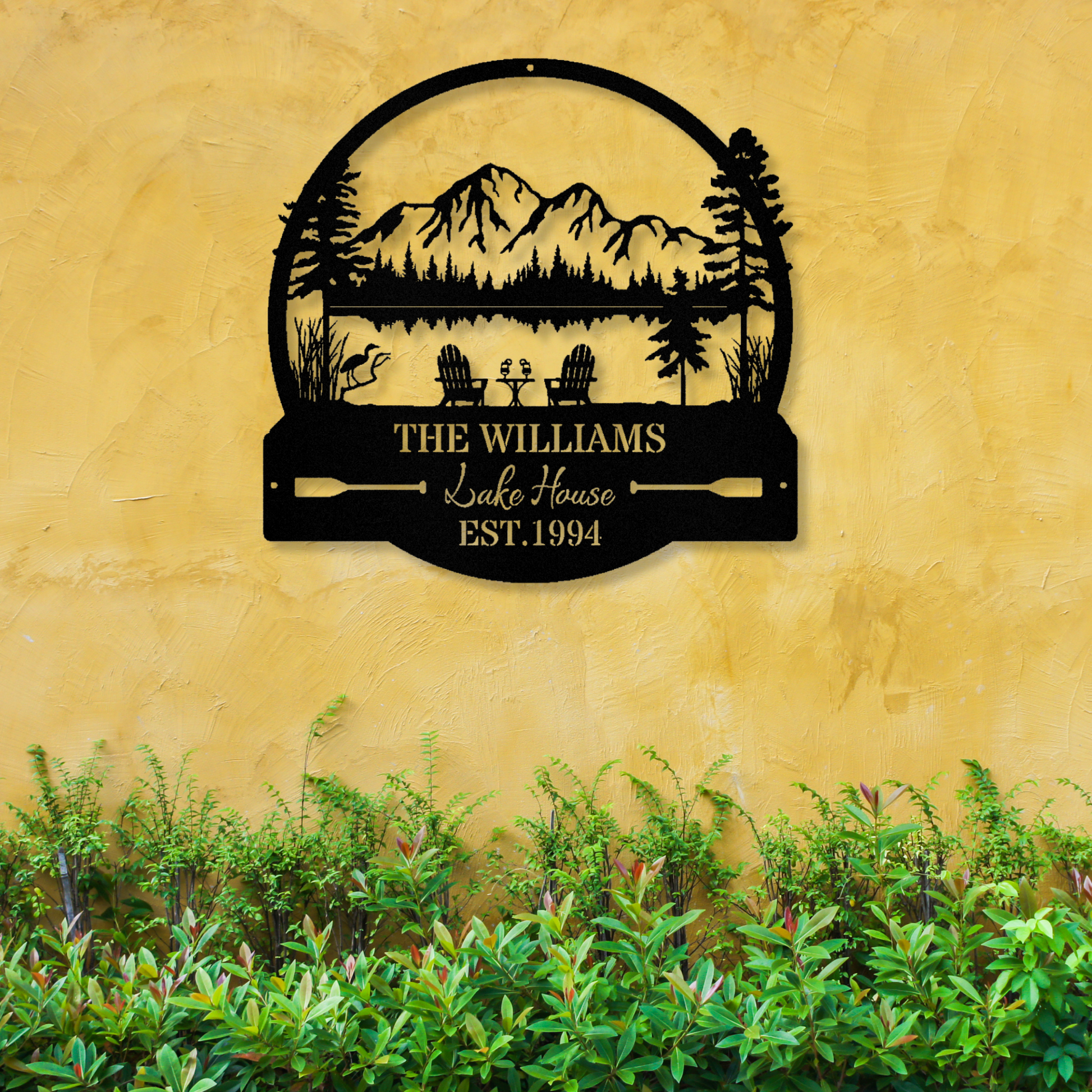 Lake House Wall Metal Sign, Farmhouse Gift, Mountain House Sign, Family Name Sign, Campsite Decor, Cabin Wall Decor, Address Sign, Est. Sign