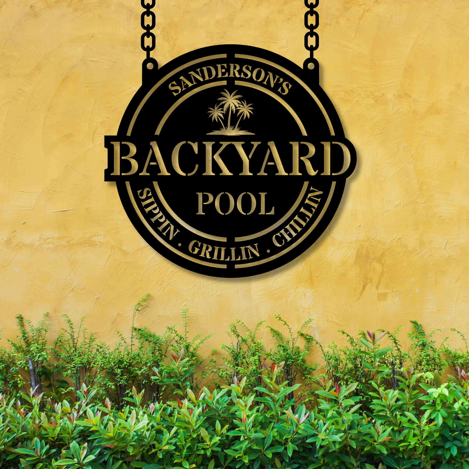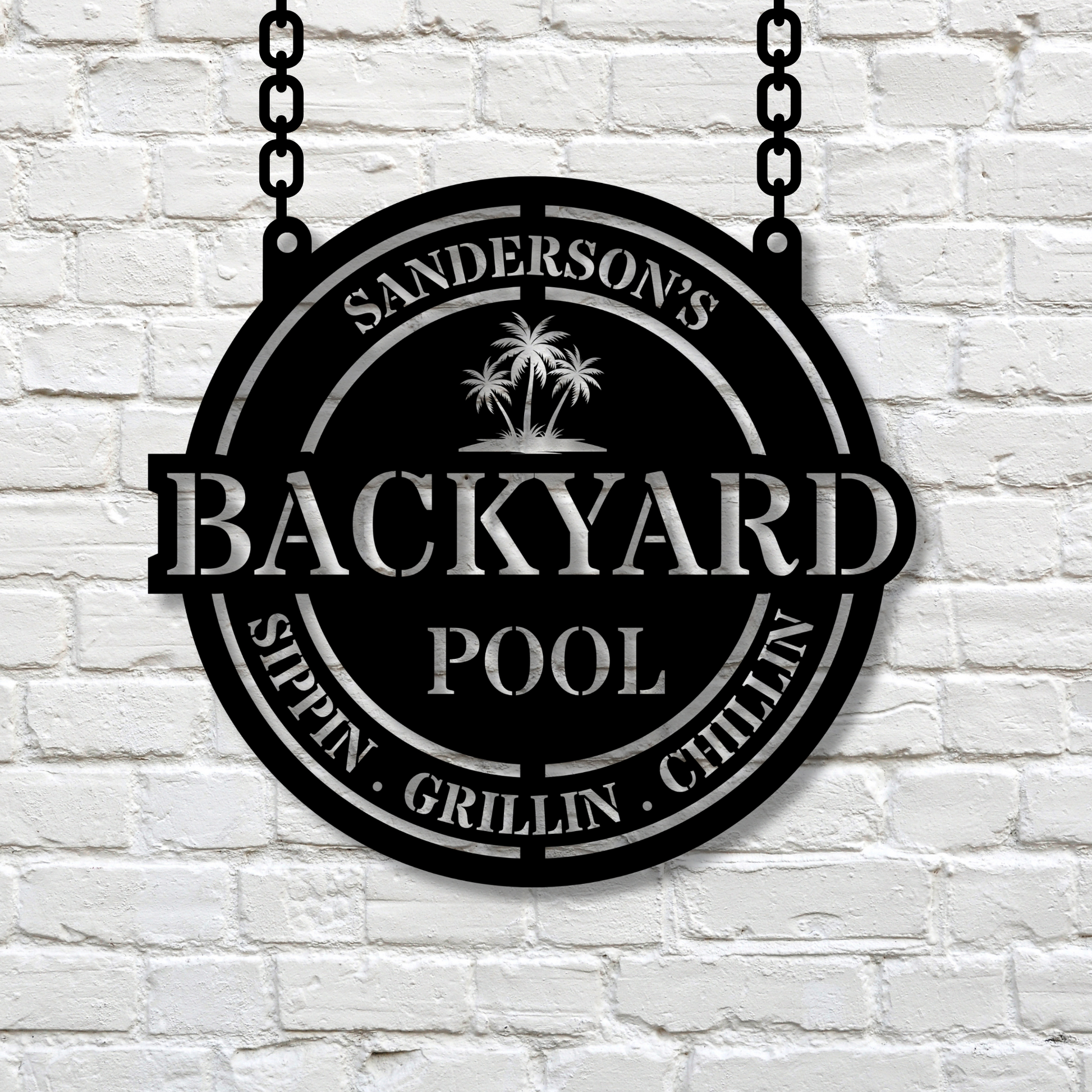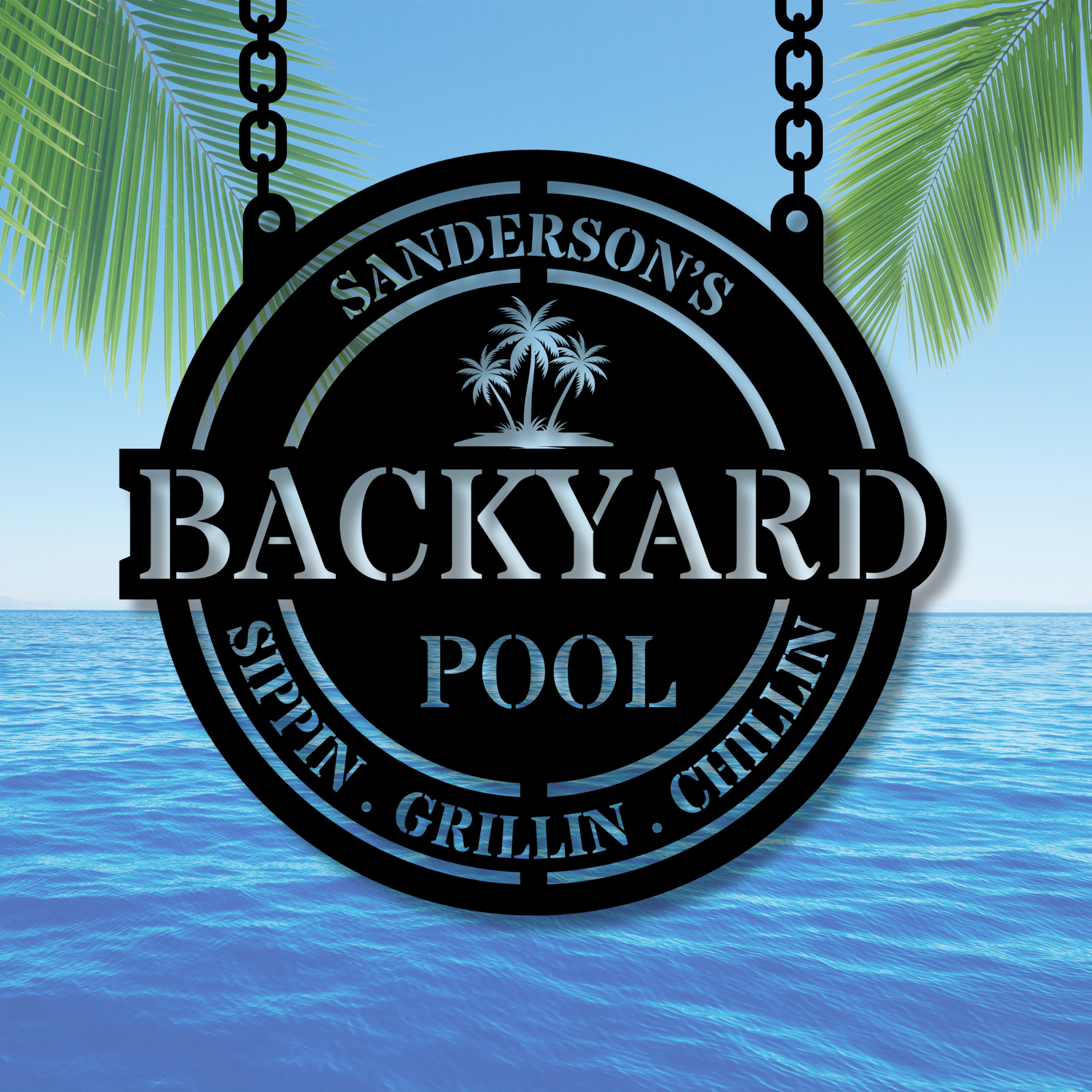 Personalized Pool Metal Sign, Outdoor Pool Decor, Custom Backyard Bar Sign, Poolside Oasis Metal Sign, Backyard Oasis Decor