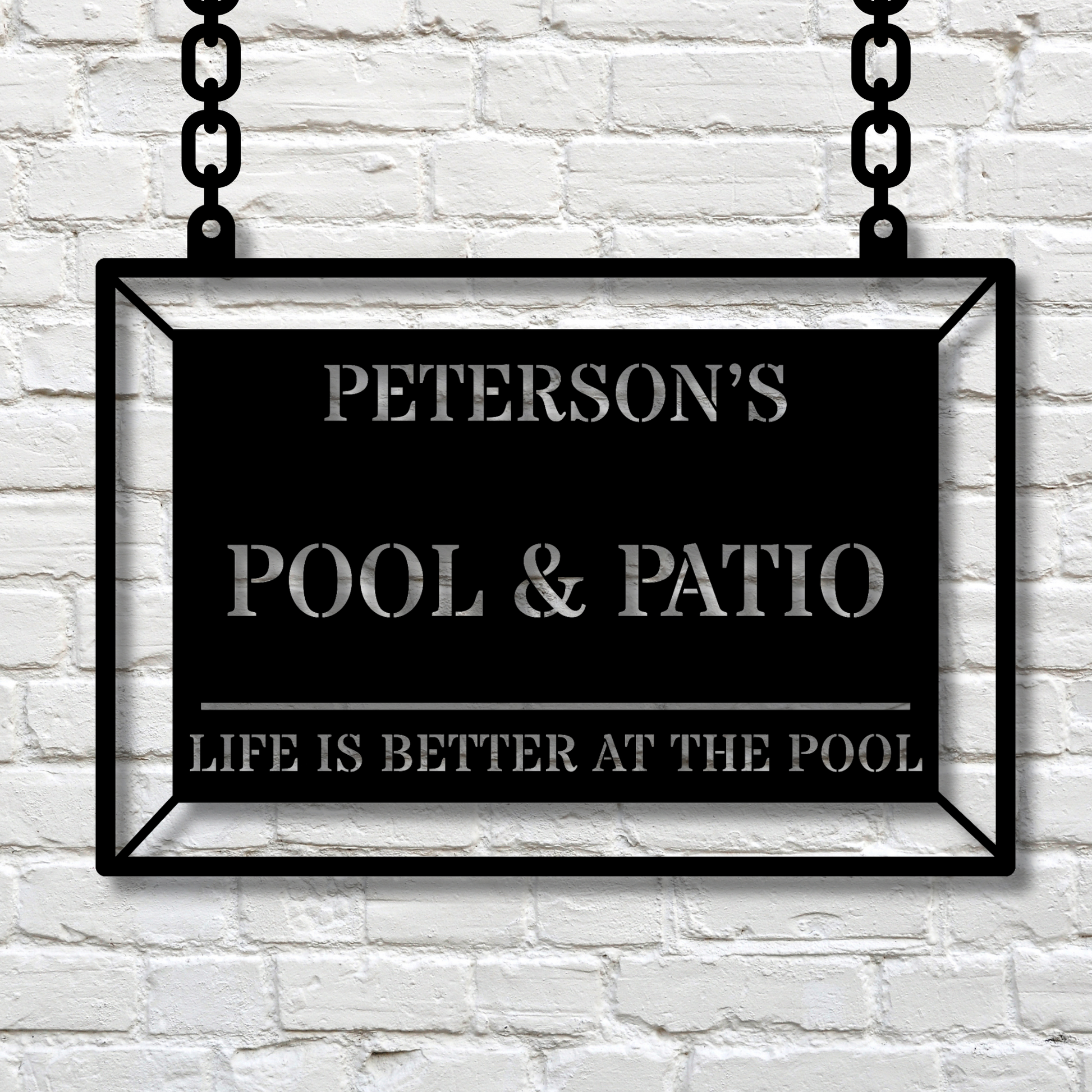 Custom Palm Tree Pool Sign, Personalized Tropical Metal Art, Large Patio Decor, Outdoor Wall Art for Poolside, Gift for Both