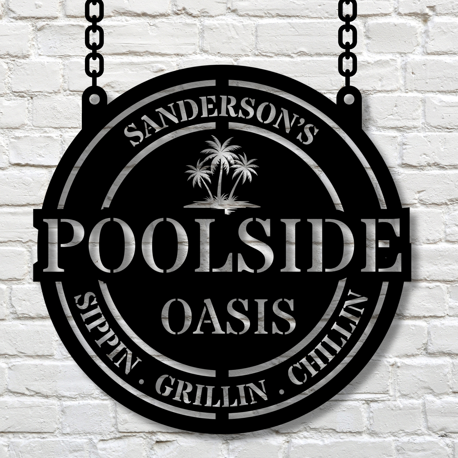 Personalized Poolside Oasis Metal Sign, Outdoor Decor, Pool Signs for Outdoor, Custom Backyard Bar And Grill Sign Decor Poolside Oasis Sign
