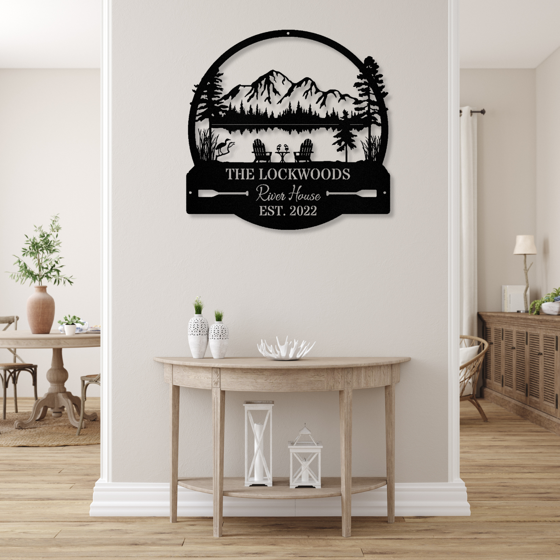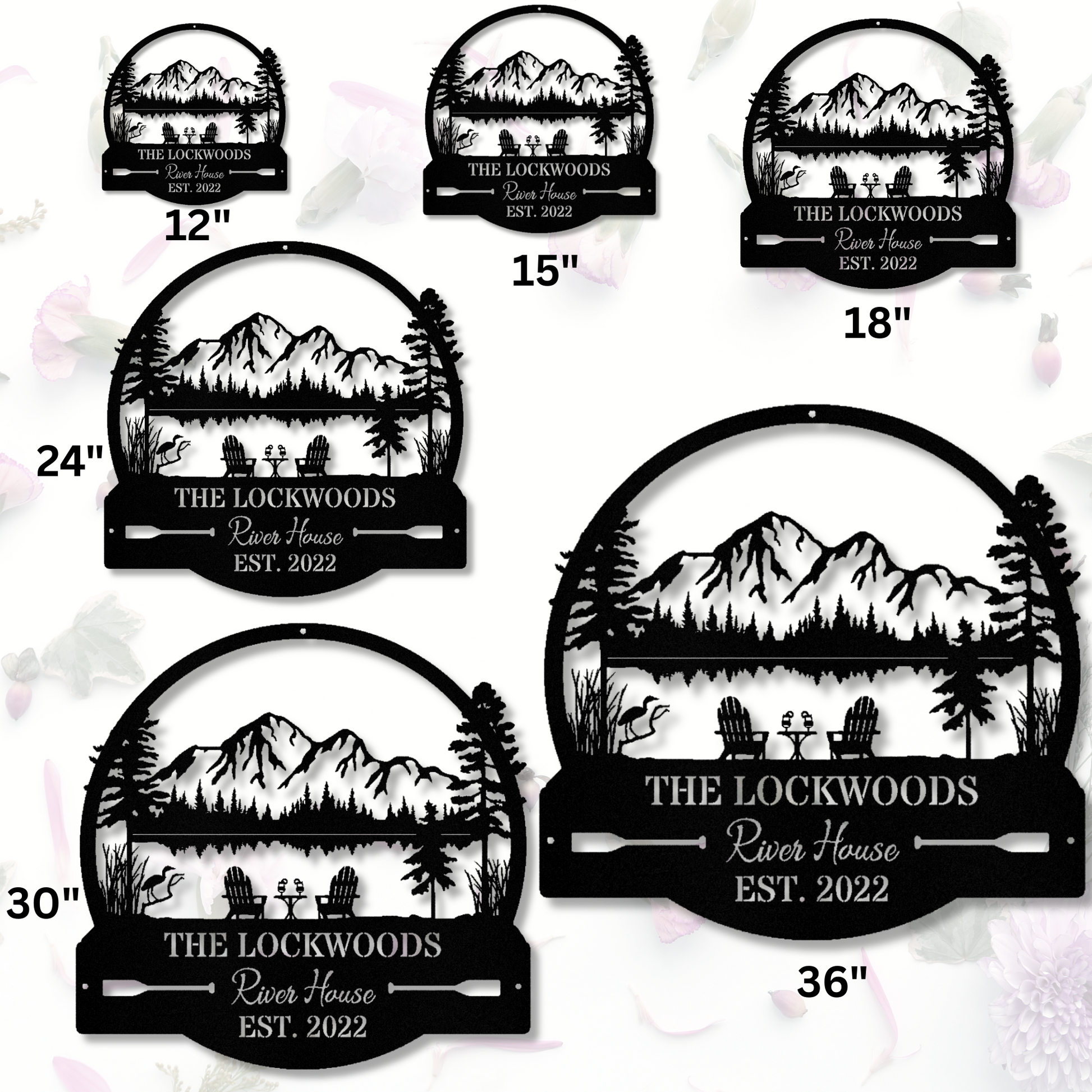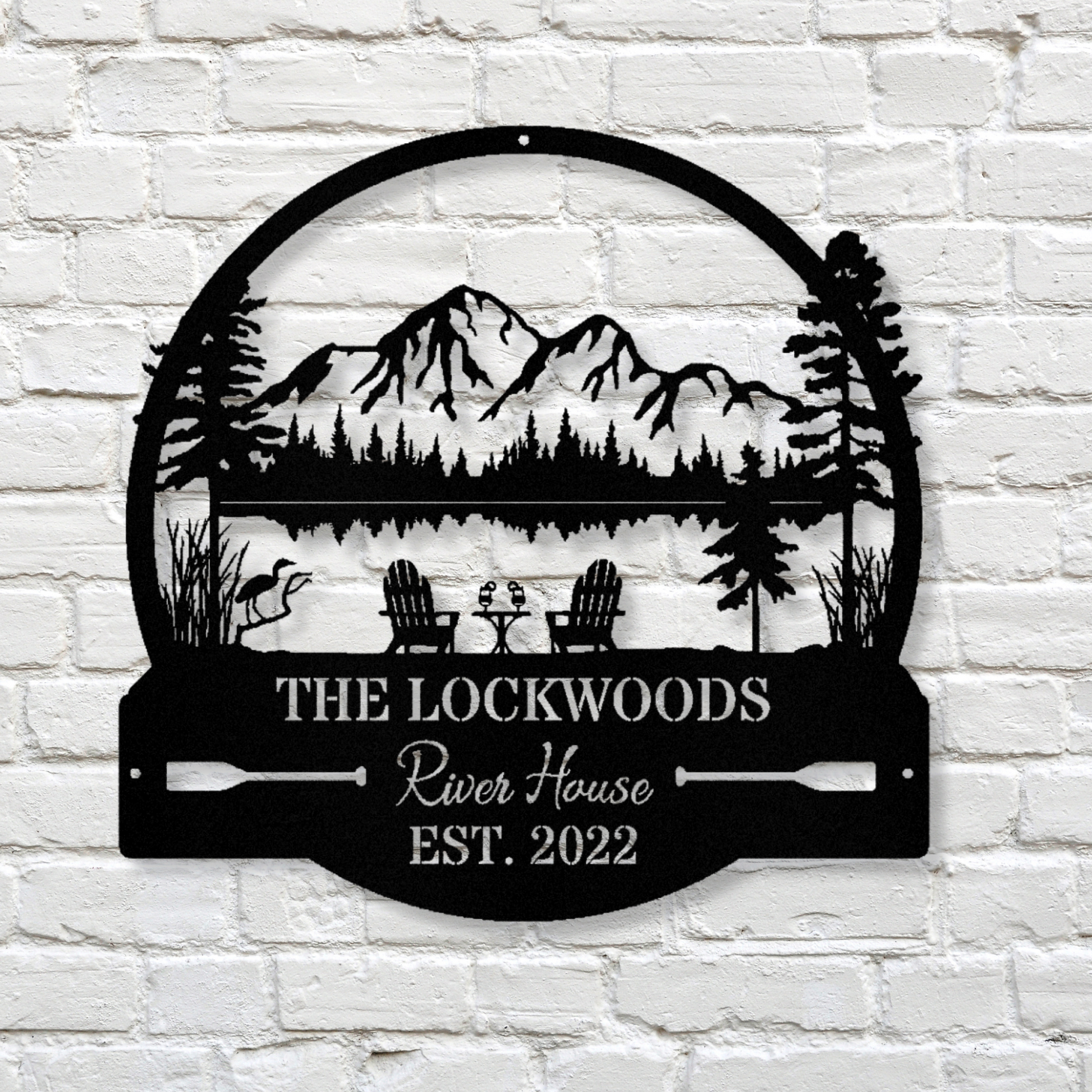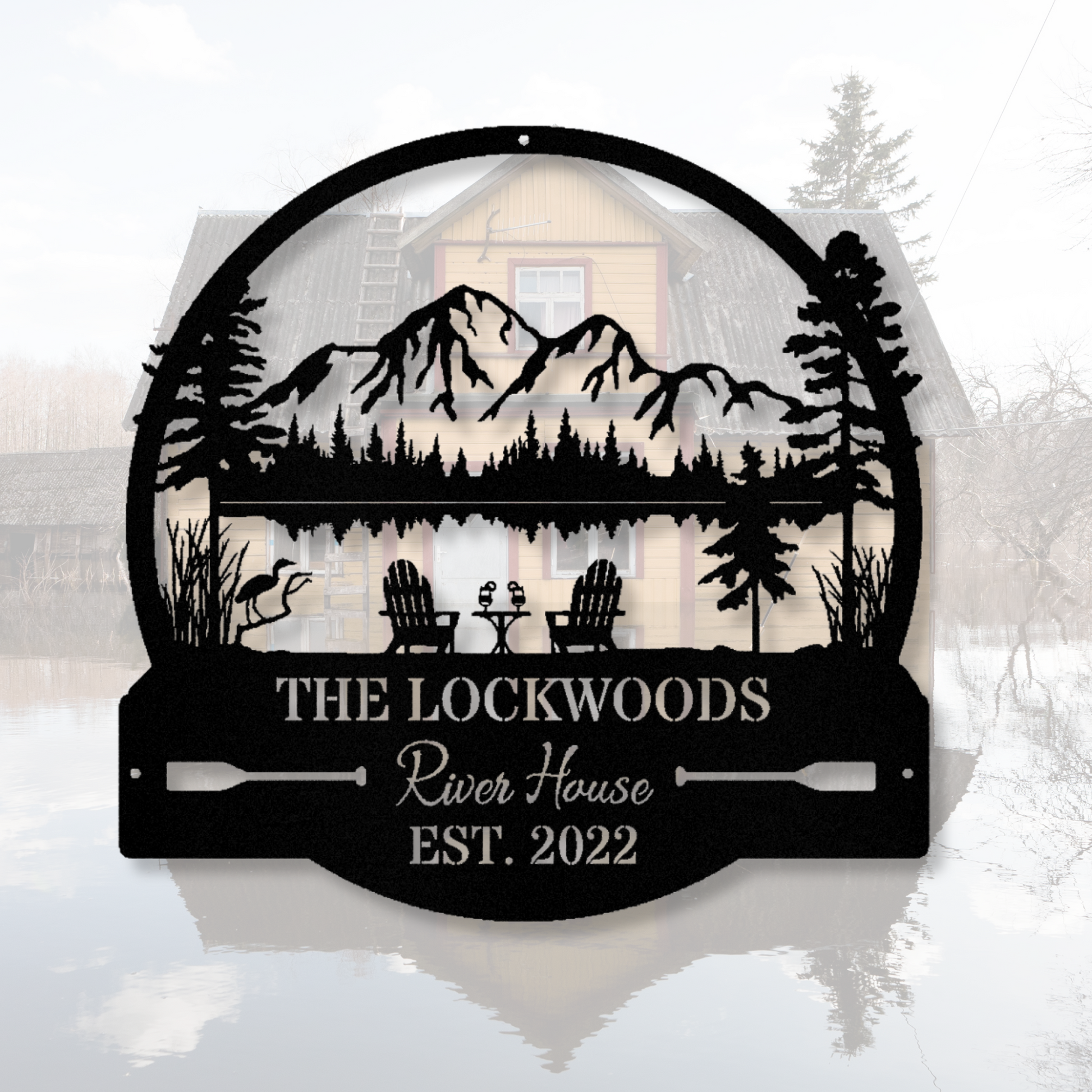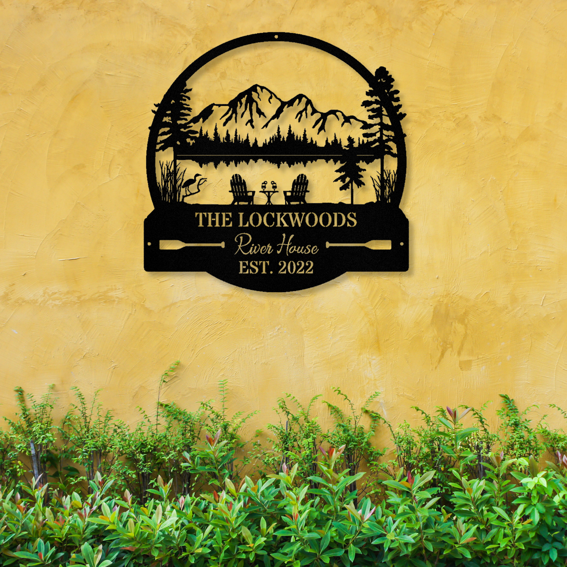 River House Cabin Wall Metal Sign, Farmhouse Metal Sign, Mountain House Sign, Family Name Sign, Pine Tree Custom Metal Sign, Grandpa Gift,
