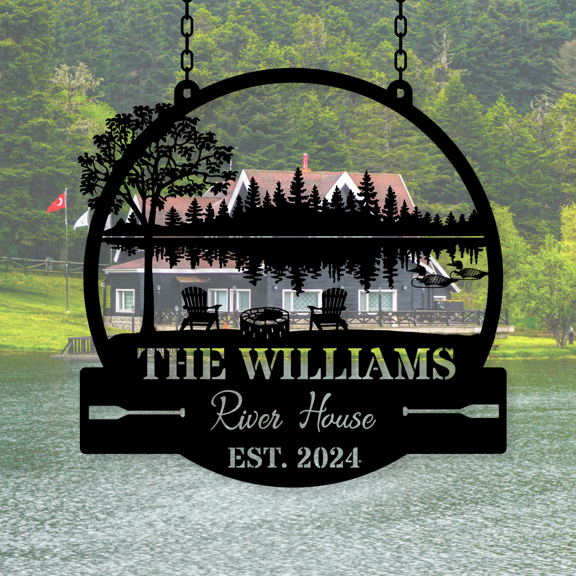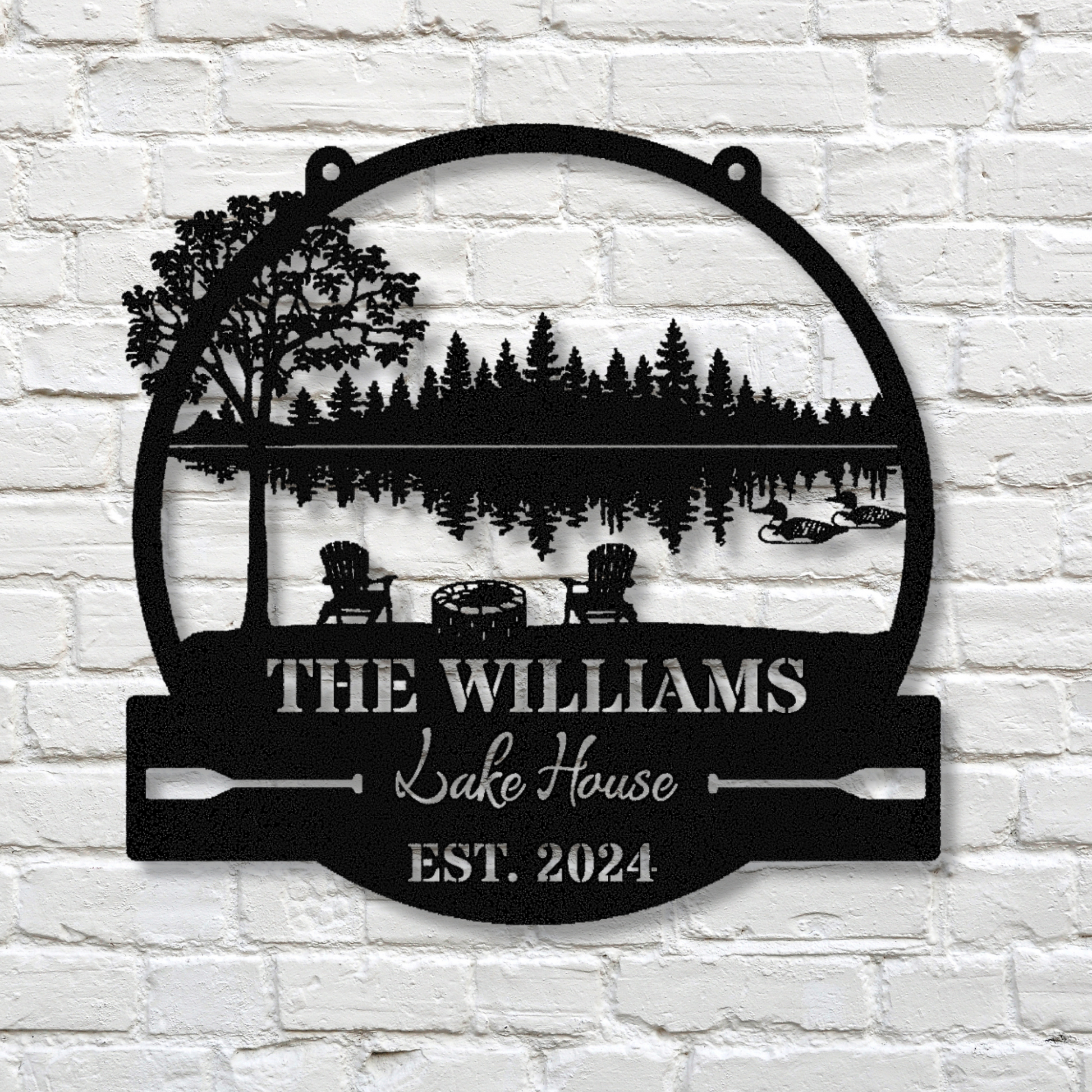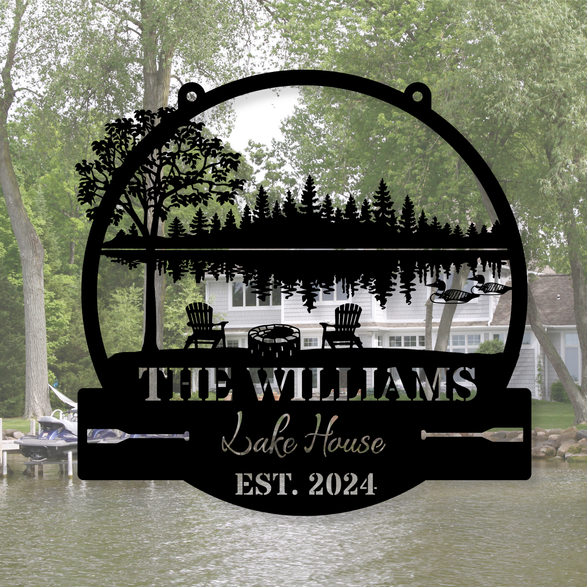 Personalized Established Lake House Metal Sign, Loon Themed Lake or River House Sign, Last Name Sign, Lake Cabin Metal Sign, Large Hanging Sign