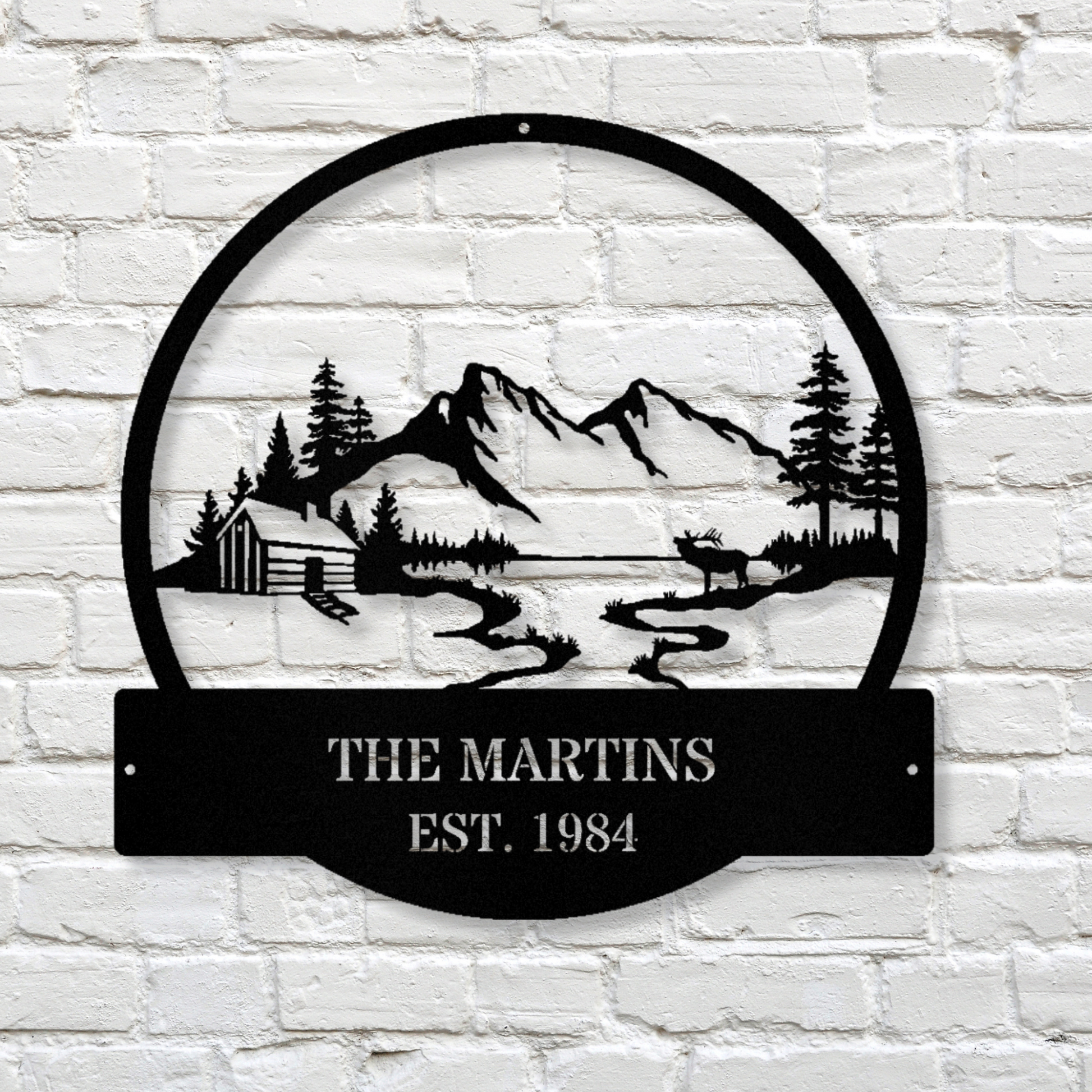 Custom Cabin Metal Art Sign, Farmhouse Gift, Mountain House Sign, Family Name Sign, Lake House Sign, Address Sign, Indoor Outdoor Hanging