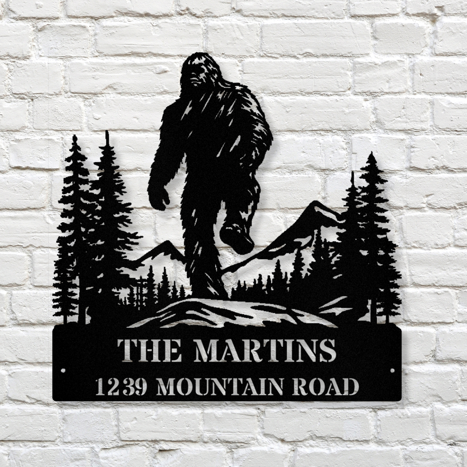 Personalized Bigfoot Metal Sign, Bigfoot Address Sign, Established Sign, Residence Sign, House Number sign, Last Name Sign, Cabin Metal Sign