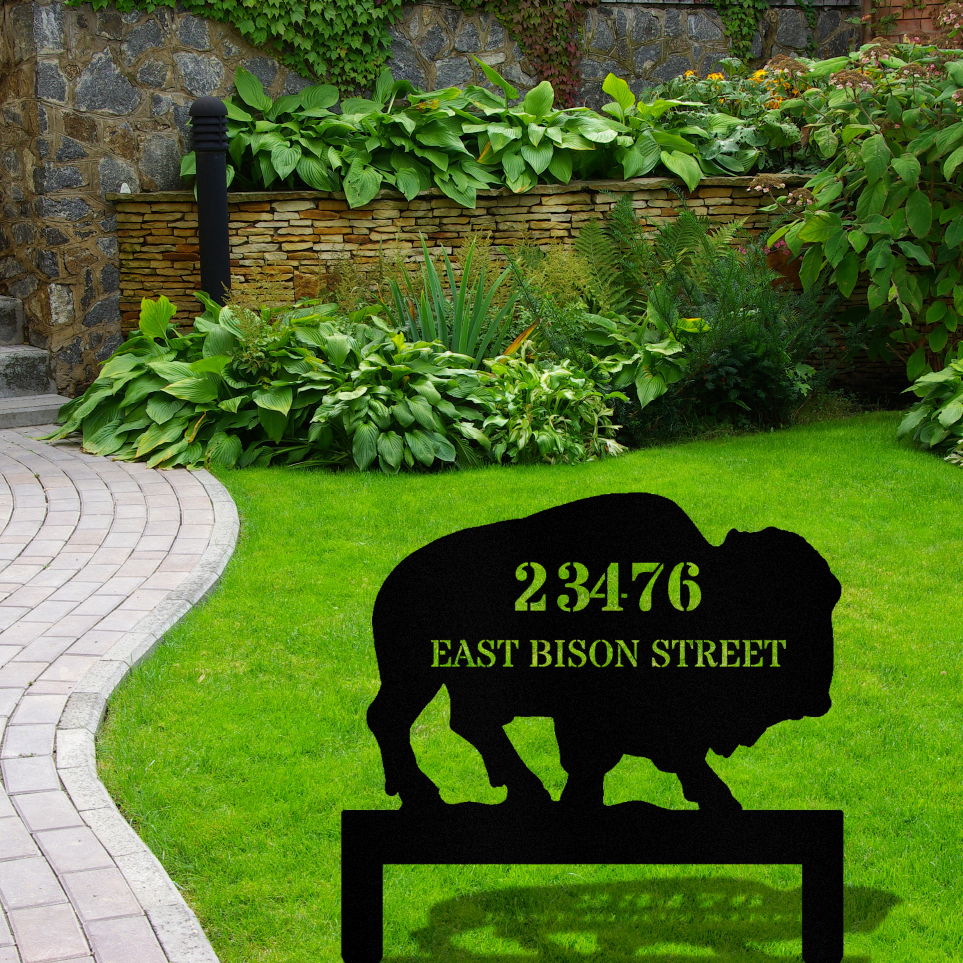 Bison Address Metal Stake, Address Plaque, Newhome Address Sign, Outdoor House Number, Wildlife Address Sign