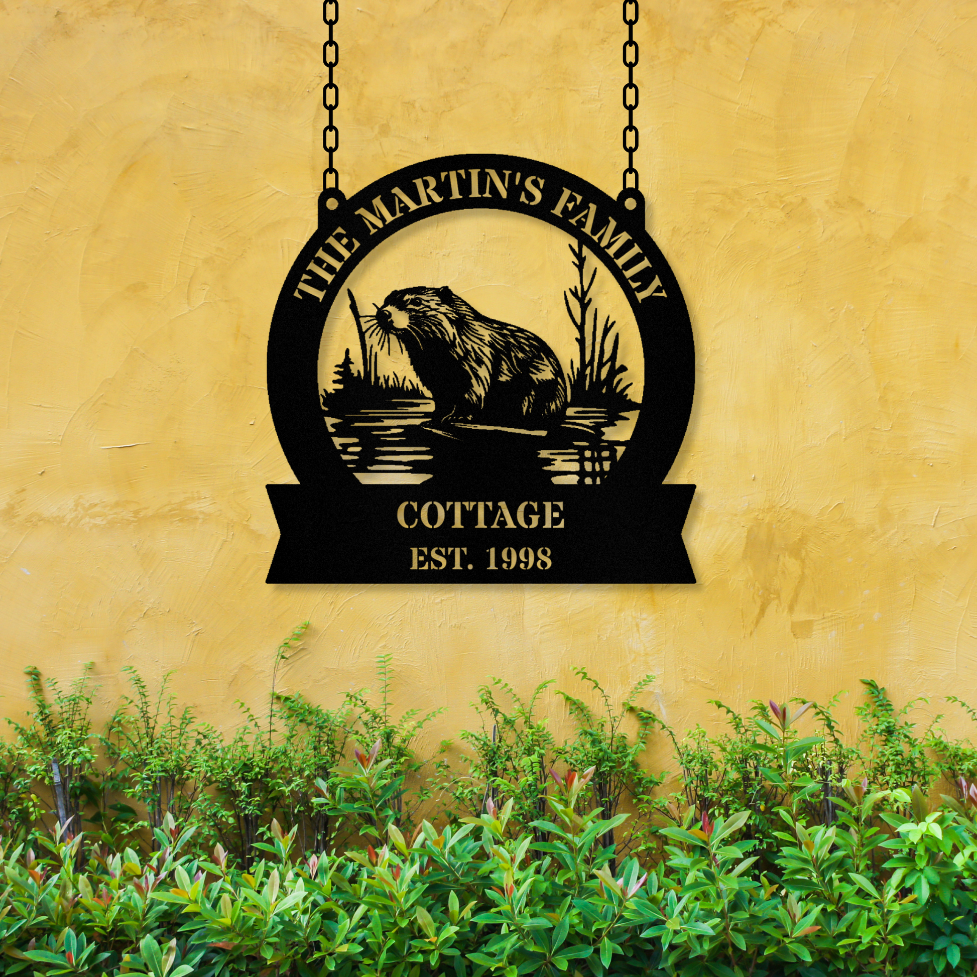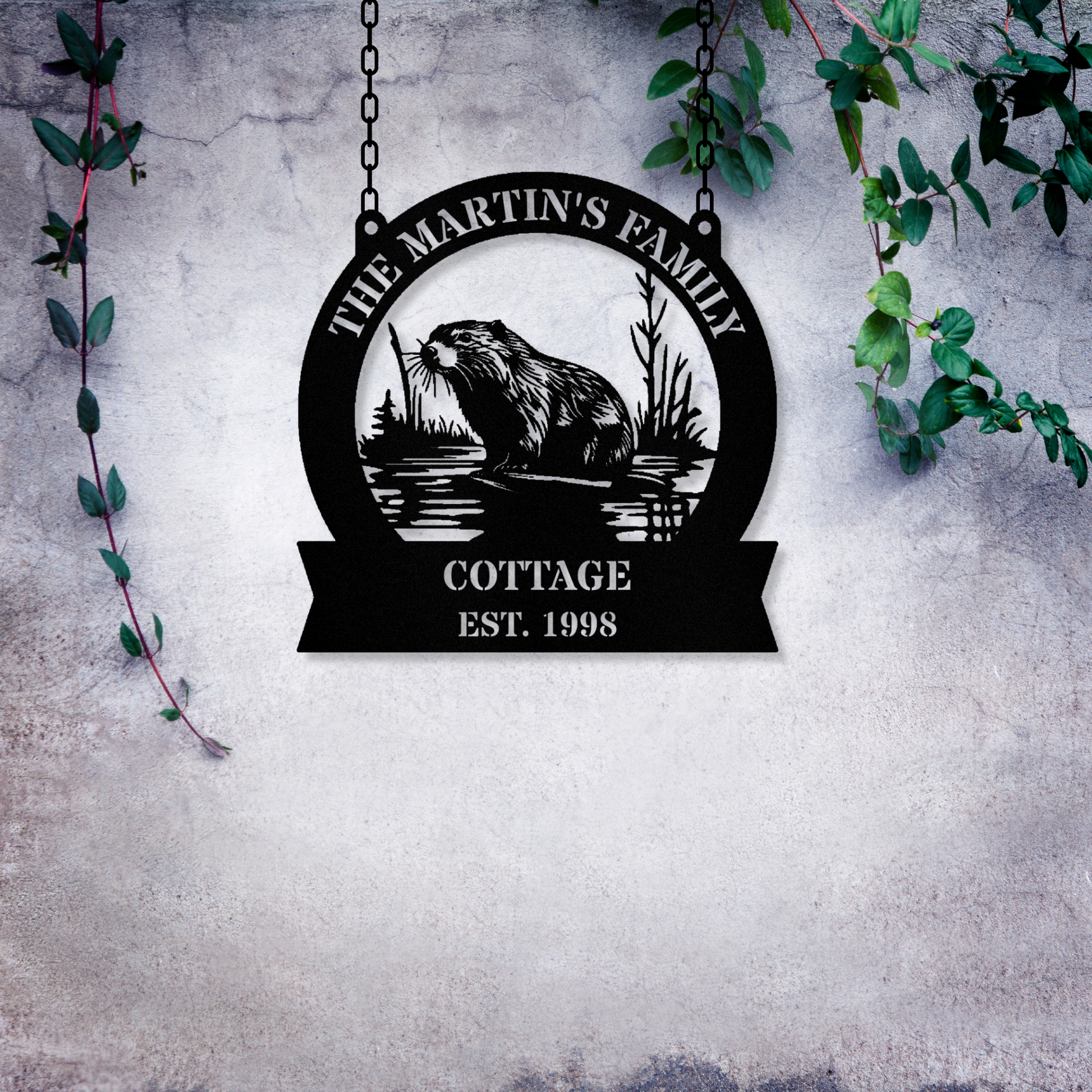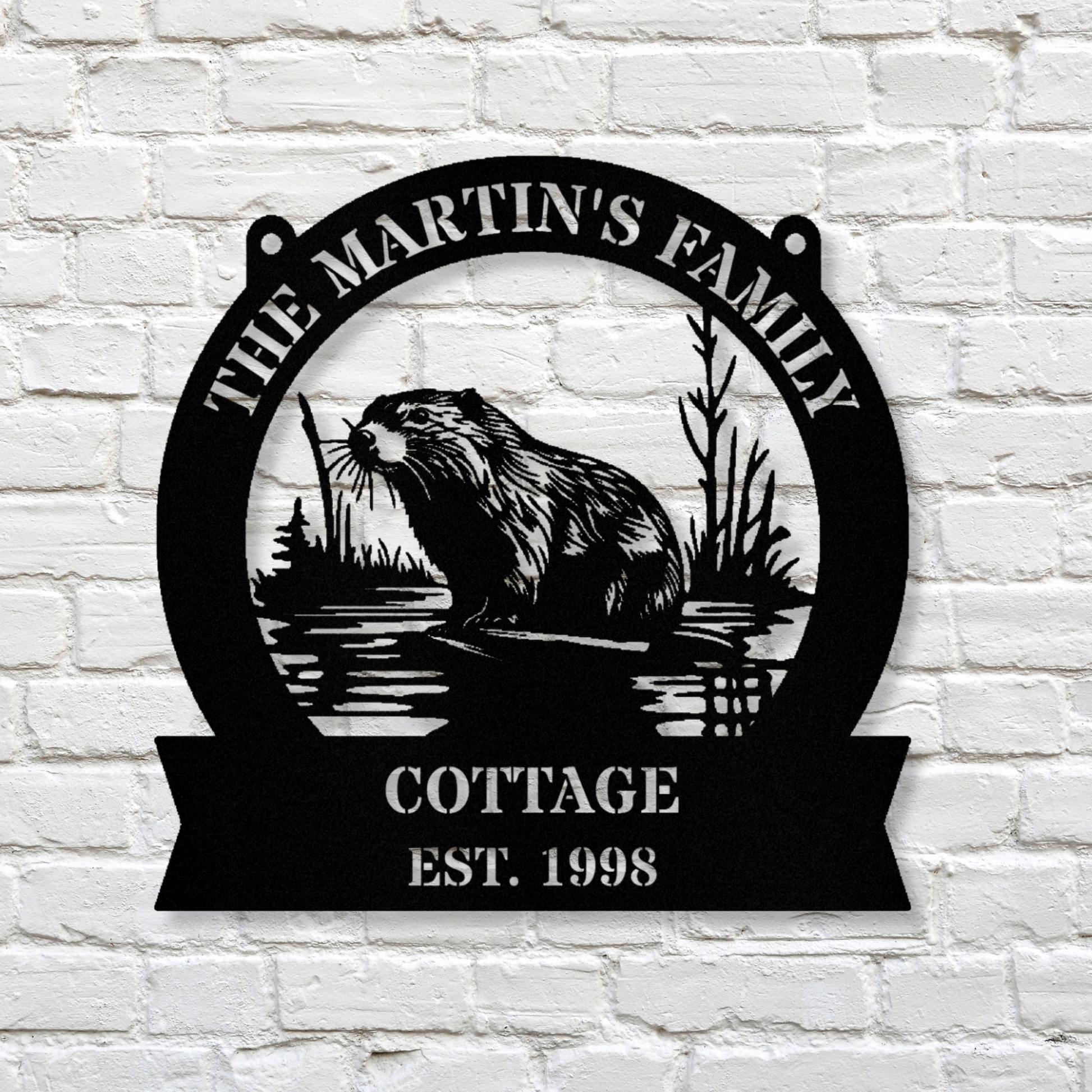 Beaver Metal Sign, Family Name Sign, Rustic Metal Decor, Customized Name Sign, Animal Wall Art, Wildlife Gift Decor