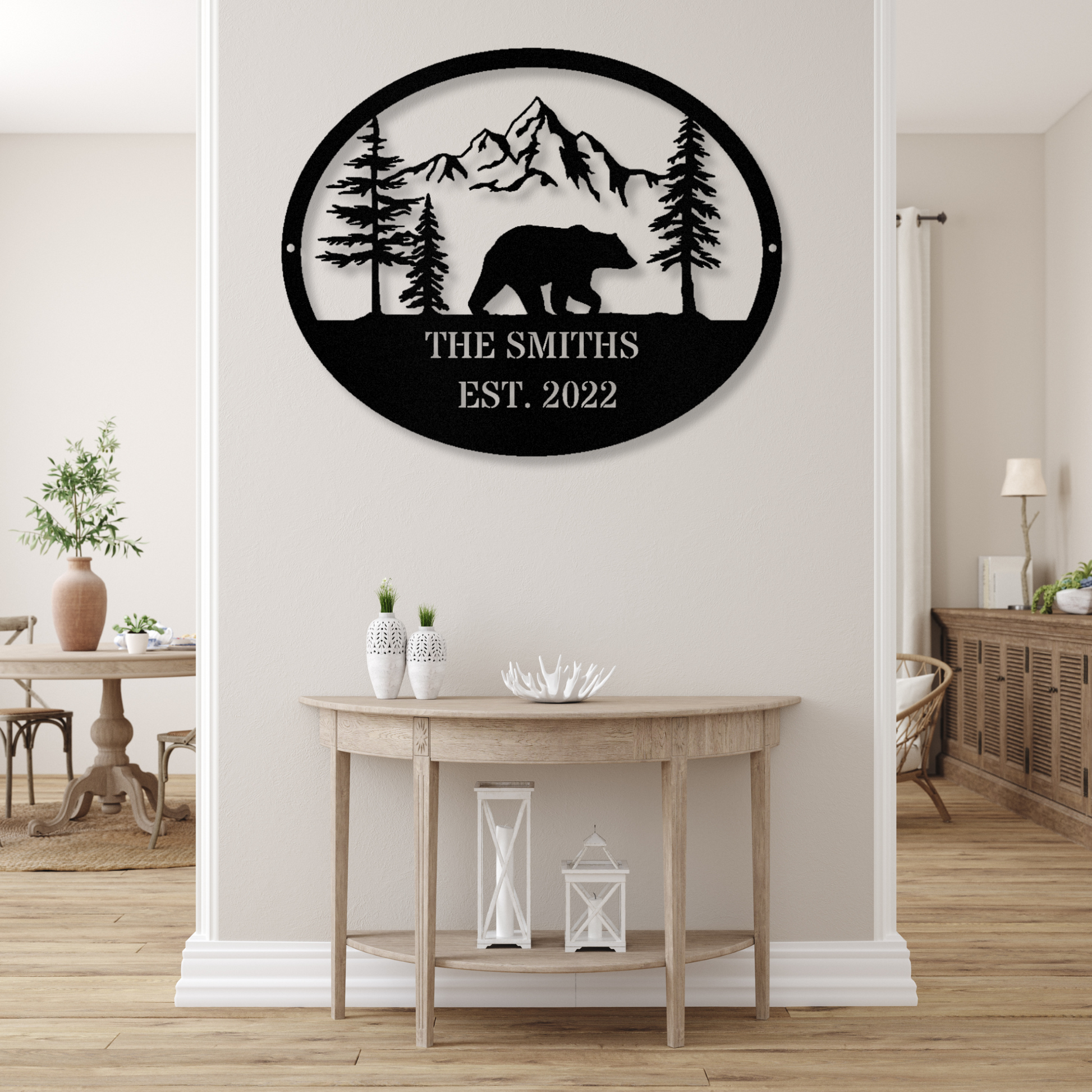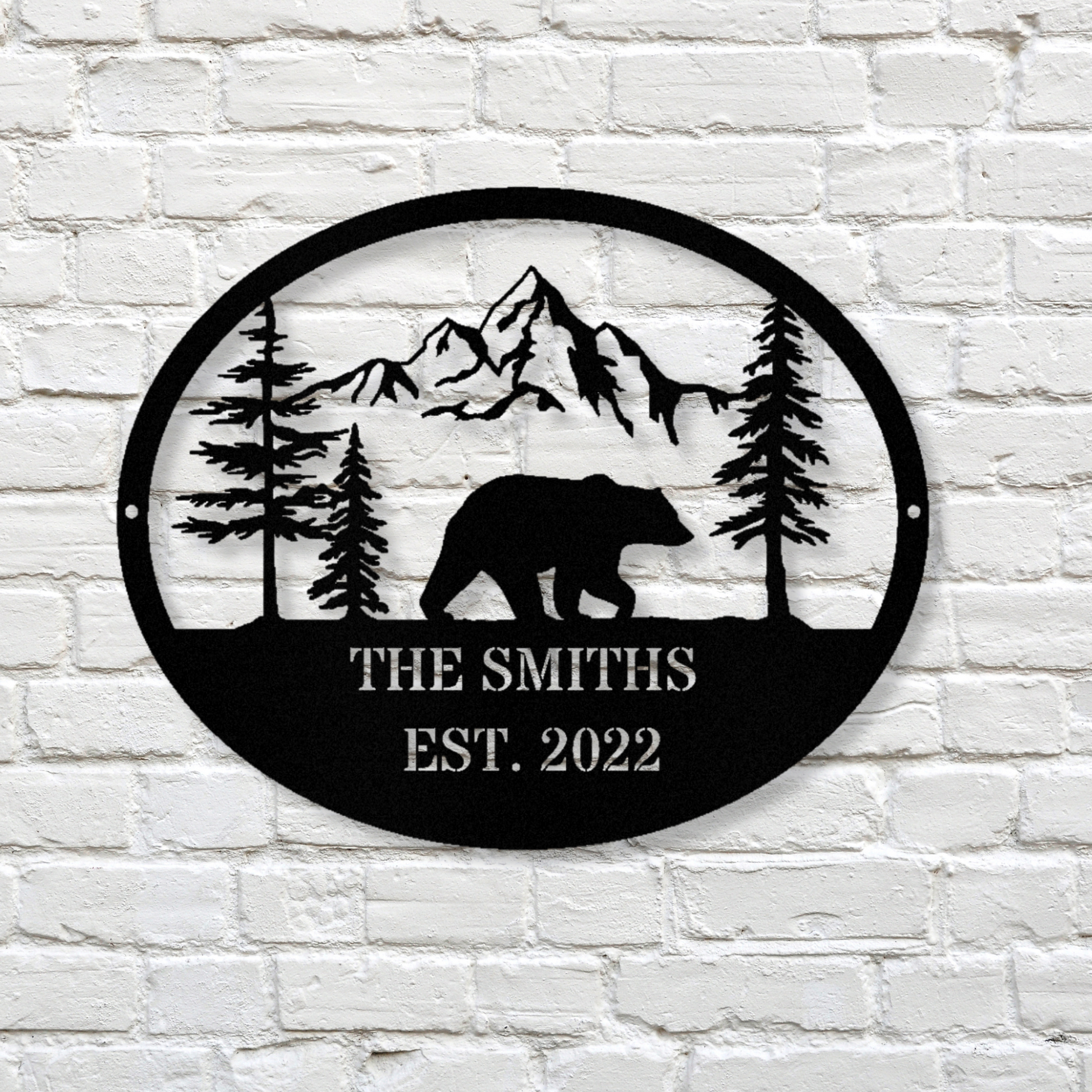 Bear Mountain Metal Sign, Address Sign, Cabin Metal Sign Decor, Farmhouse Sign, Bear Mama Decor