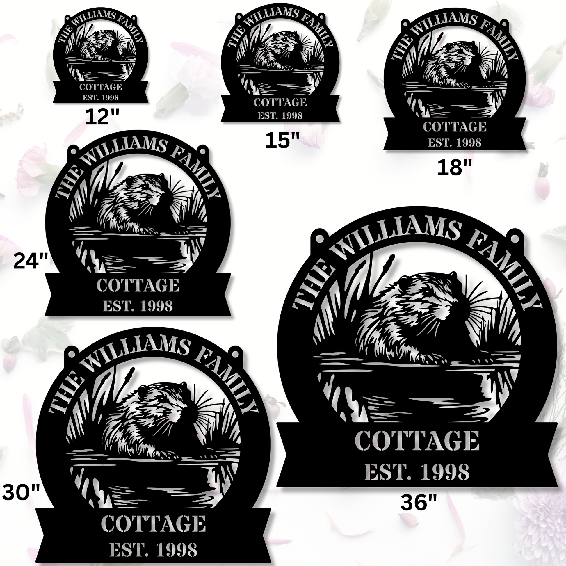 Available in an array of sophisticated colors including Black, Gold, Silver, Copper, and White, these pieces are designed to complement any decor style, adding a touch of elegance and personalization to your space. Choose from six versatile sizes: 12", 15", 18", 24", 30", and 36", allowing for perfect scaling to fit any room or outdoor area.