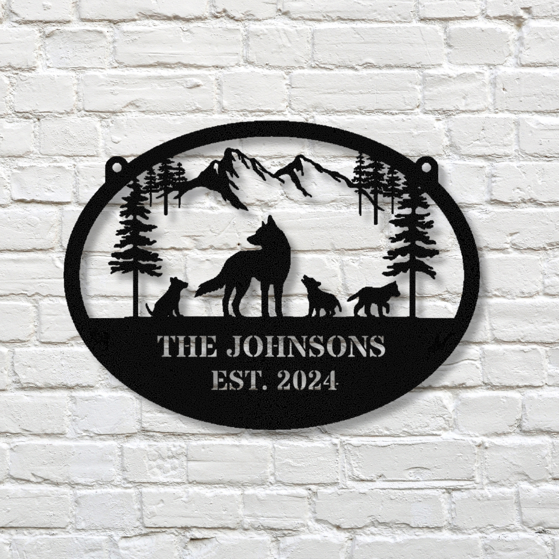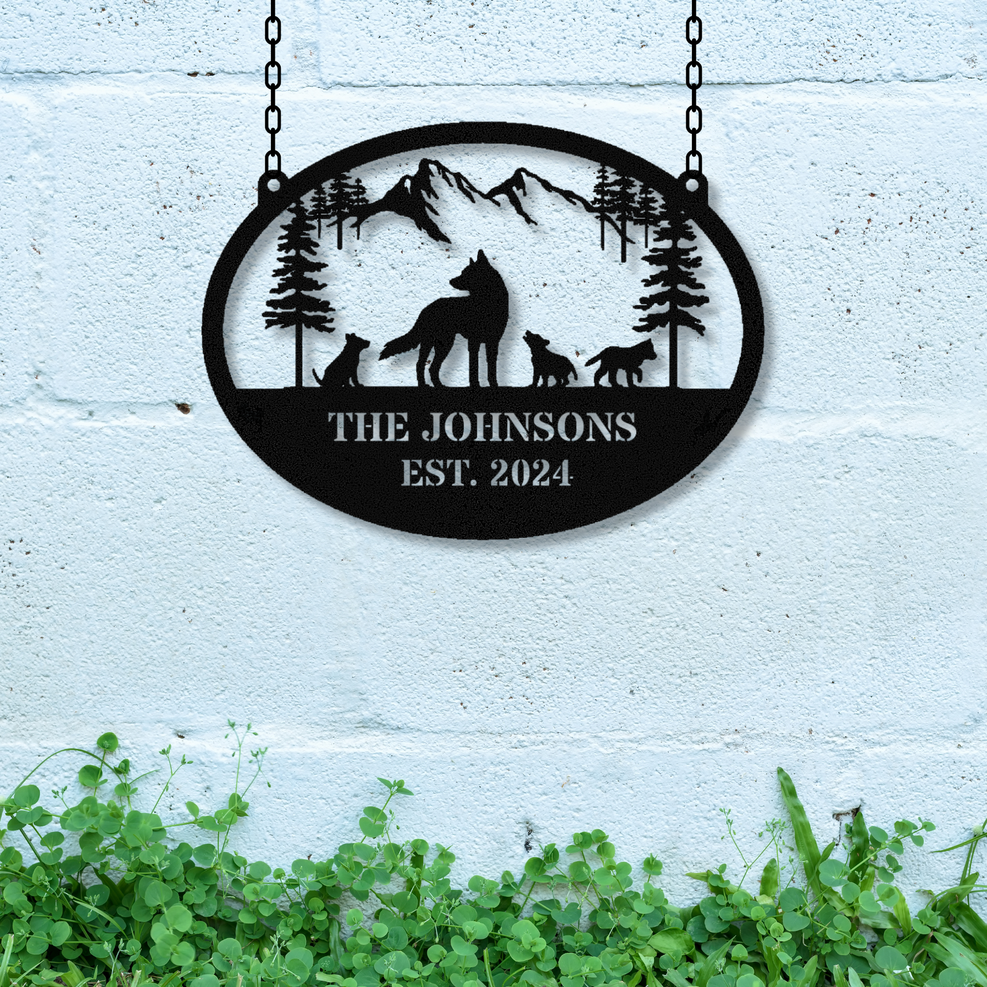 Personalized Wolf Mountain Metal Hanging Sign, Ranch Metal Sign, Barn metal sign, Metal barn sign, Farmhouse sign, House Number Sign